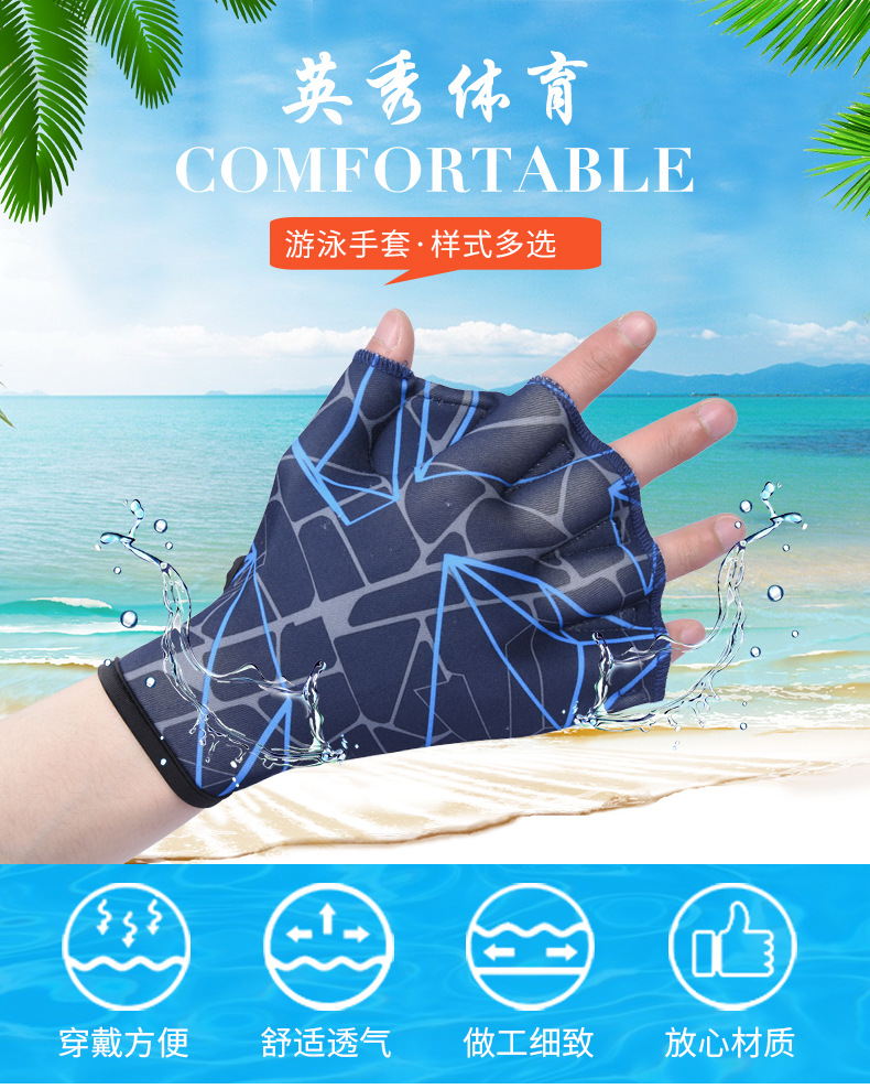 划手掌户外水上用品男女夏季半截鸭掌潜水训练游泳手蹼游泳手套