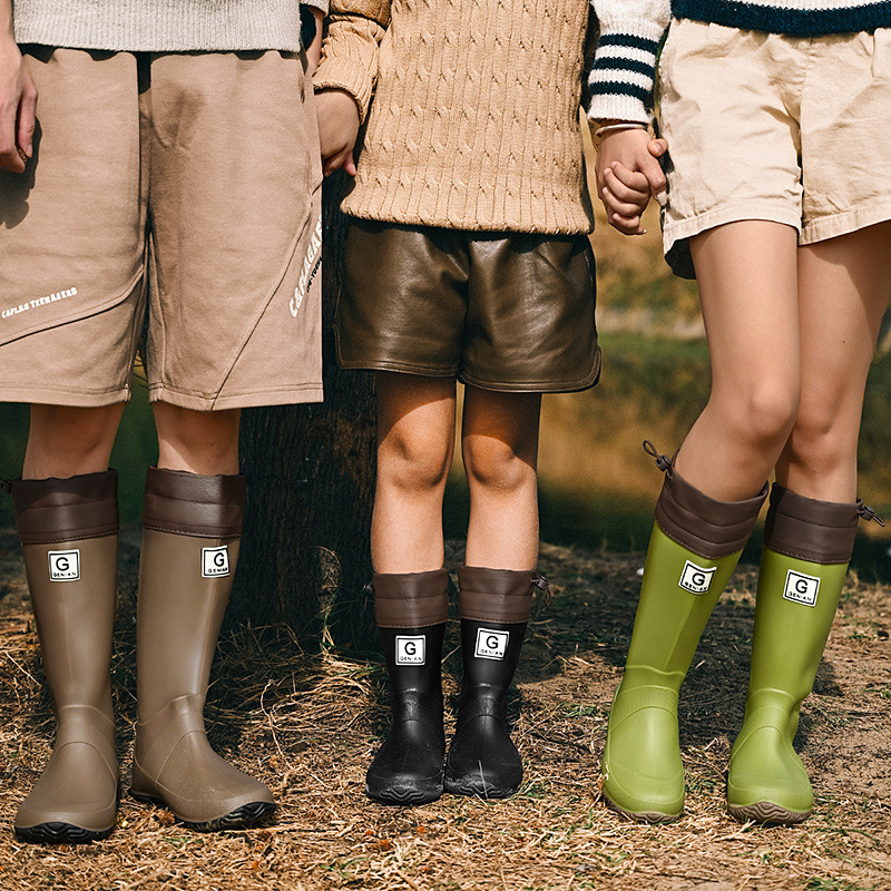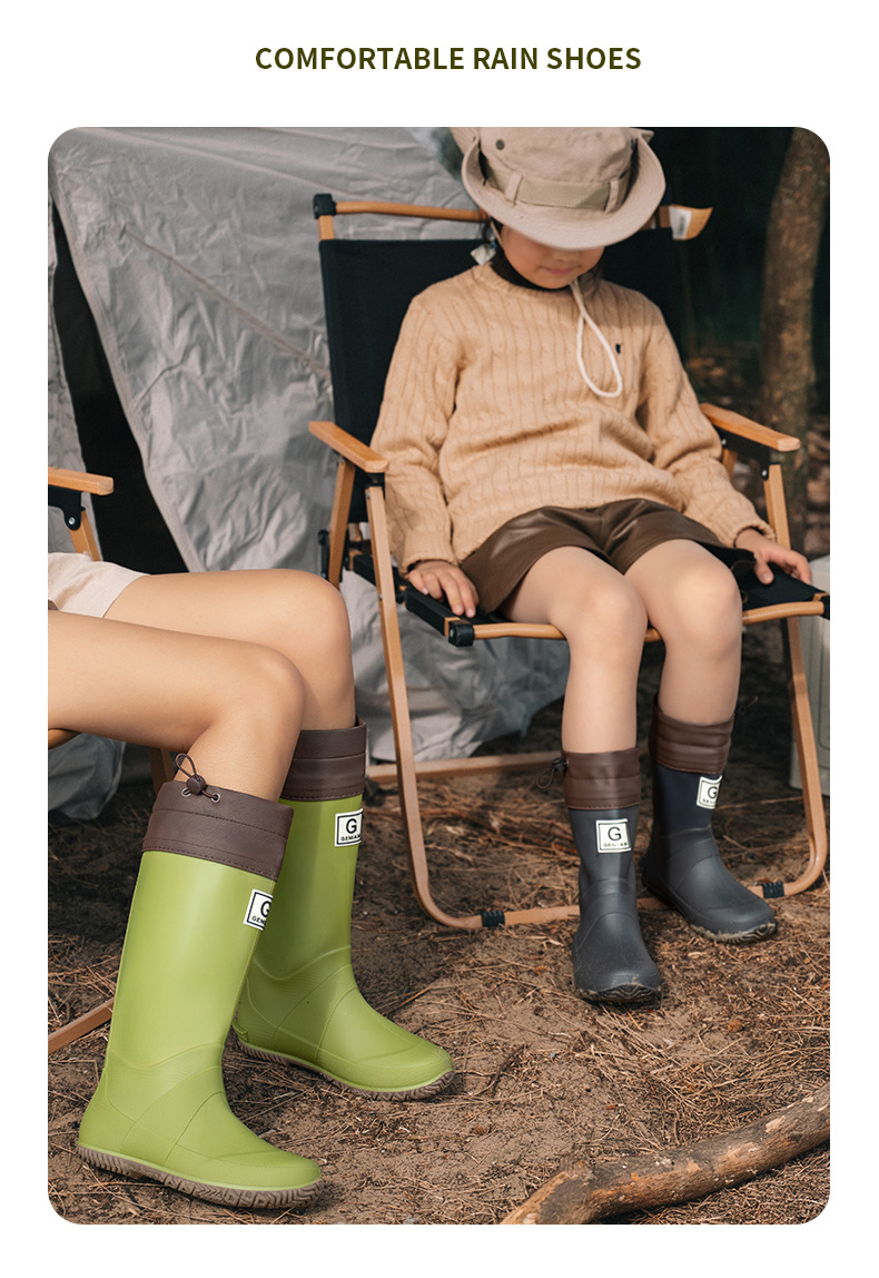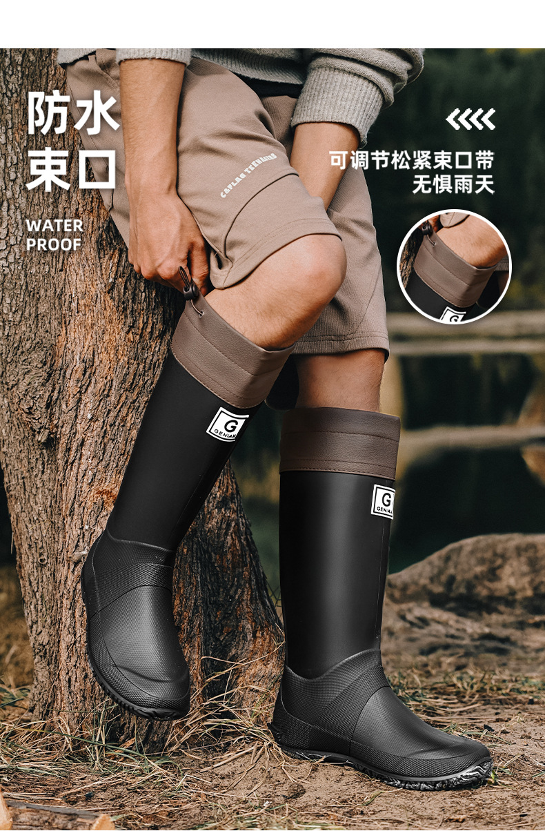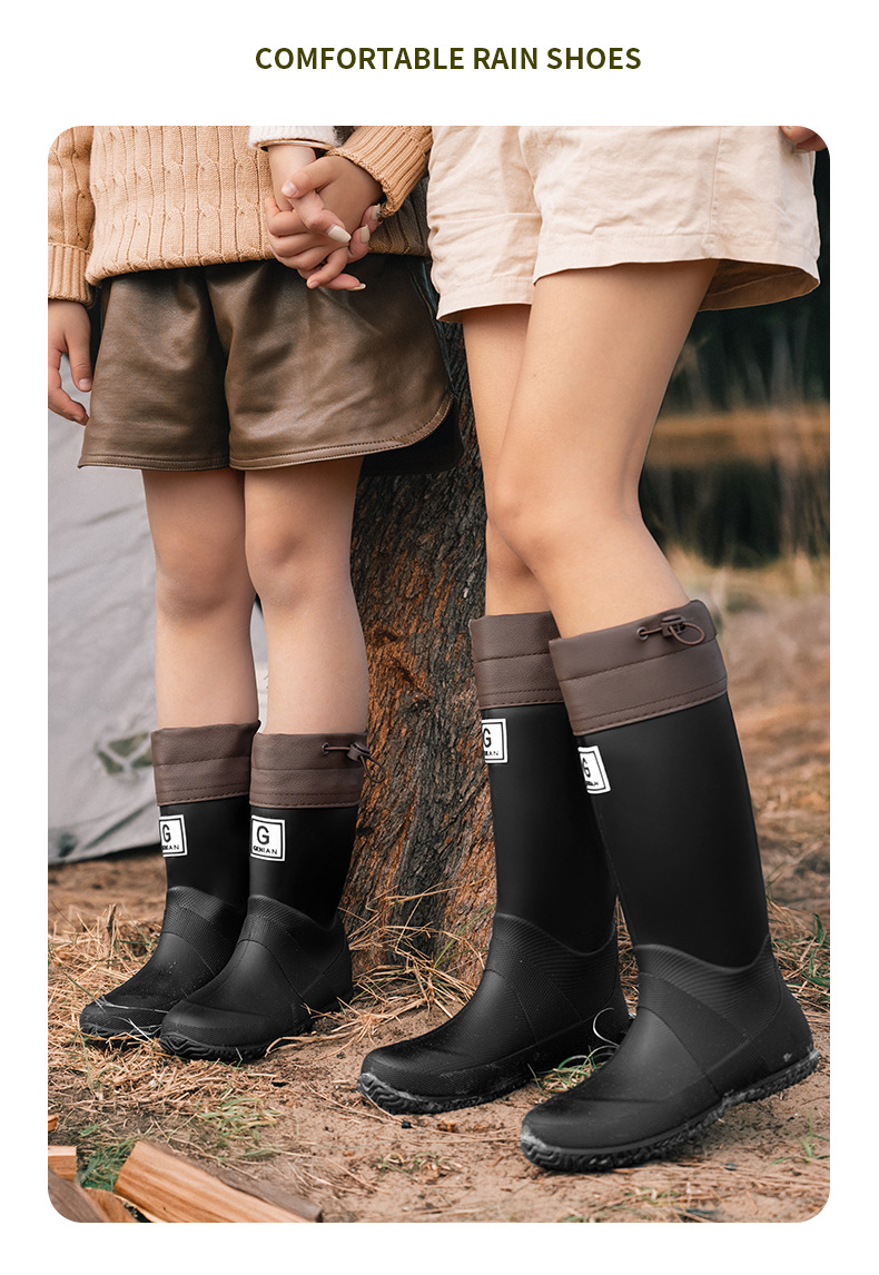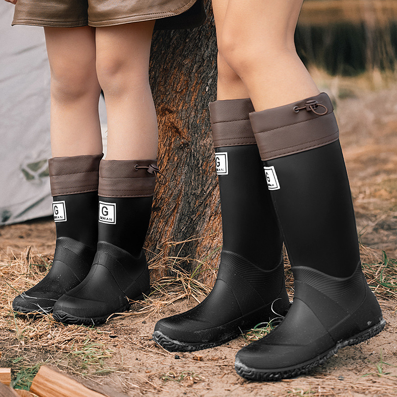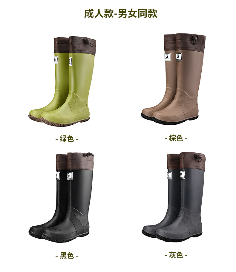 品质可折叠束口雨鞋男女时尚高筒户外露营登山雨靴防滑防水胶鞋