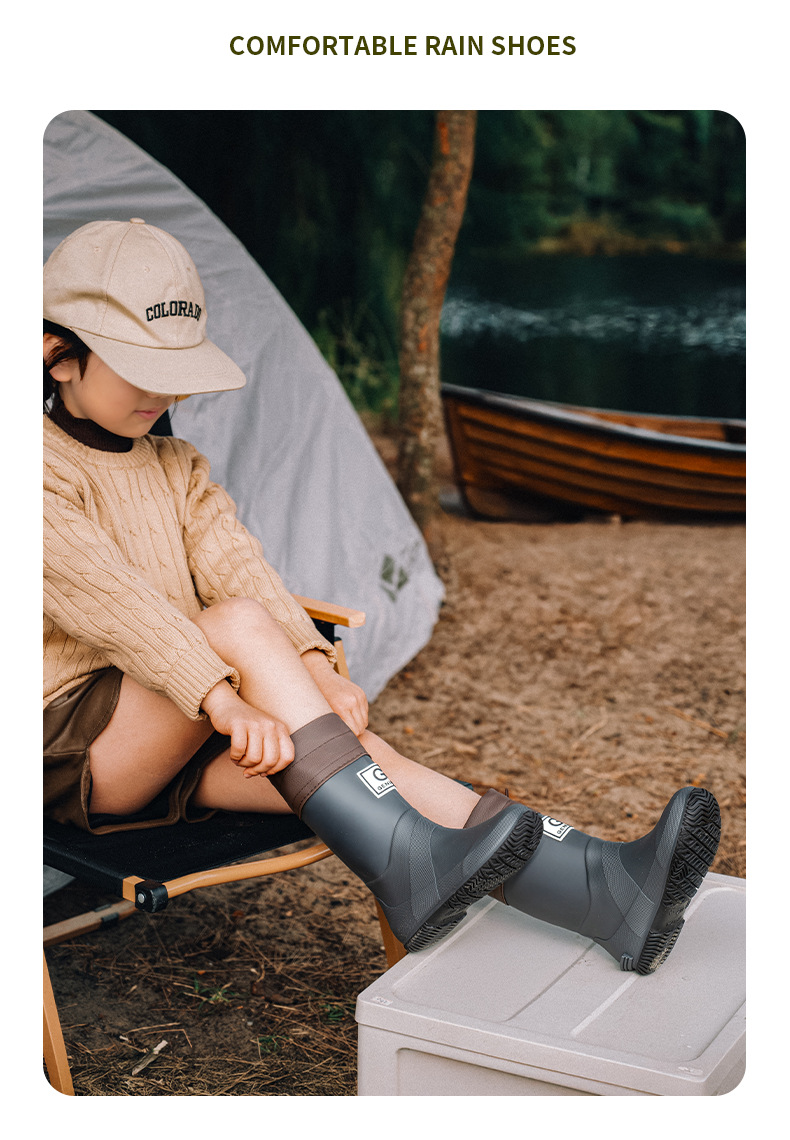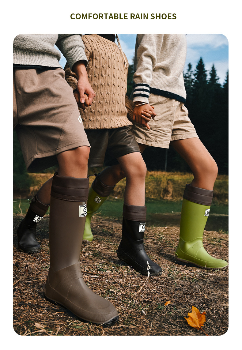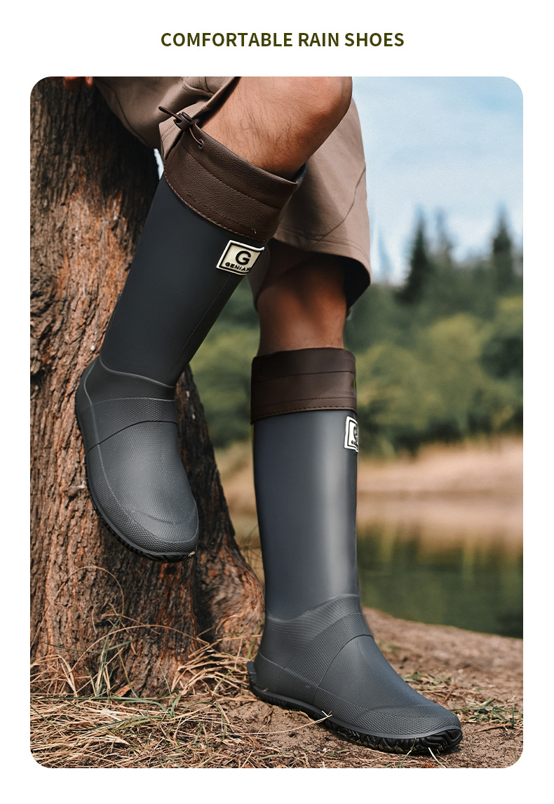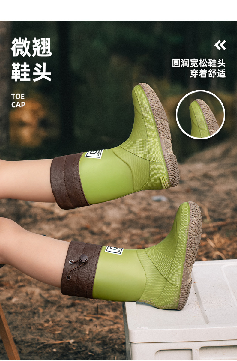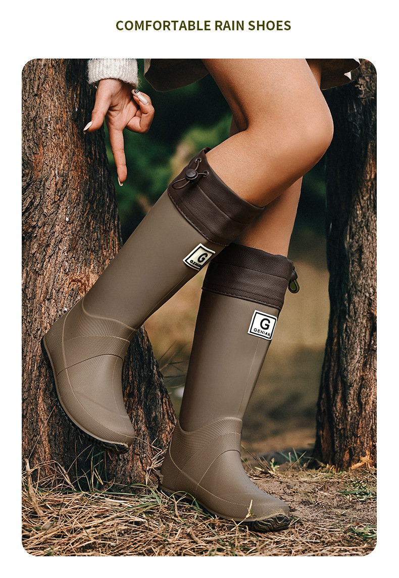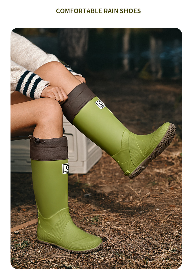 品质可折叠束口雨鞋男女时尚高筒户外露营登山雨靴防滑防水胶鞋