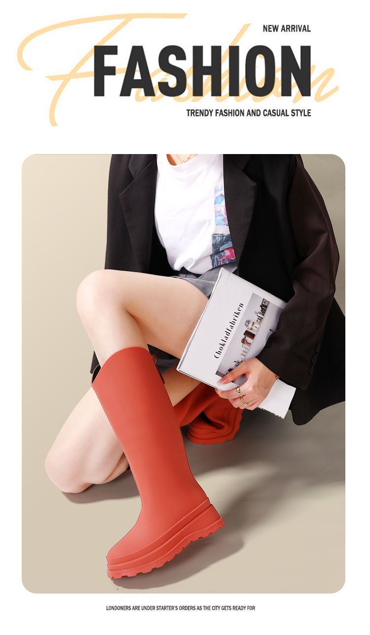 时尚高筒雨靴女款2023新款长筒赶海胶鞋防滑防水加棉雨鞋成人水鞋