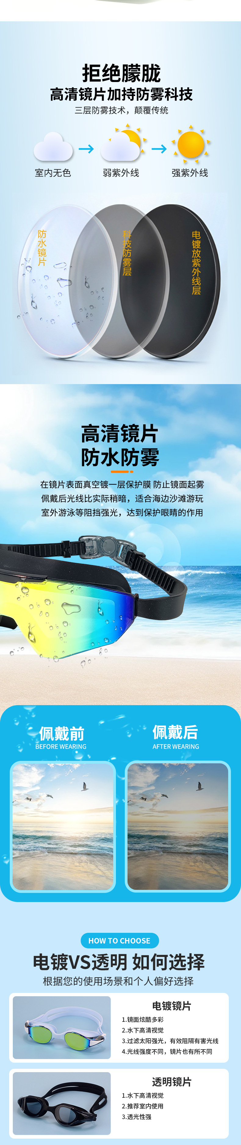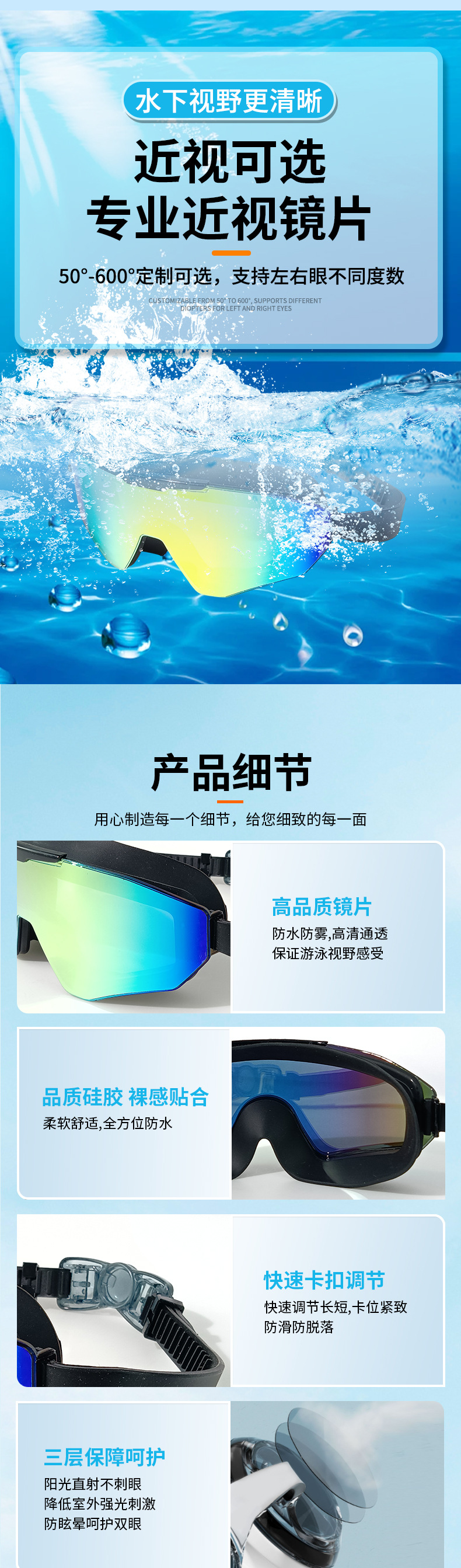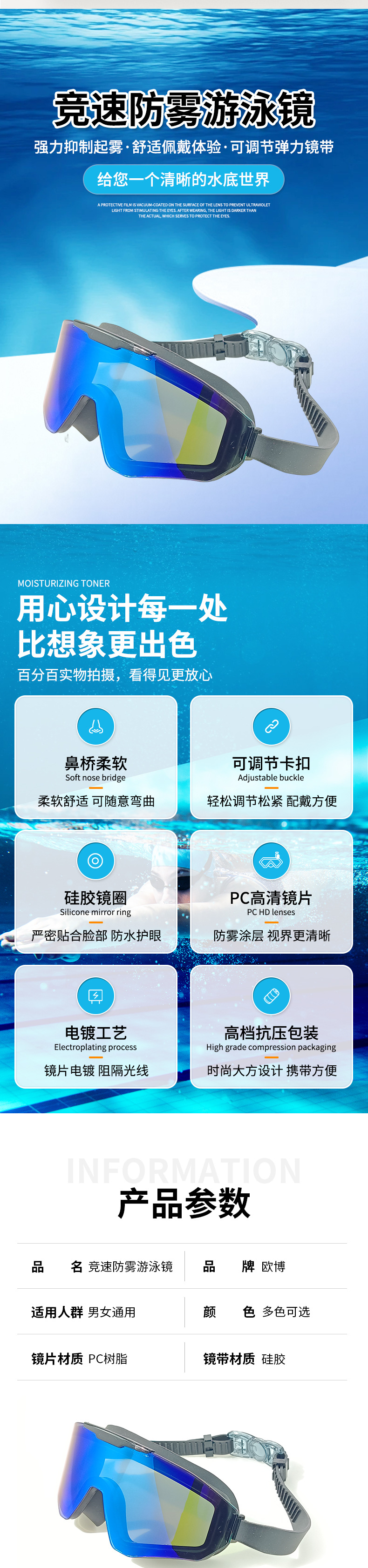 大框游泳镜超大视野高清防雾防水泳镜成人游泳电镀竞速专业装备新