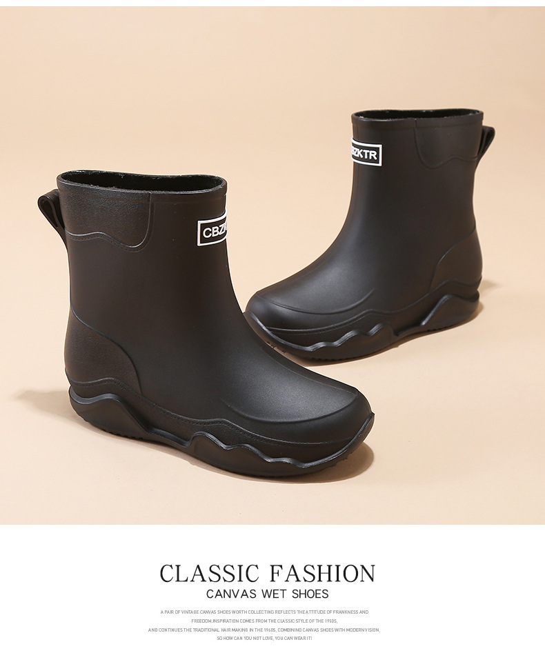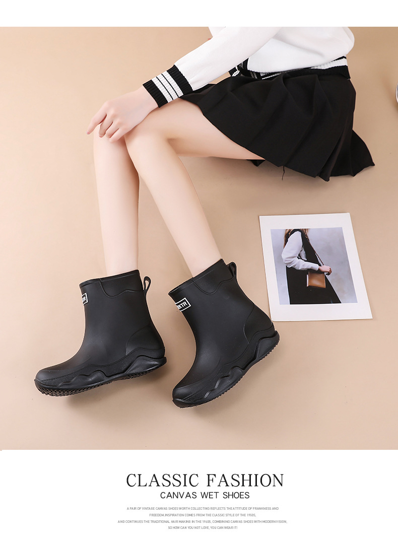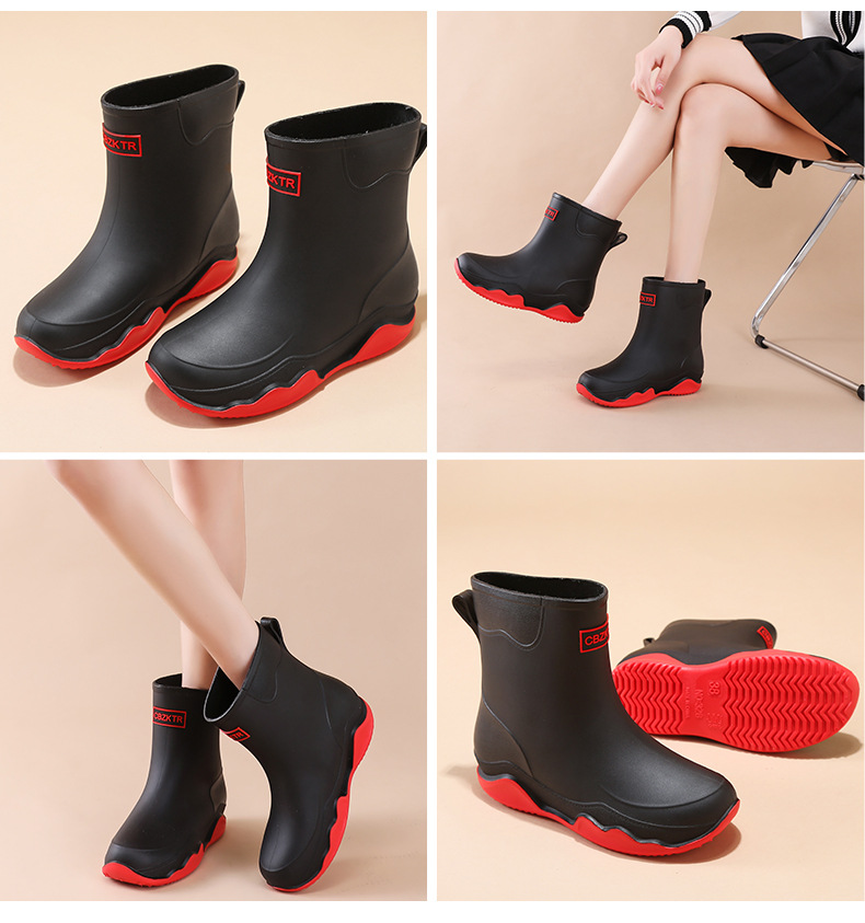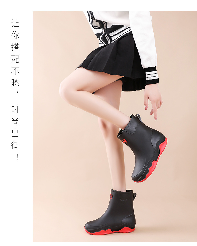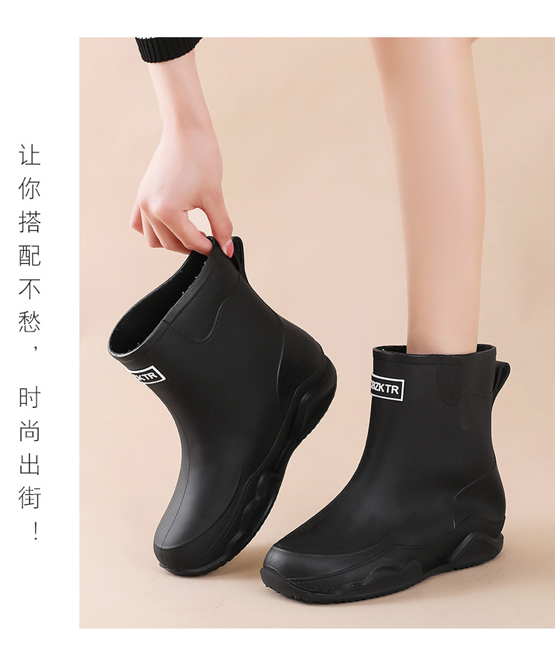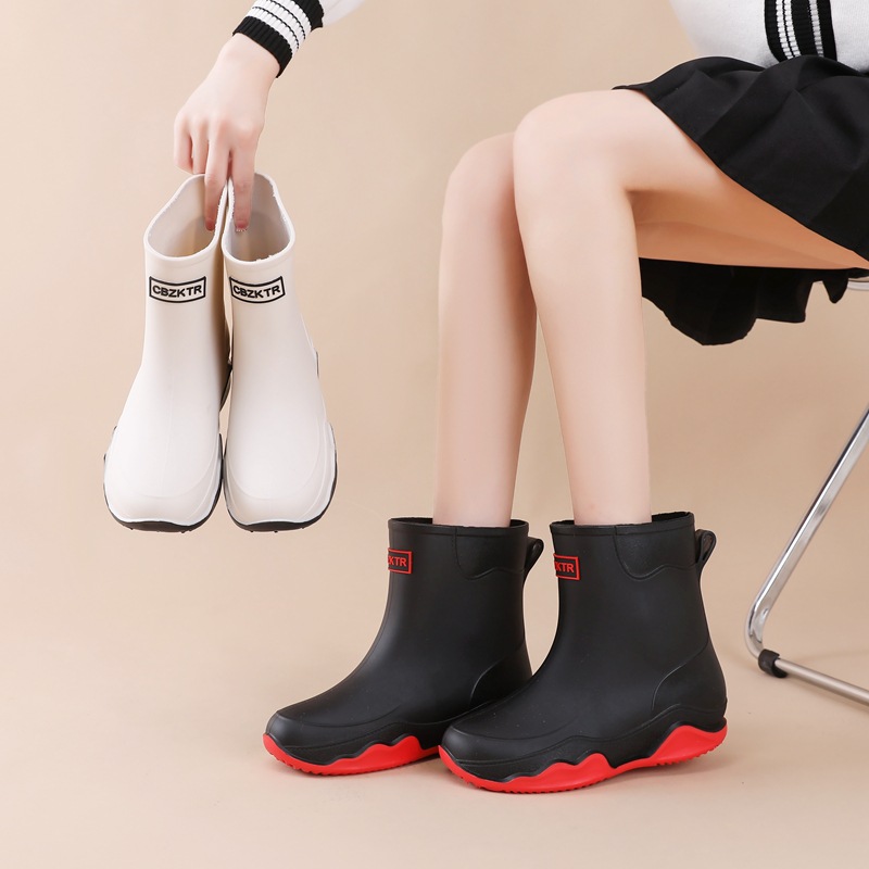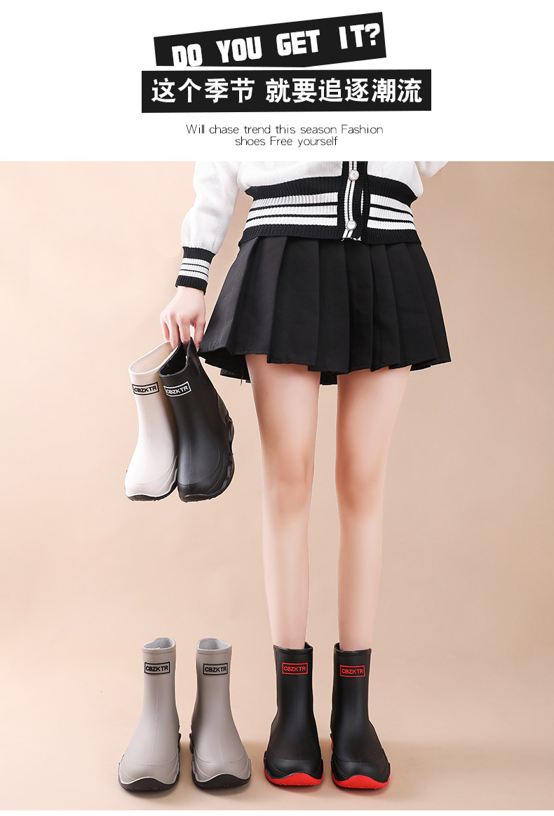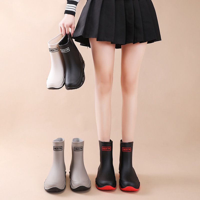 日系中筒雨鞋男女士胶鞋外穿防滑水靴厚底水鞋加绒短筒雨天雨靴女