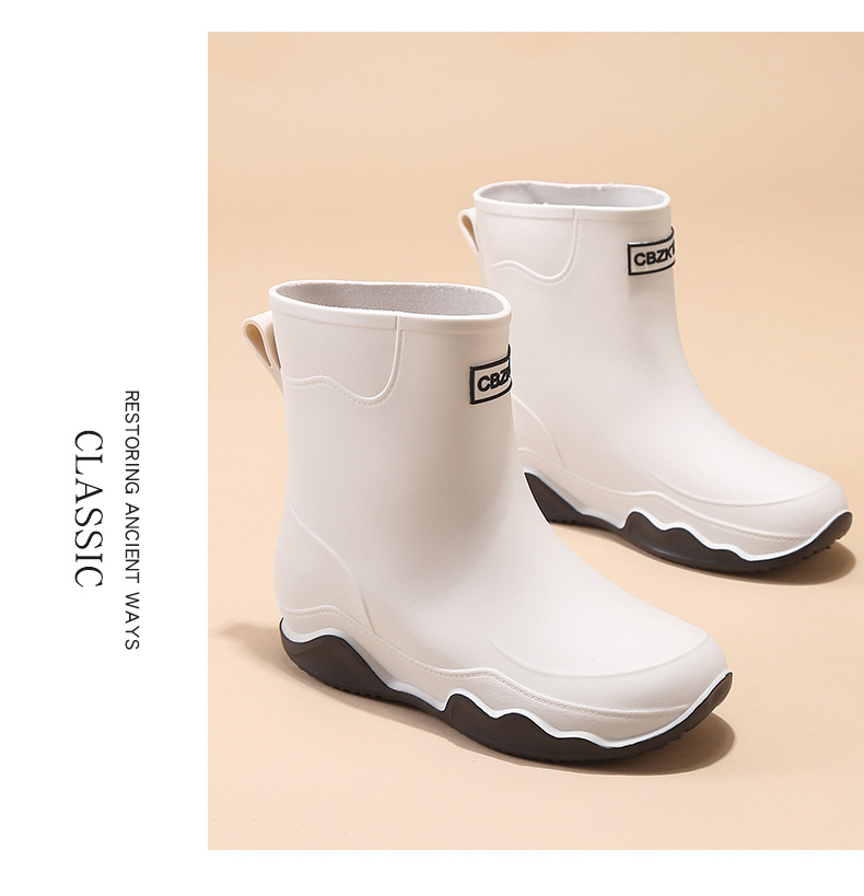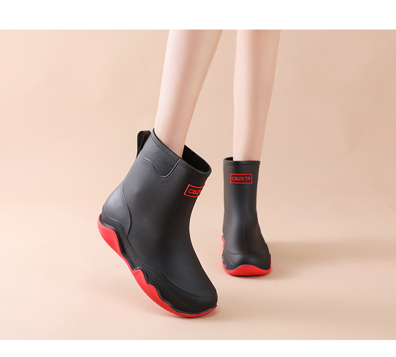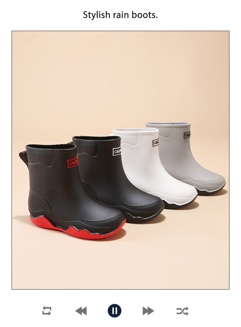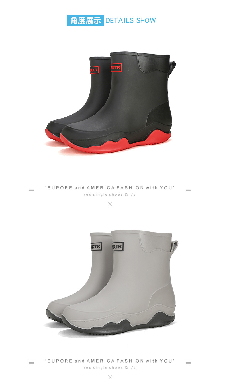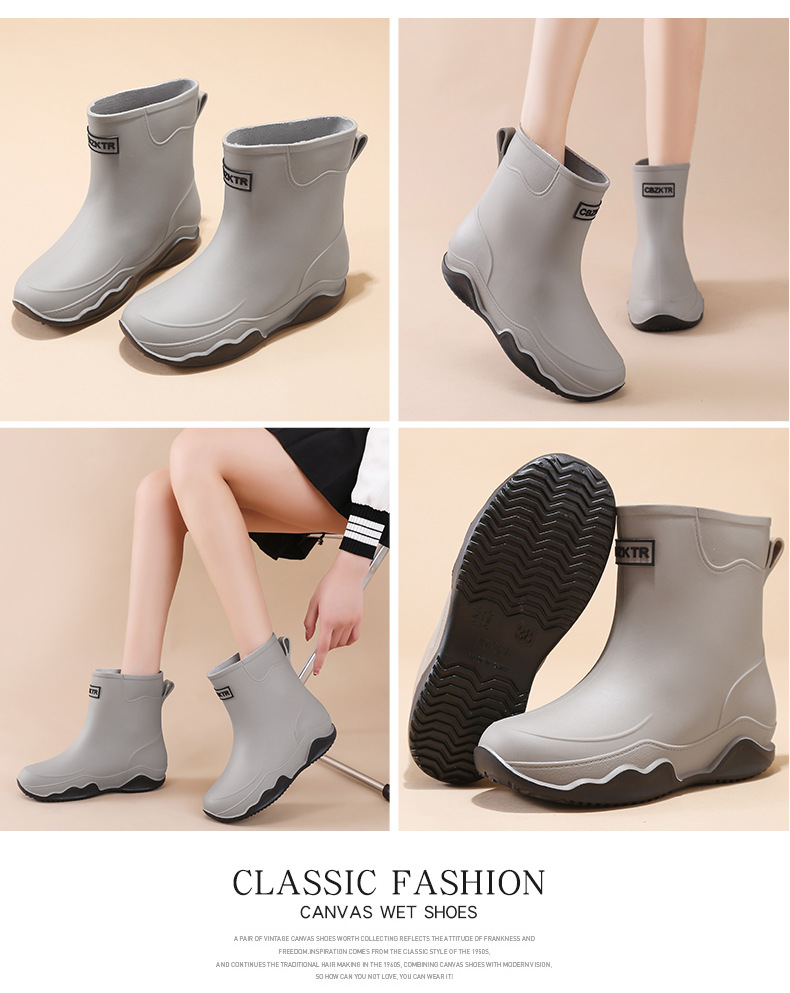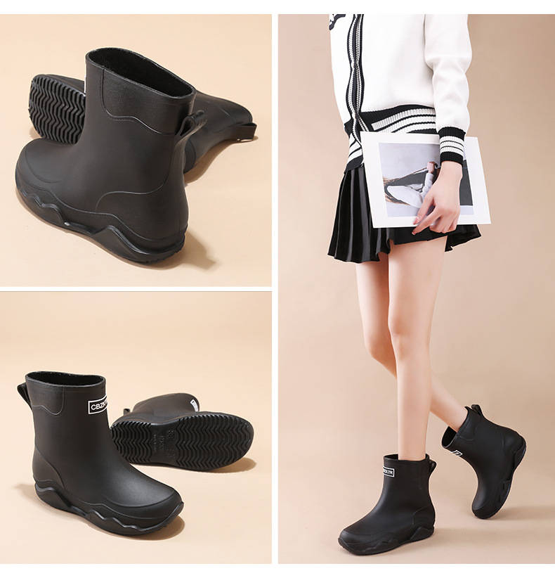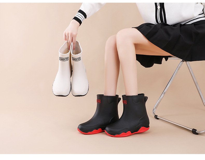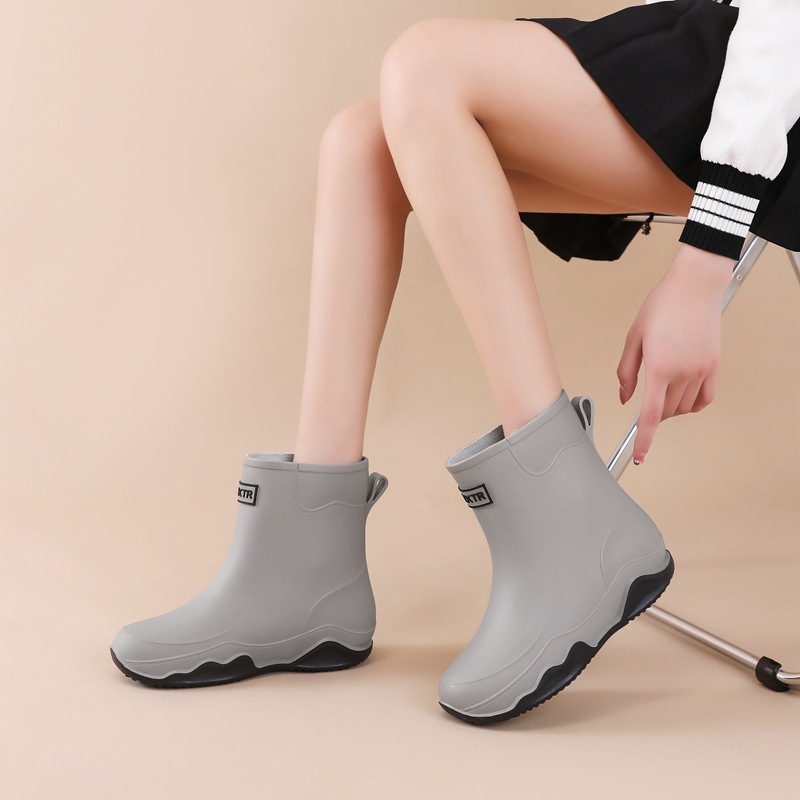 日系中筒雨鞋男女士胶鞋外穿防滑水靴厚底水鞋加绒短筒雨天雨靴女