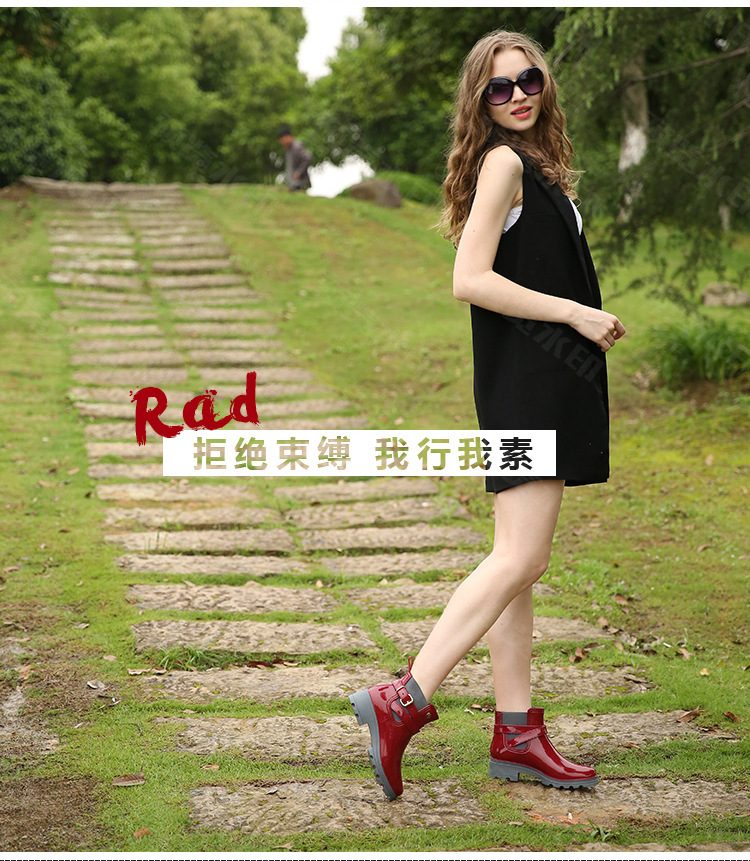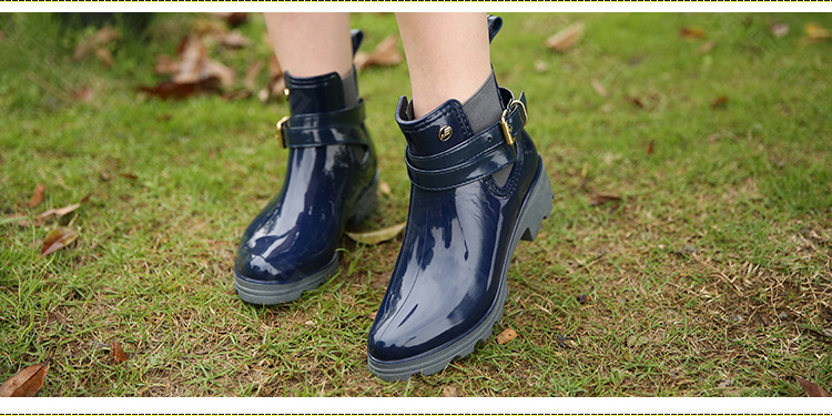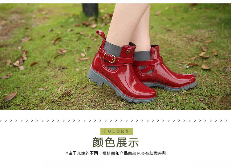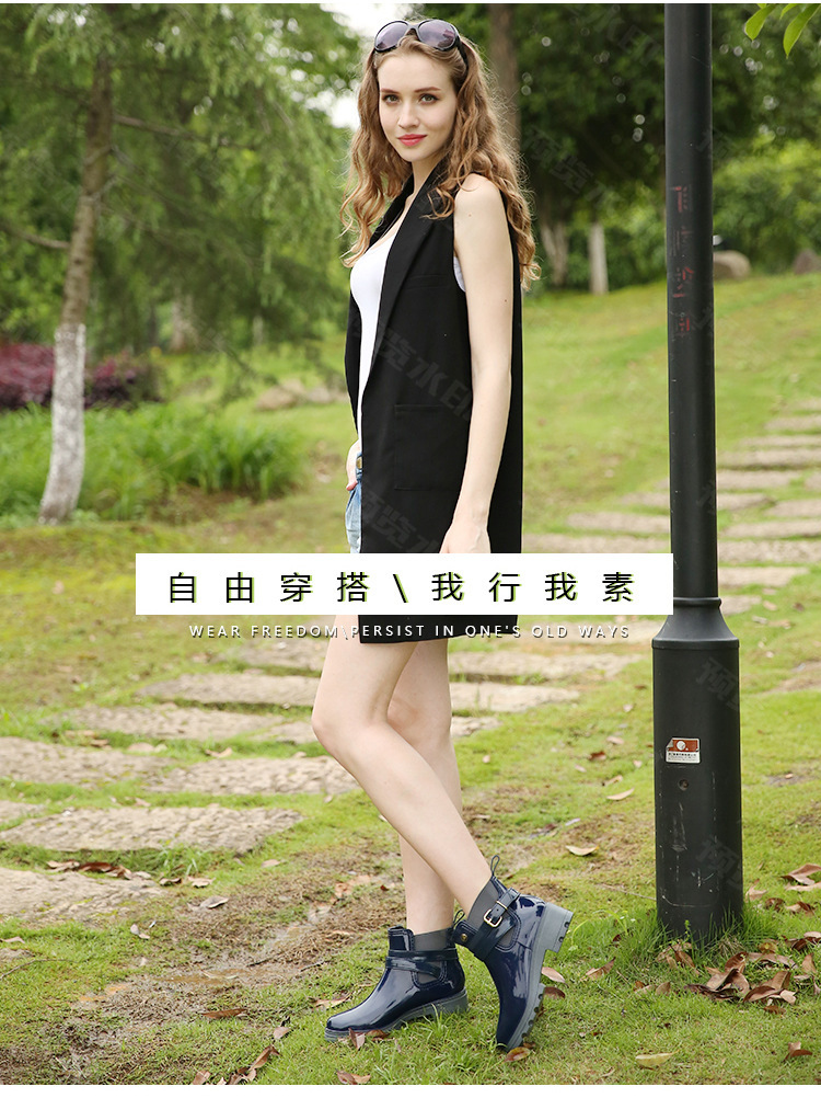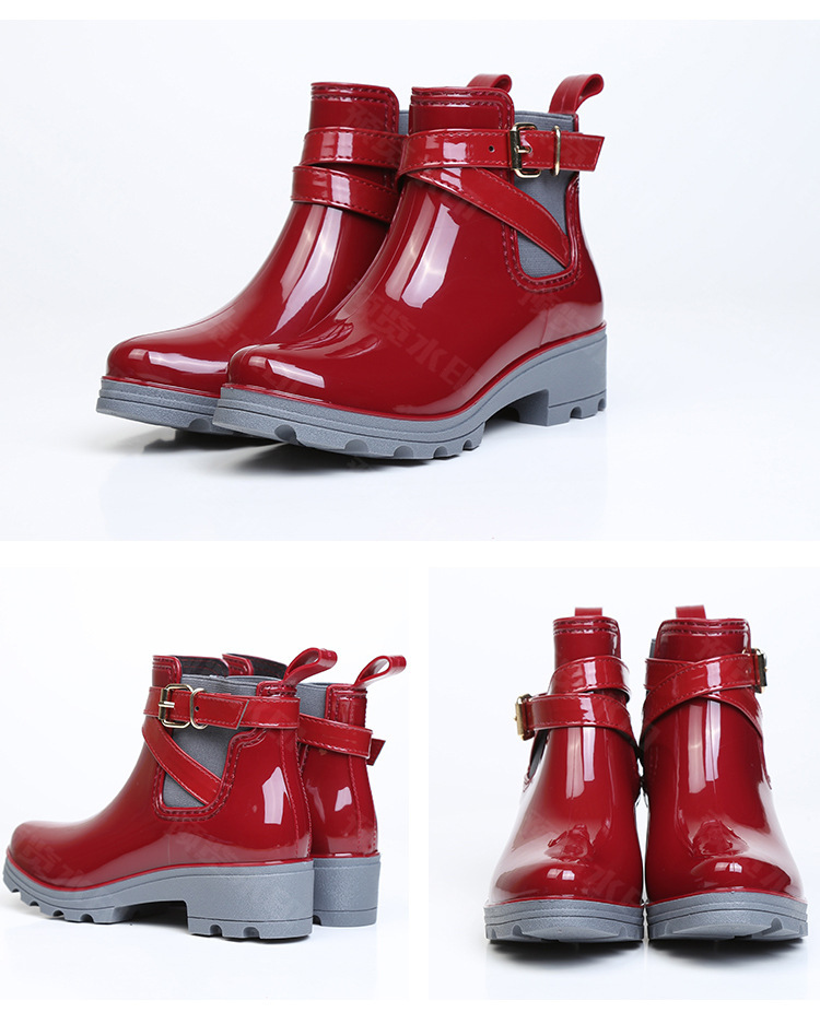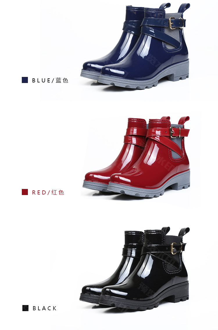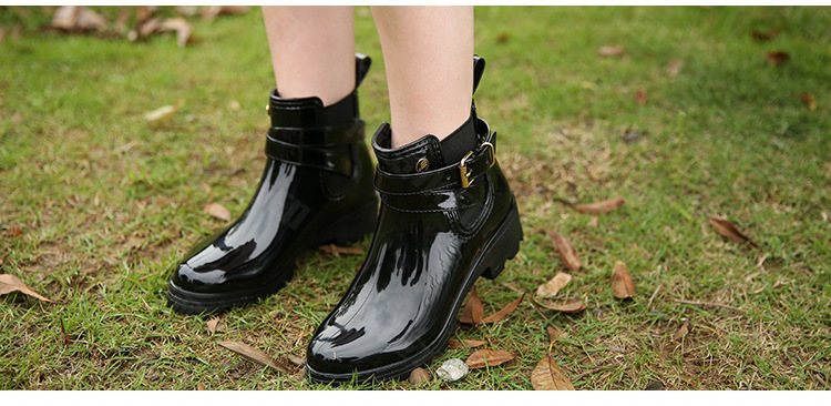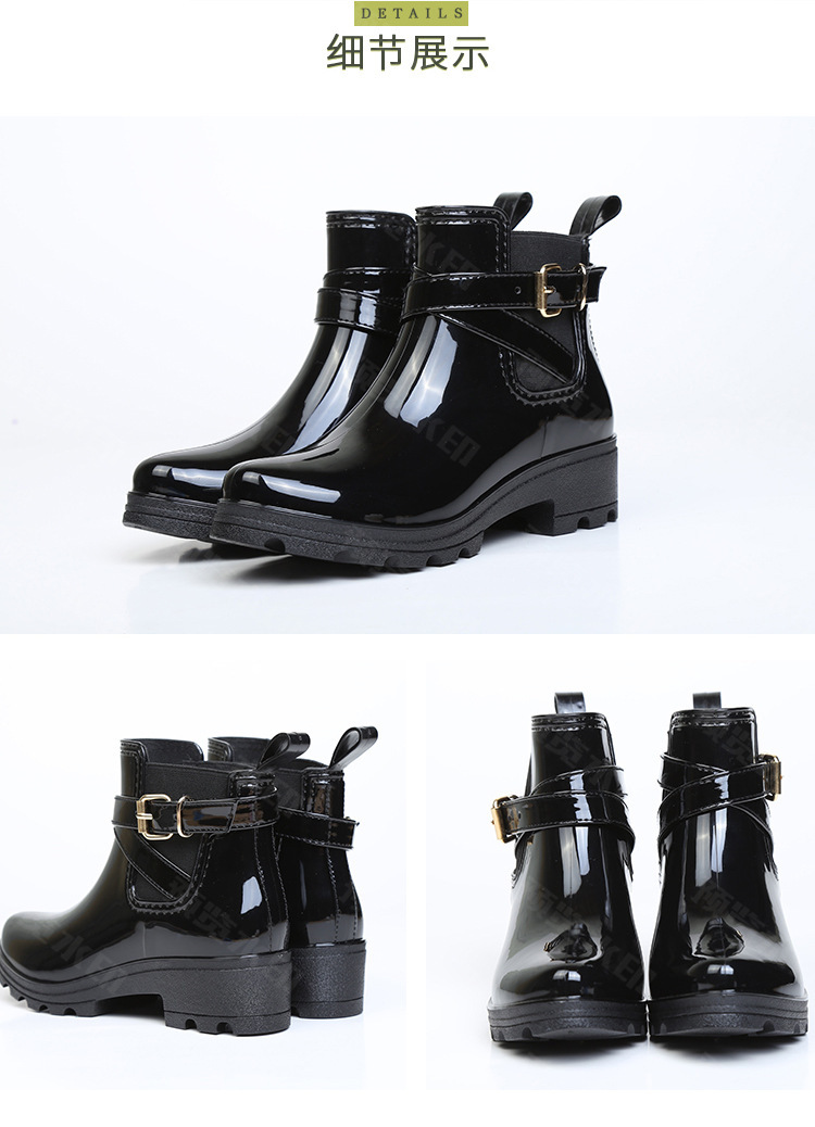 春东雨鞋厂家批发短筒亮面女靴女士PVC松紧胶鞋U型水鞋新配饰雨靴