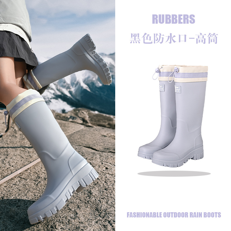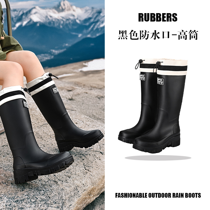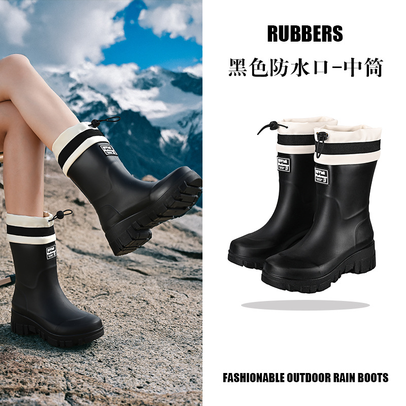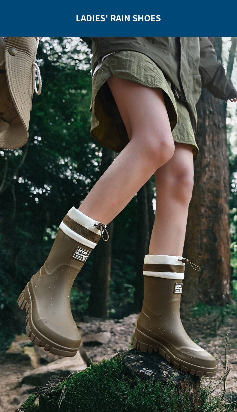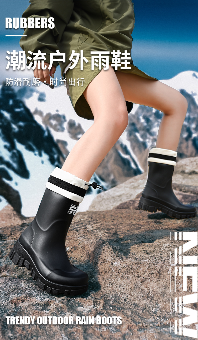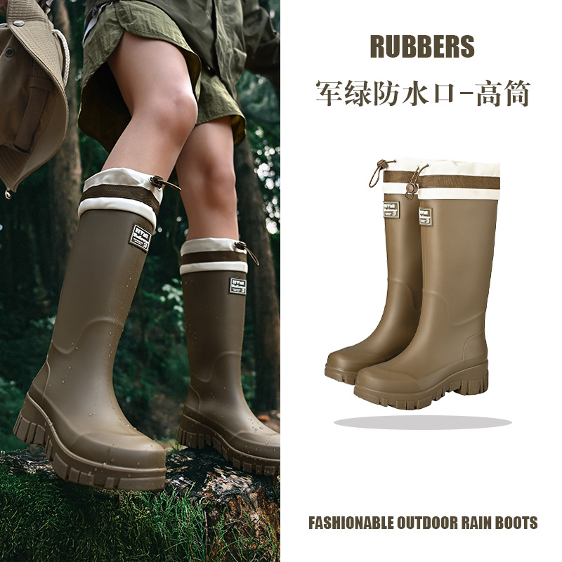 山系女雨靴防水束口拉绳女靴户外露营溪边水靴通勤时尚胶鞋涉水靴