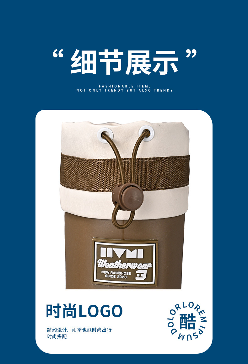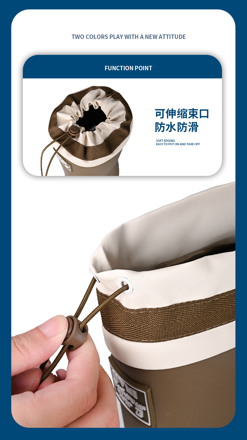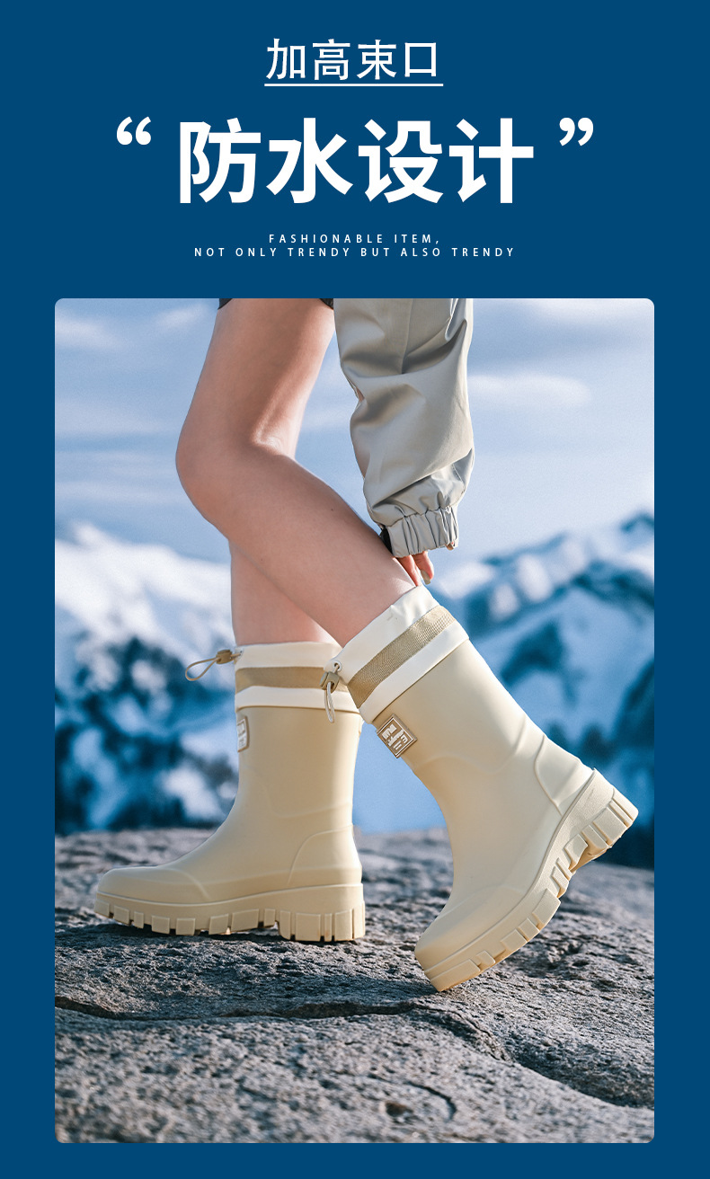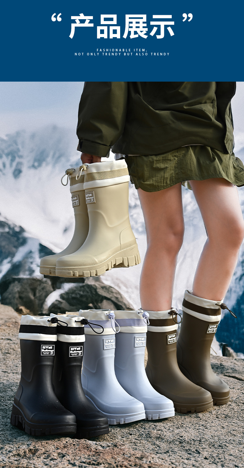 山系女雨靴防水束口拉绳女靴户外露营溪边水靴通勤时尚胶鞋涉水靴