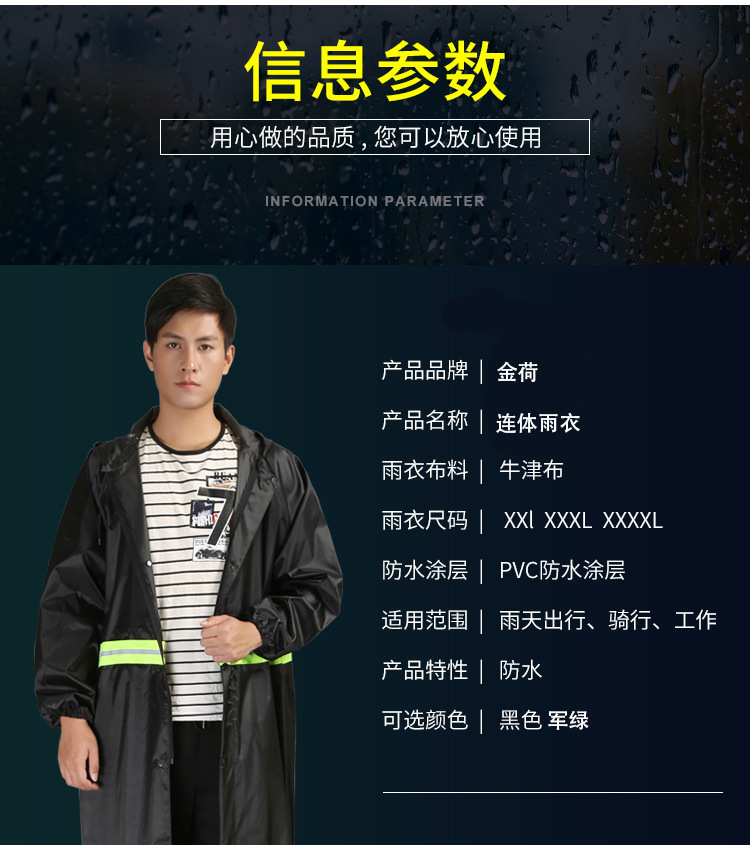 金荷批发反光雨披外卖连体风衣骑行劳保牛津布成人劳保应急雨衣