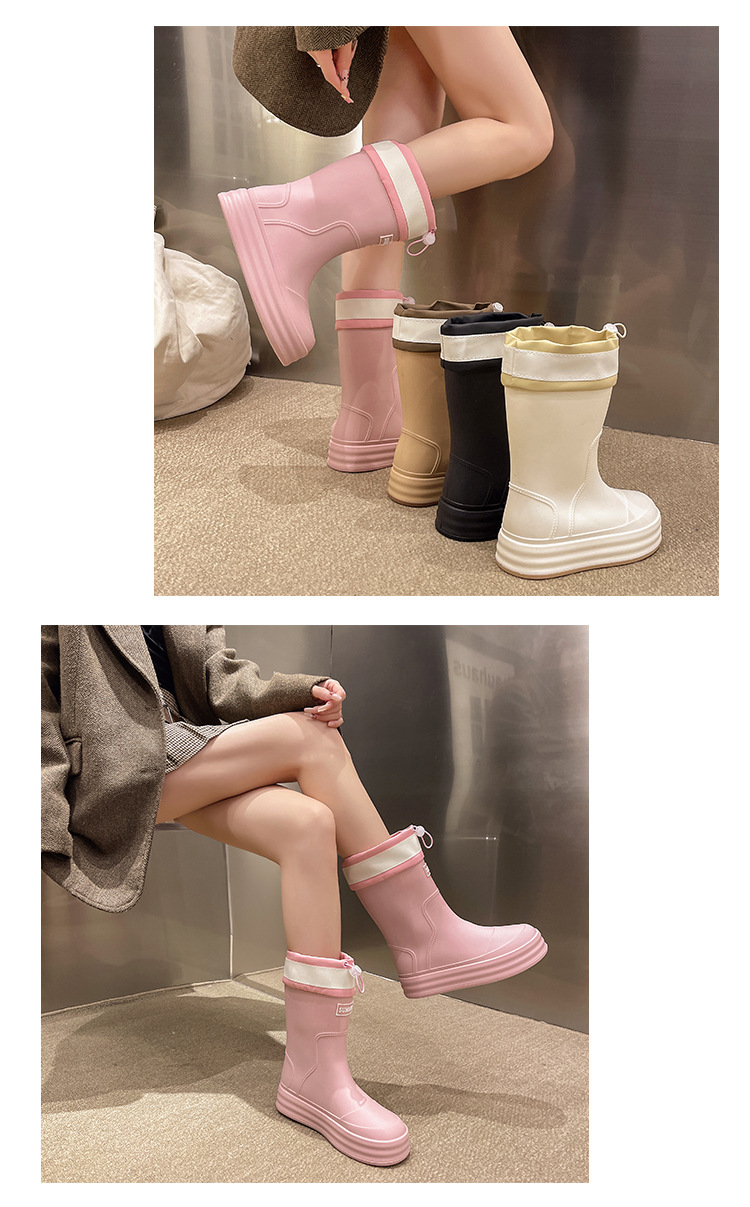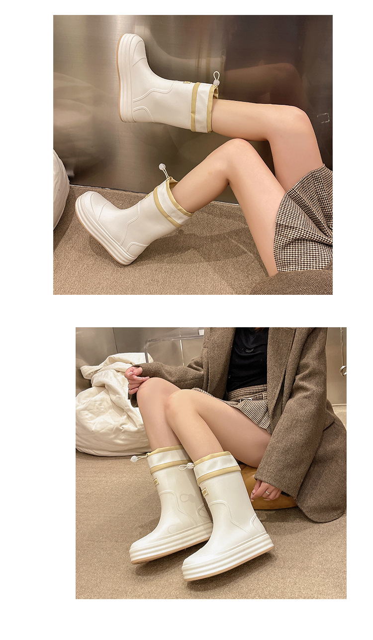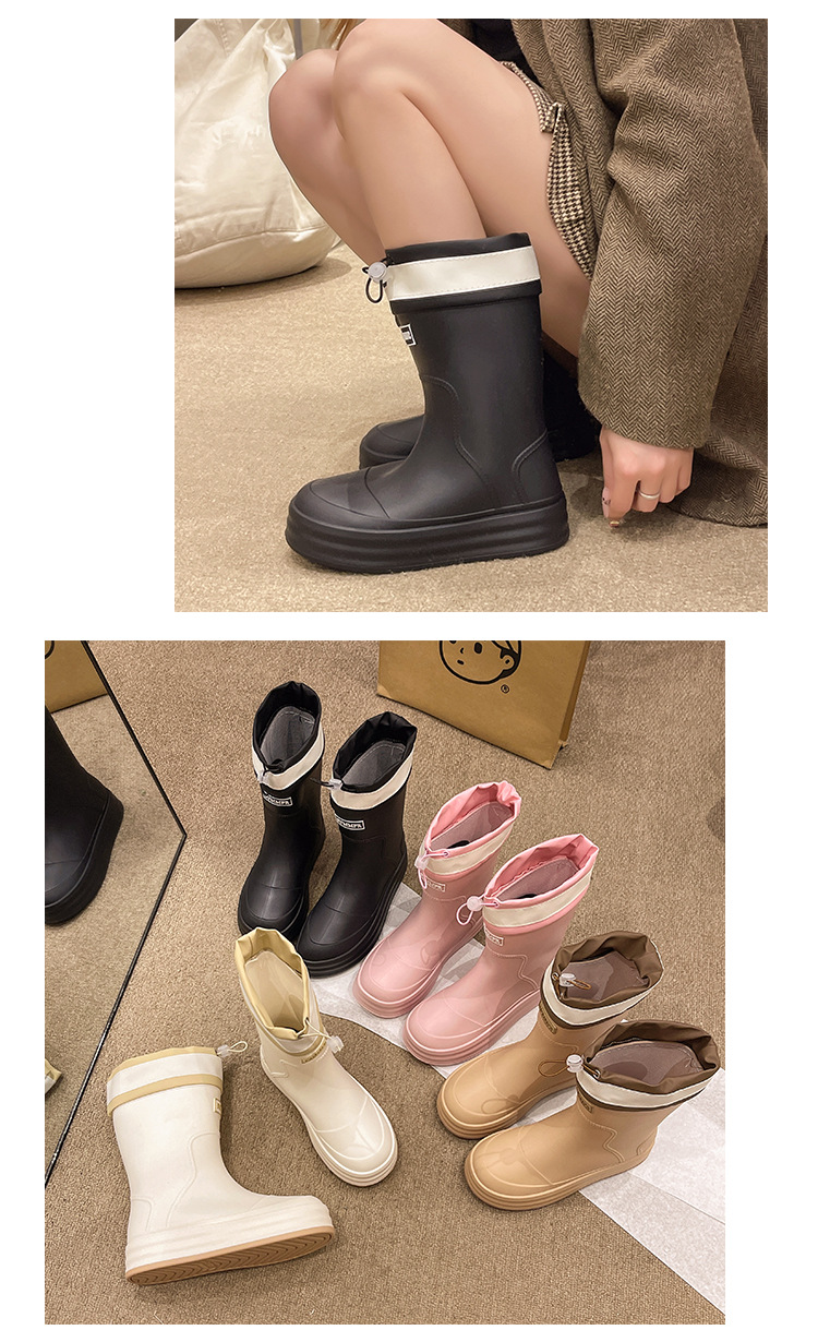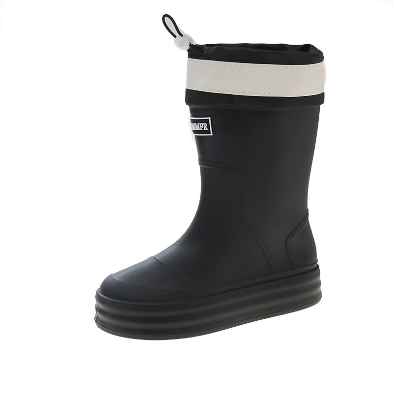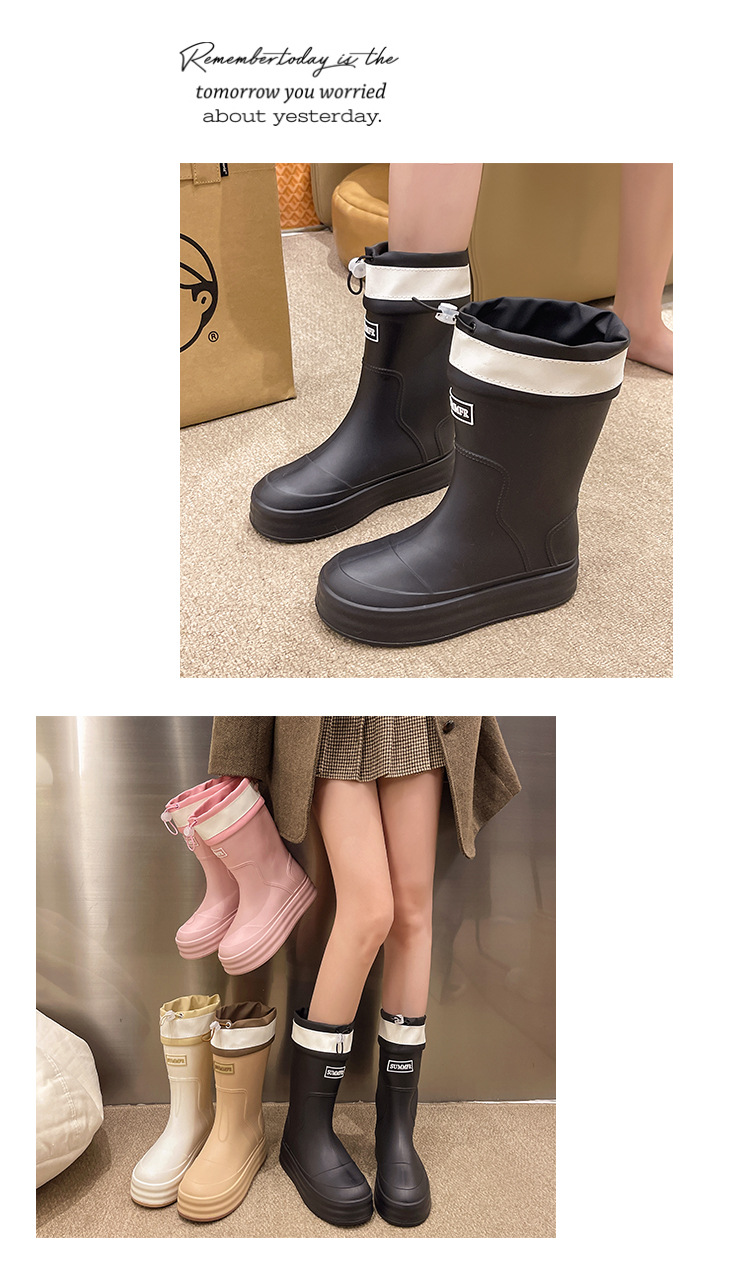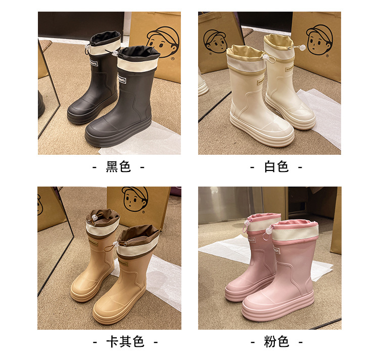 新款束口雨鞋女时尚外穿水鞋厚底防水防滑工作鞋胶鞋韩版中筒雨靴