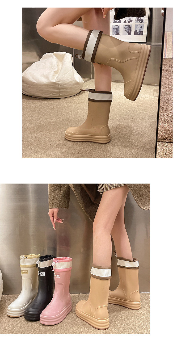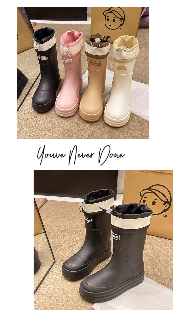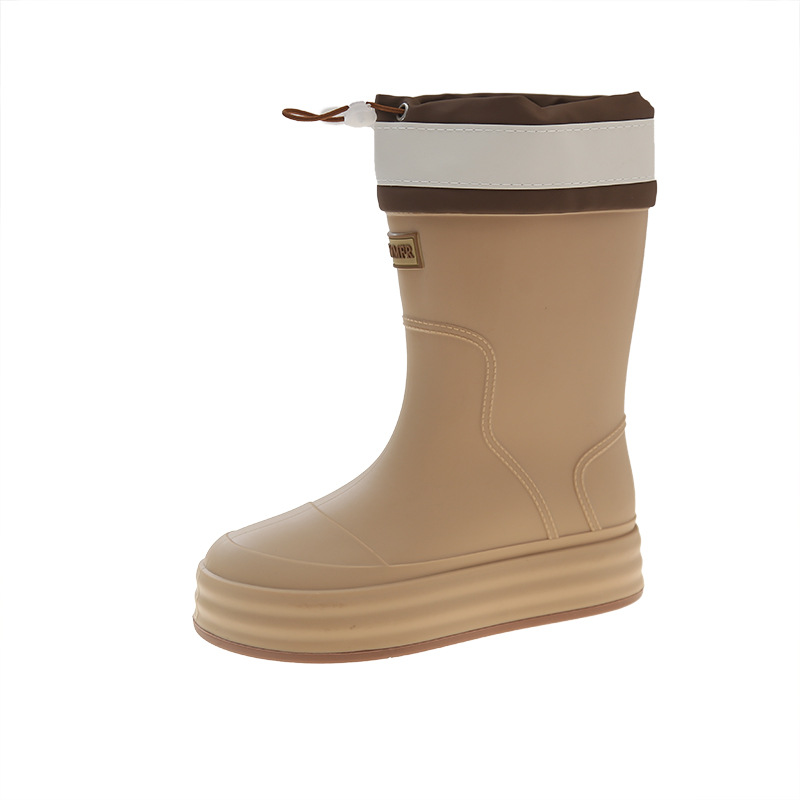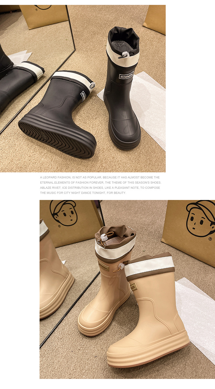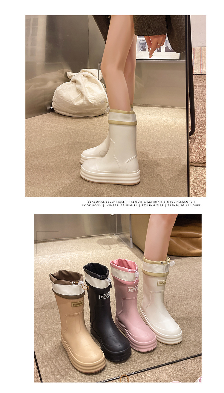 新款束口雨鞋女时尚外穿水鞋厚底防水防滑工作鞋胶鞋韩版中筒雨靴