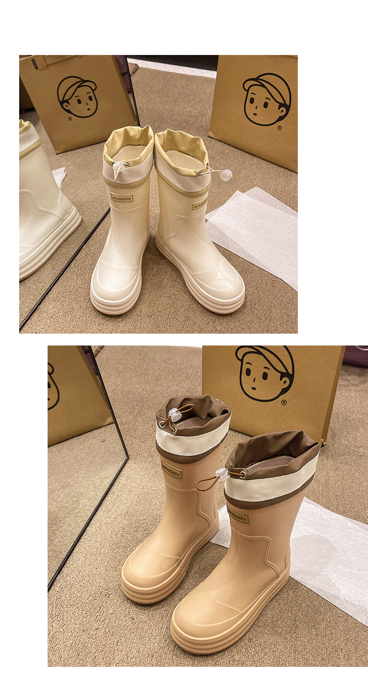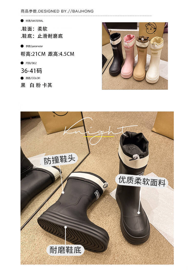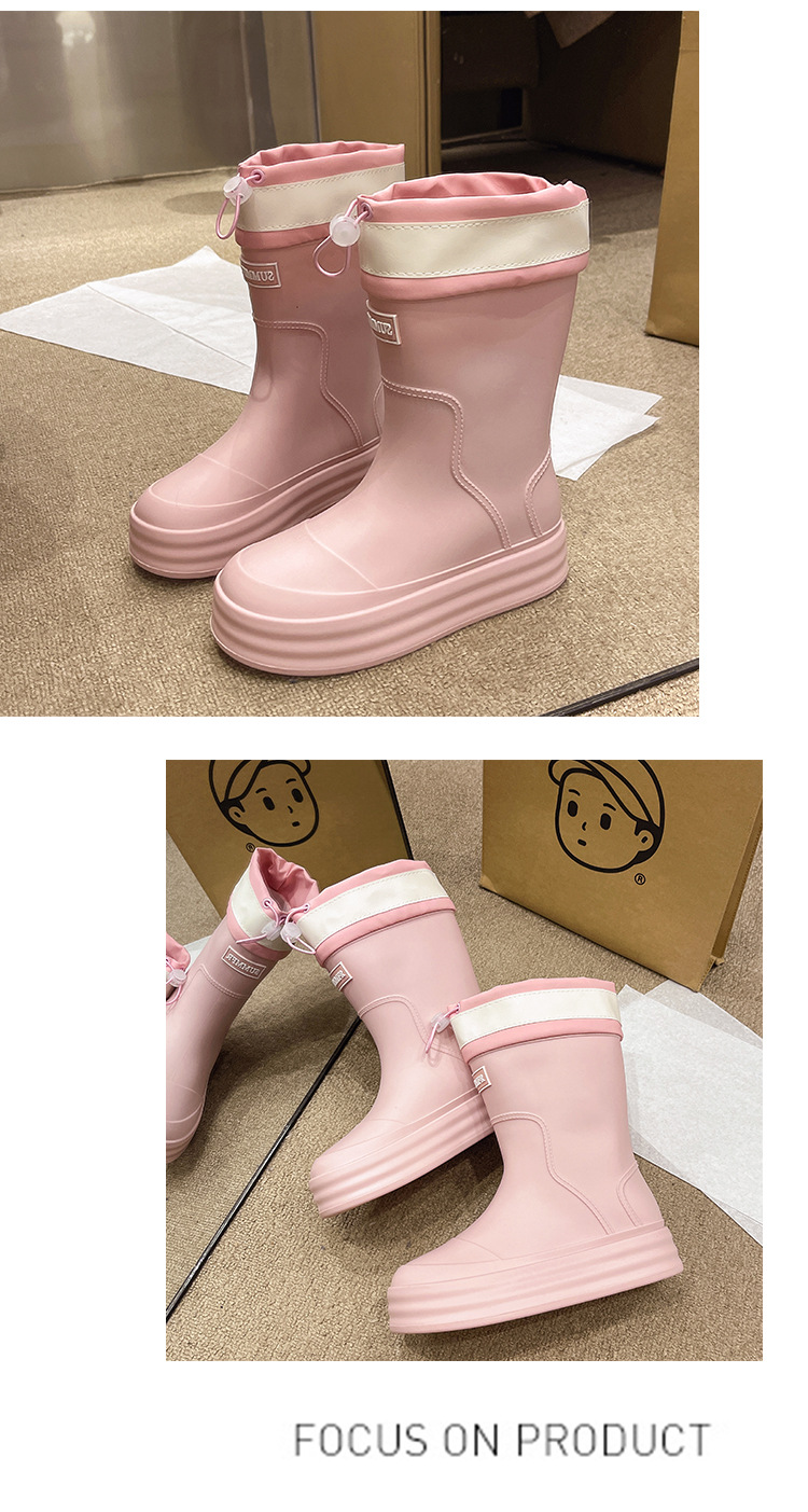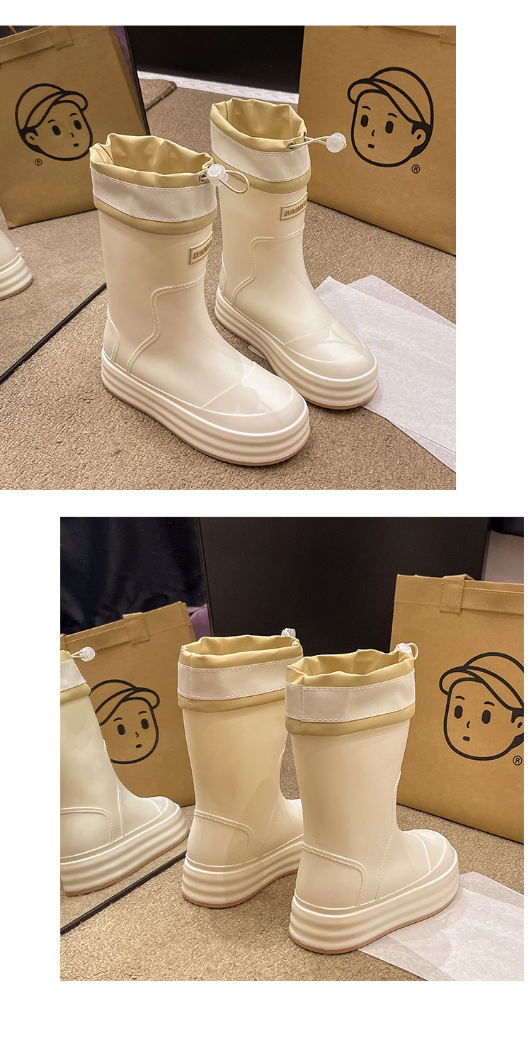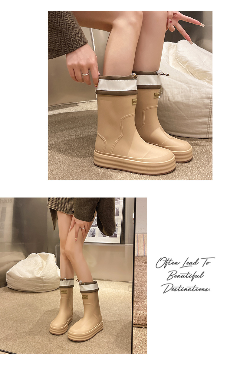 新款束口雨鞋女时尚外穿水鞋厚底防水防滑工作鞋胶鞋韩版中筒雨靴