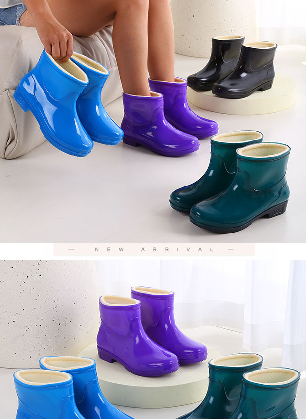新款加绒雨鞋女成人短筒胶鞋厚底保暖防滑厨房耐磨防水鞋雨靴批发