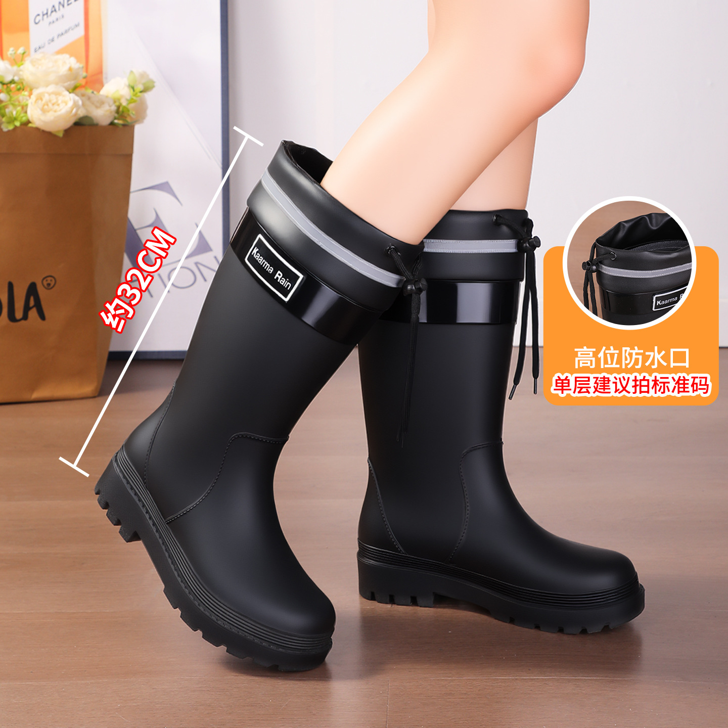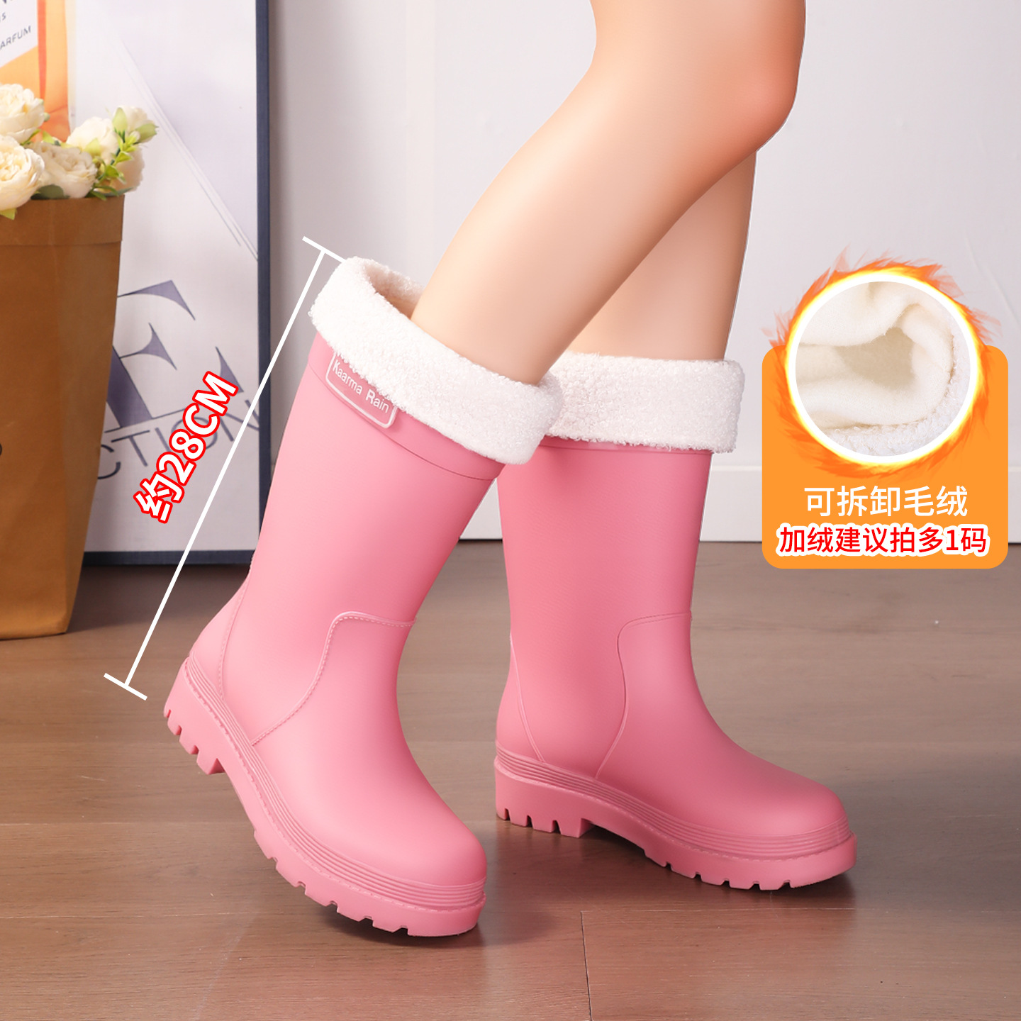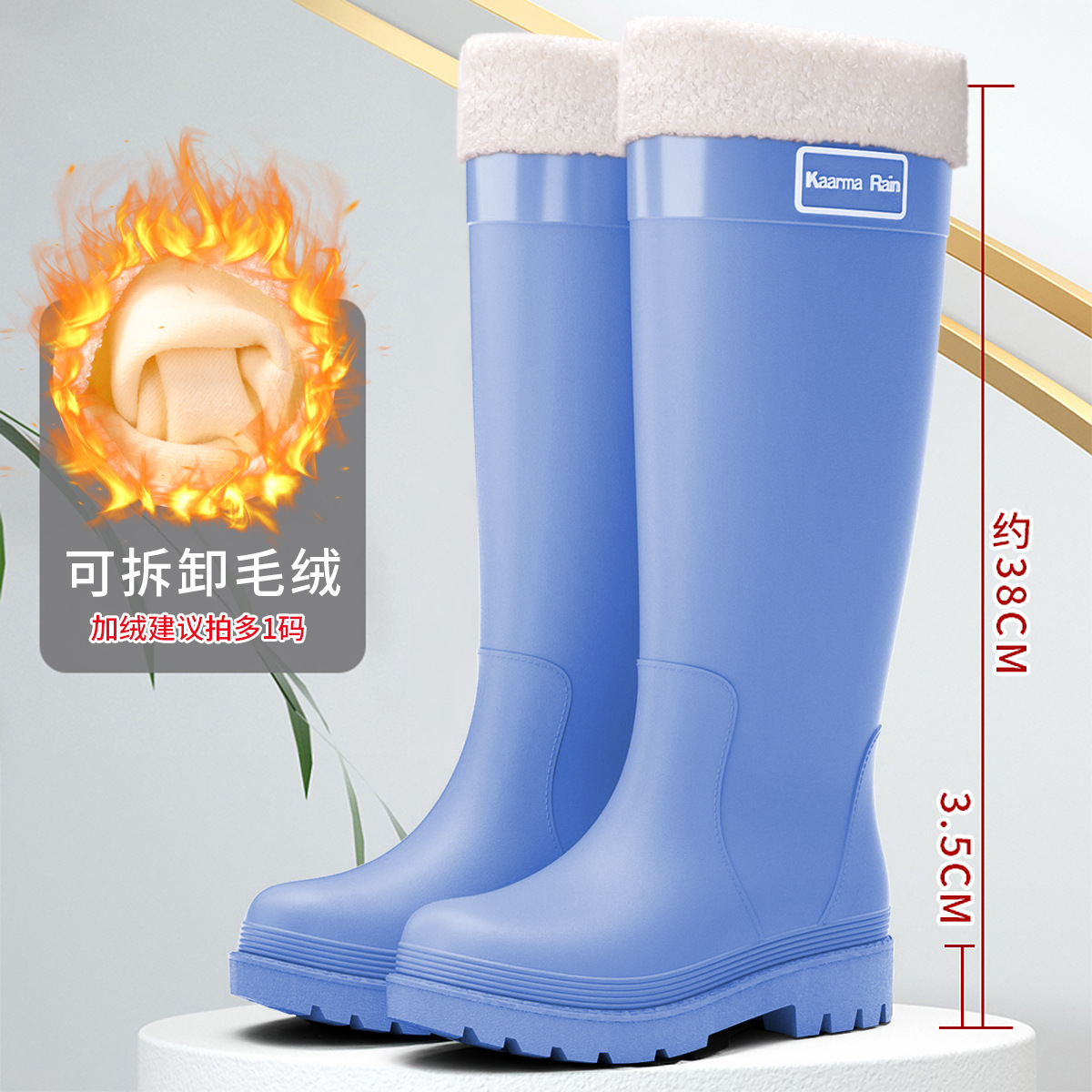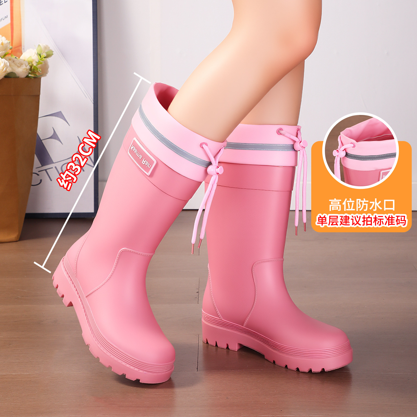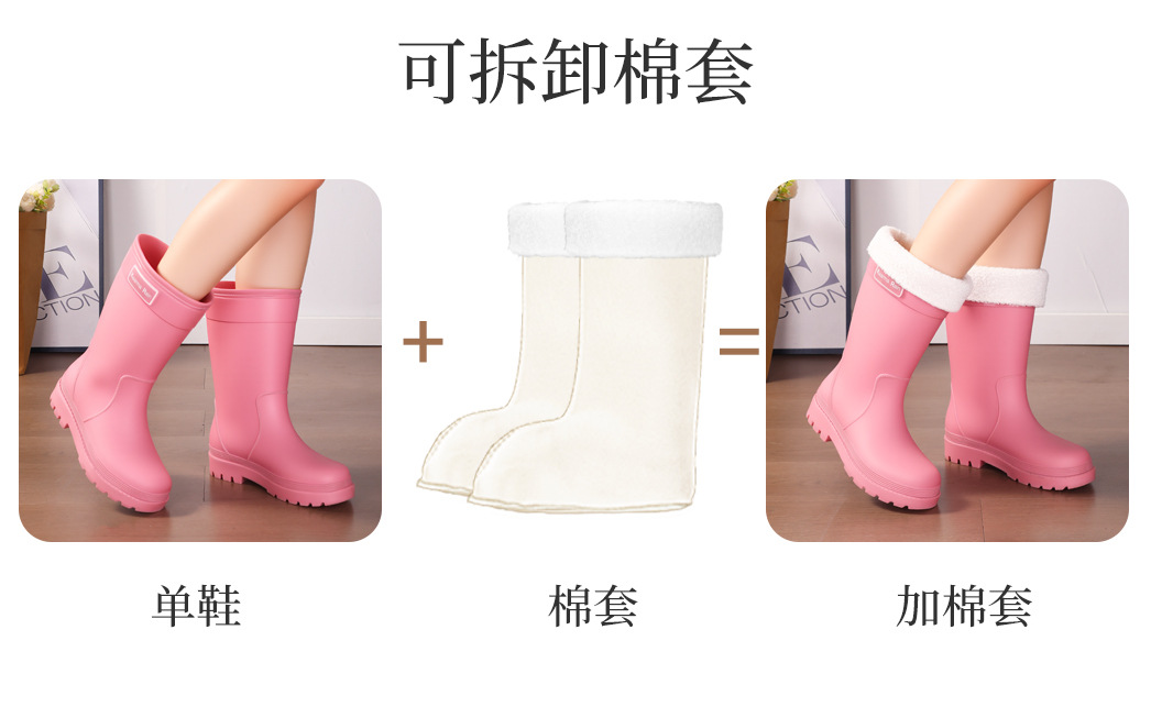 防水束口雨鞋女款轻便时尚外穿高筒加绒雨靴2025新款水靴防滑胶鞋