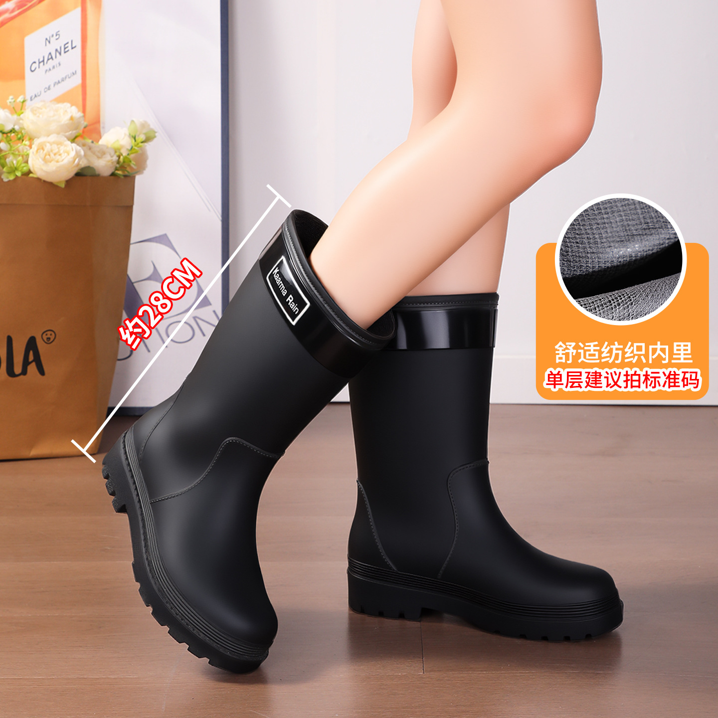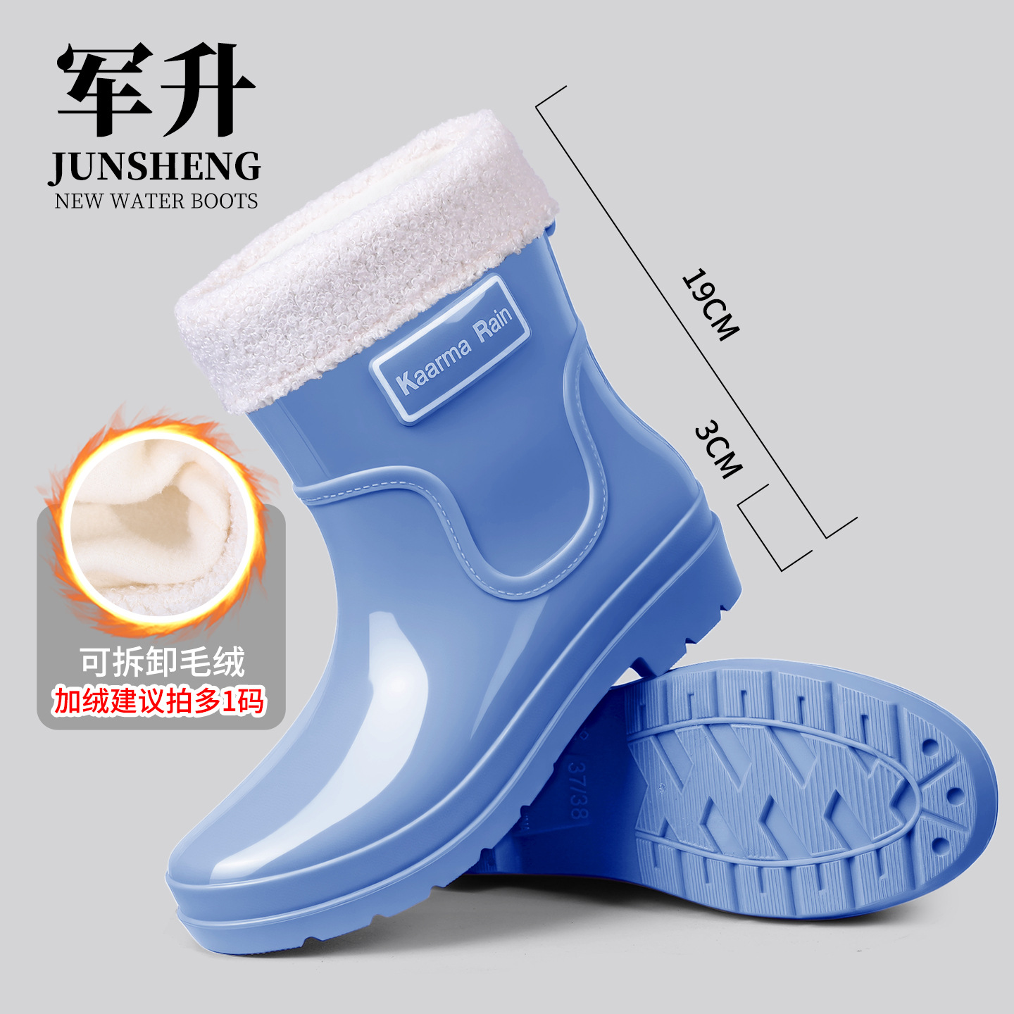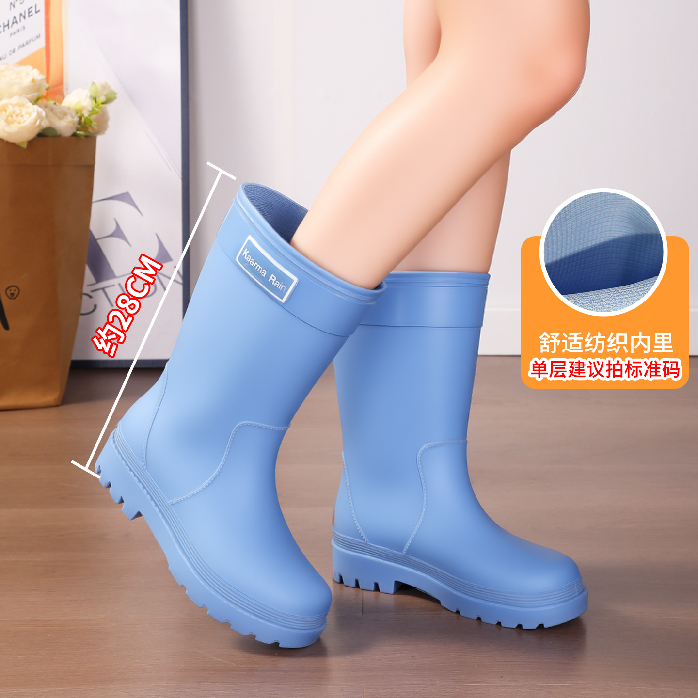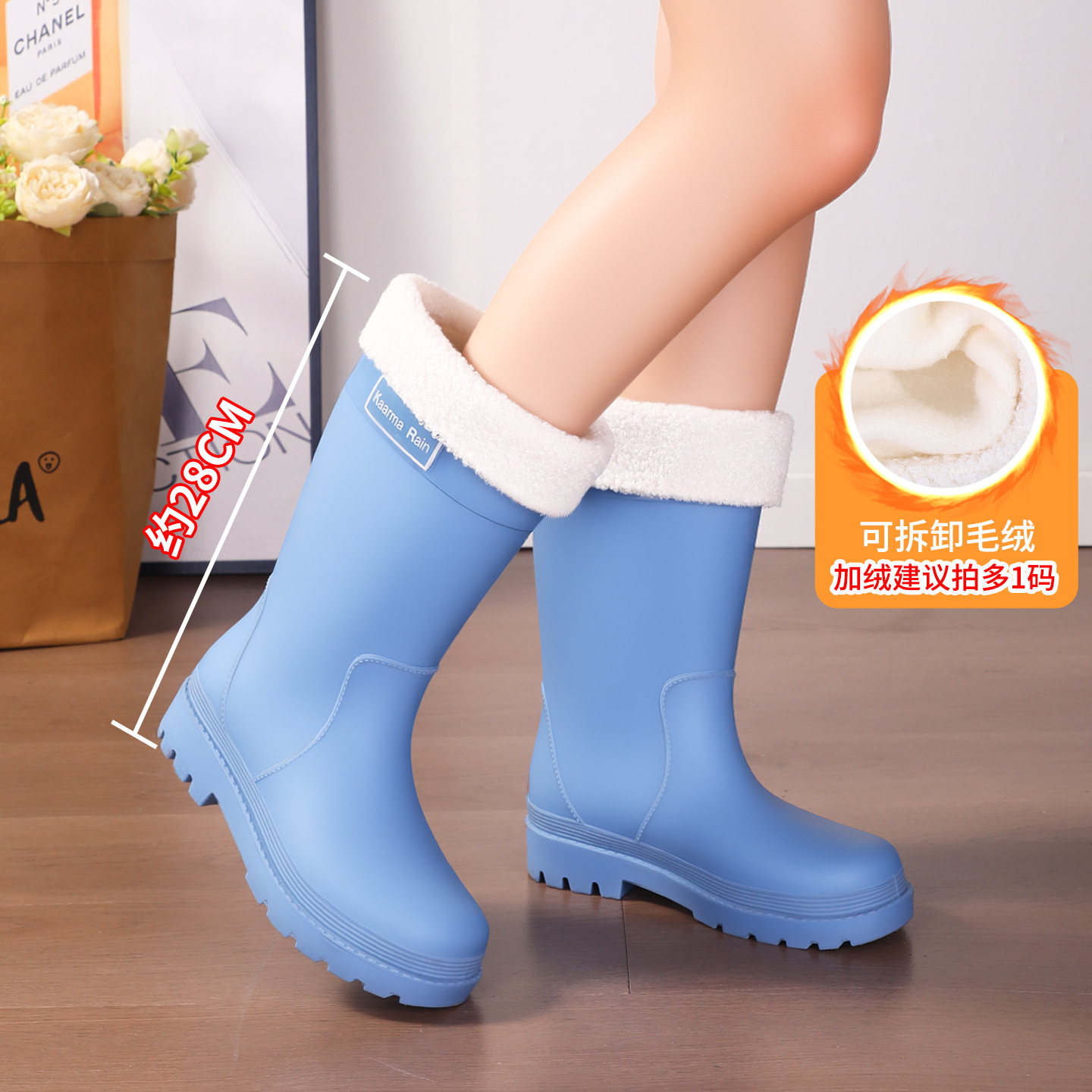 防水束口雨鞋女款轻便时尚外穿高筒加绒雨靴2025新款水靴防滑胶鞋