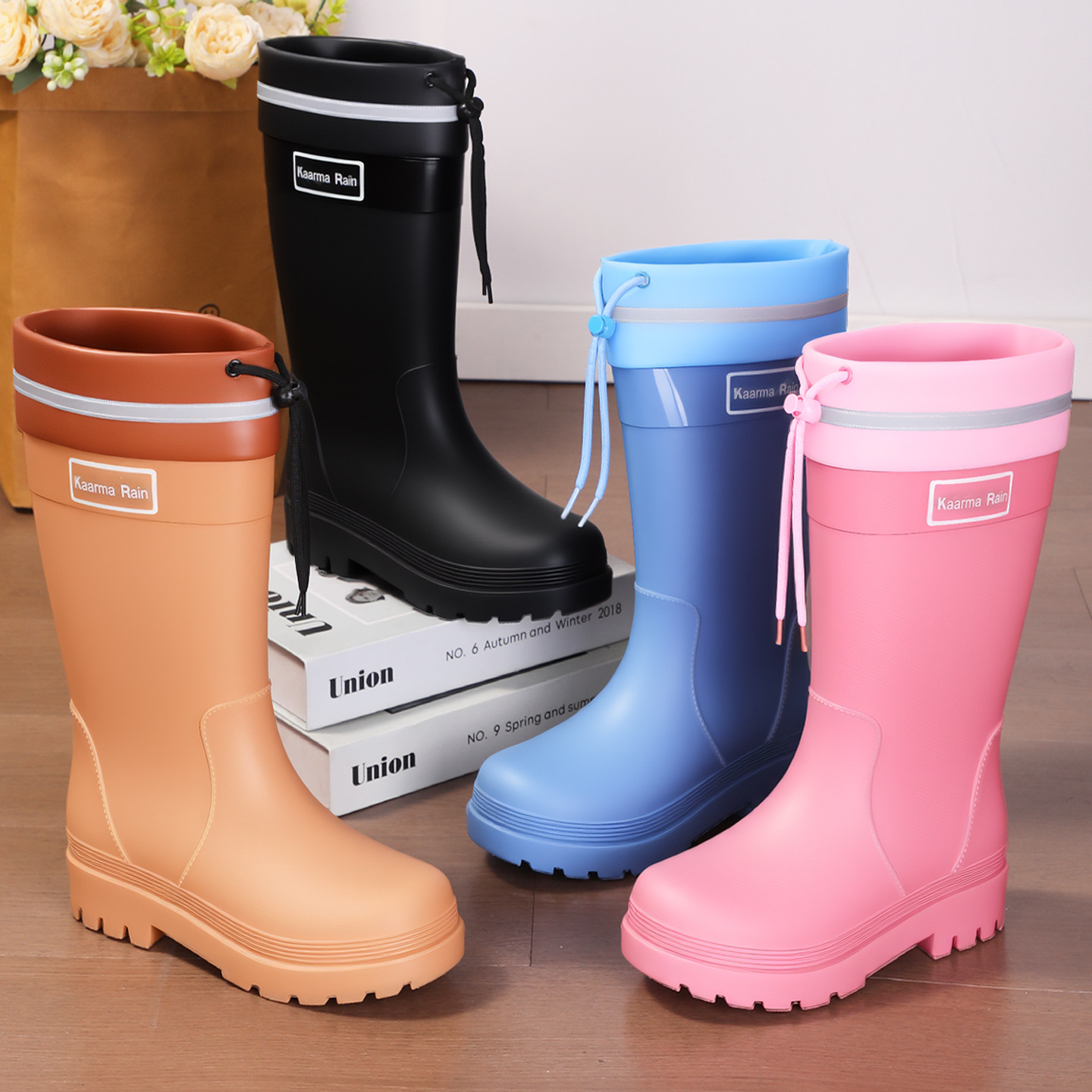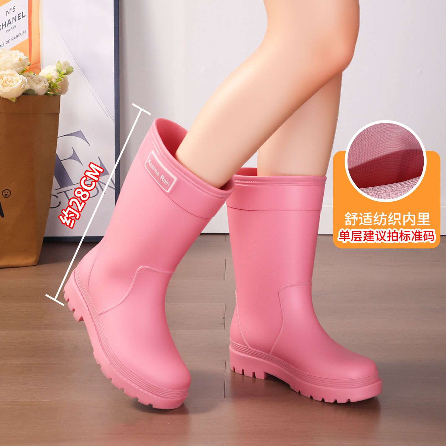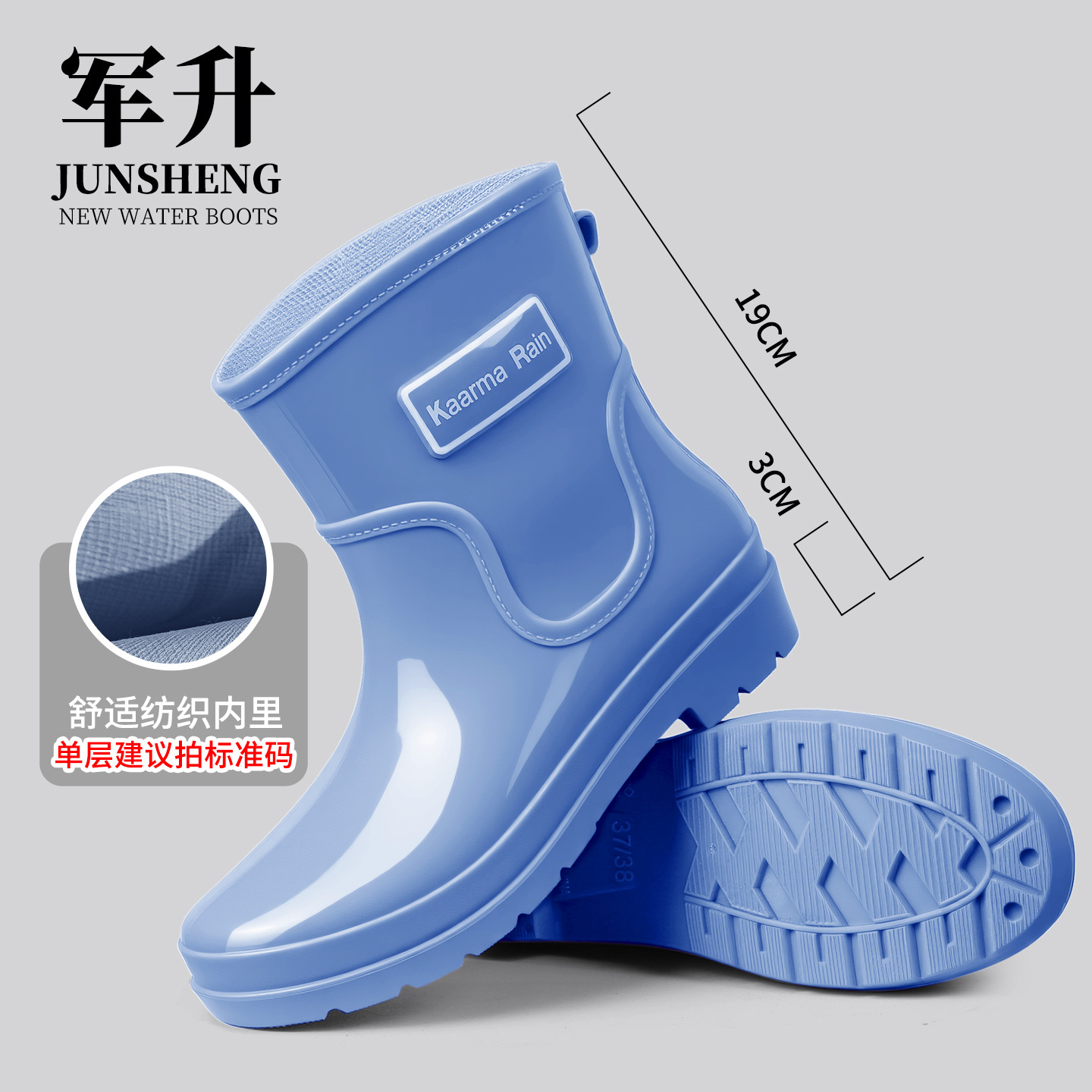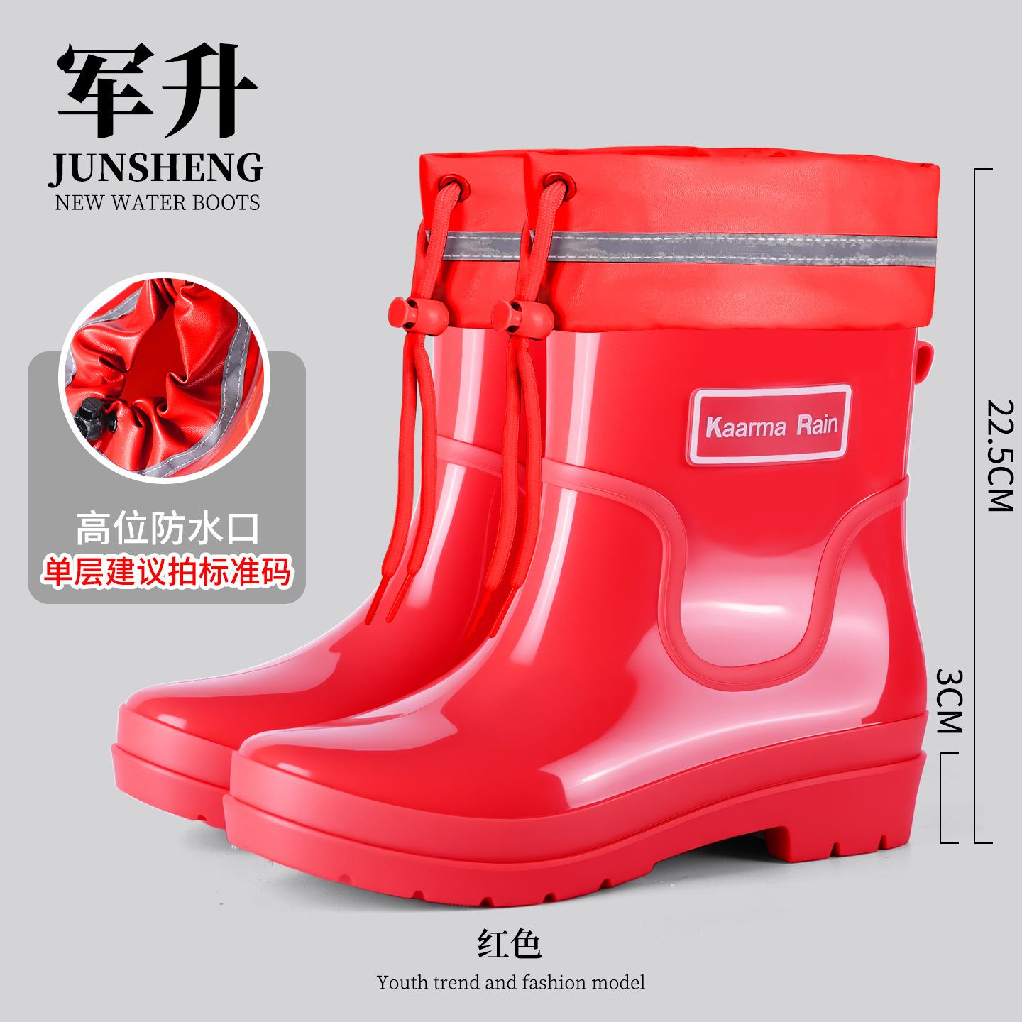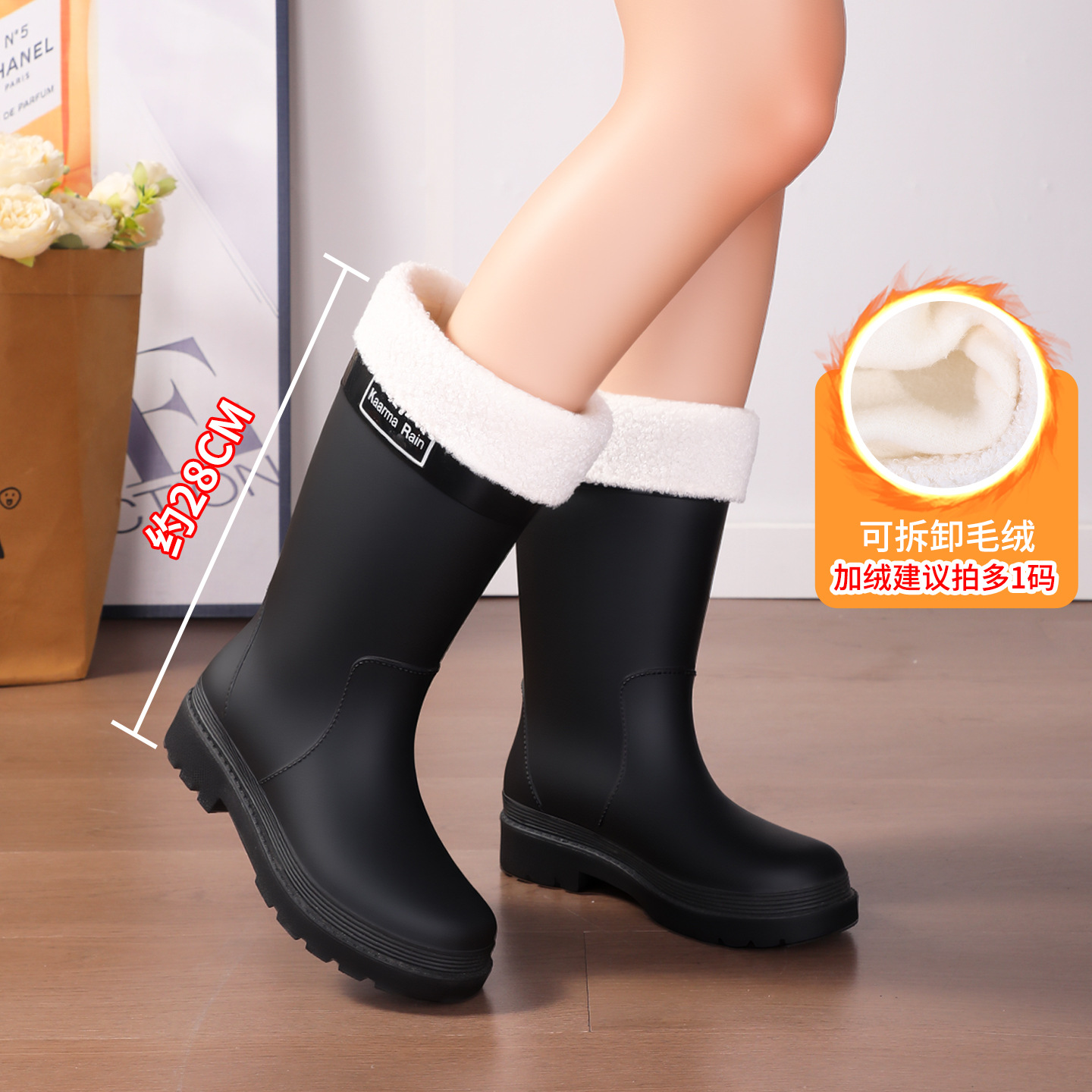 防水束口雨鞋女款轻便时尚外穿高筒加绒雨靴2025新款水靴防滑胶鞋