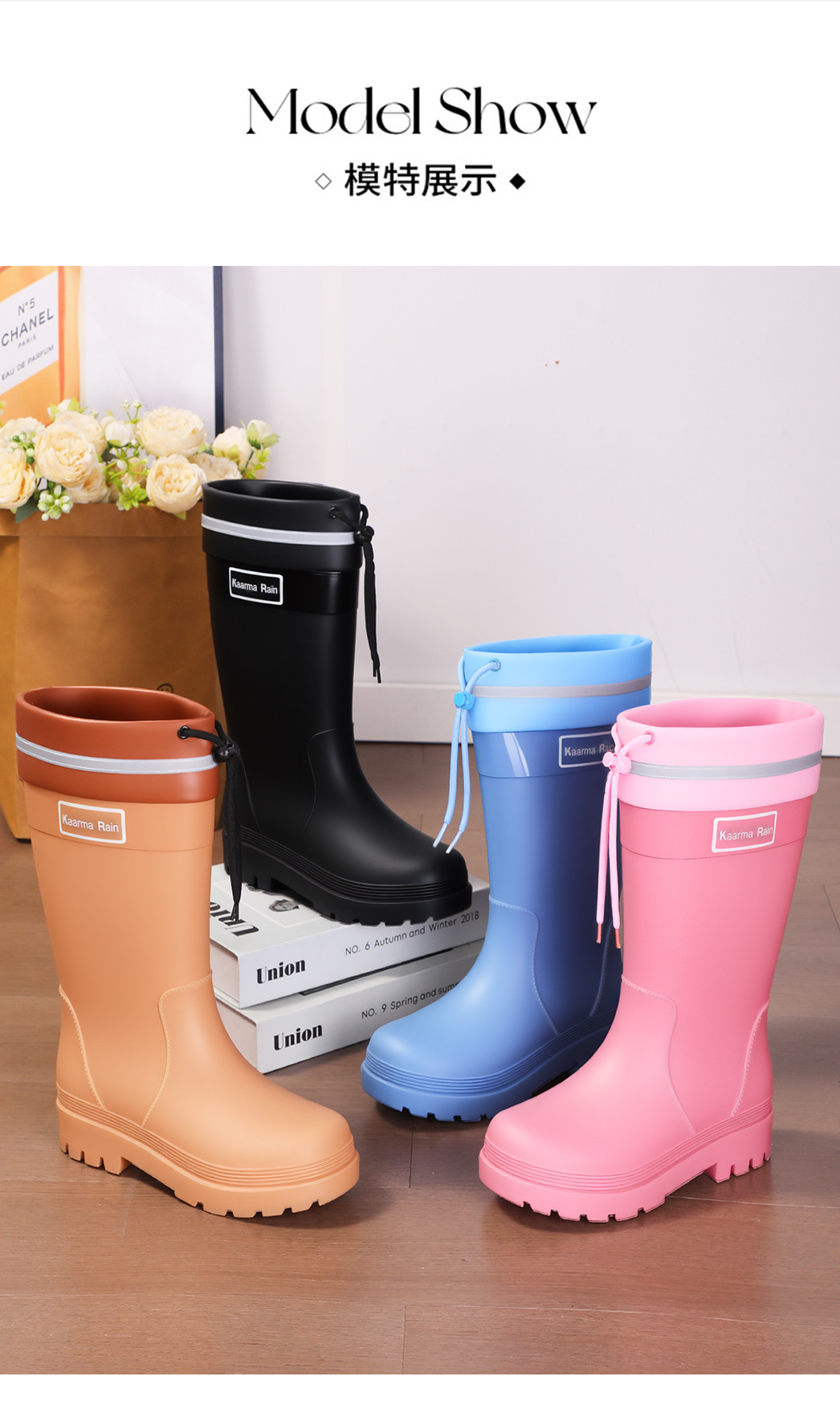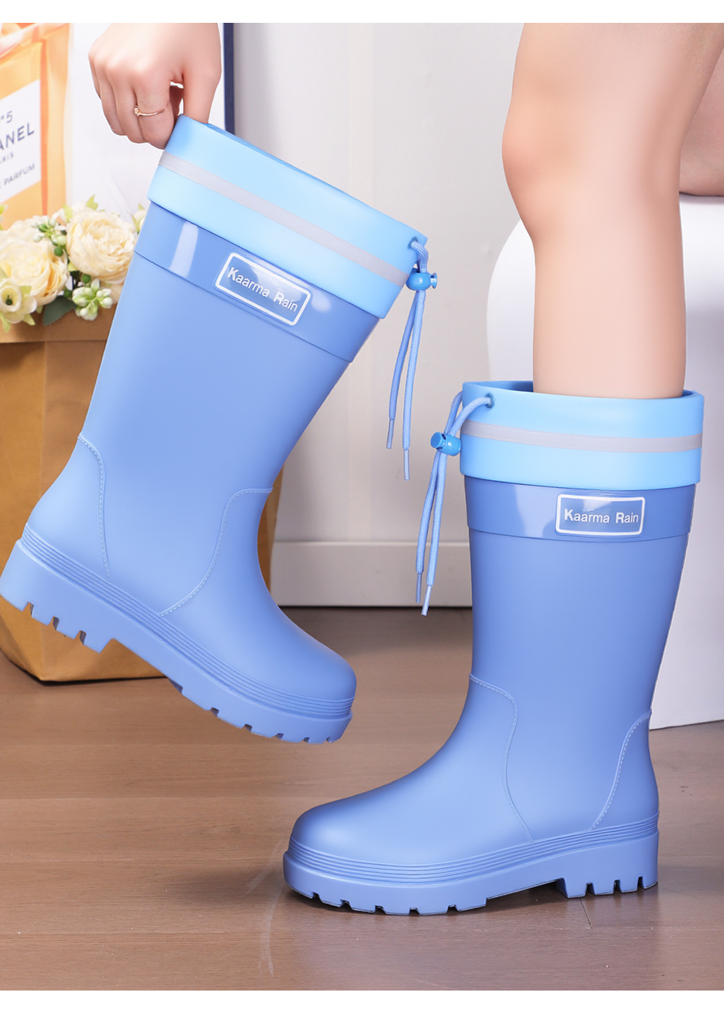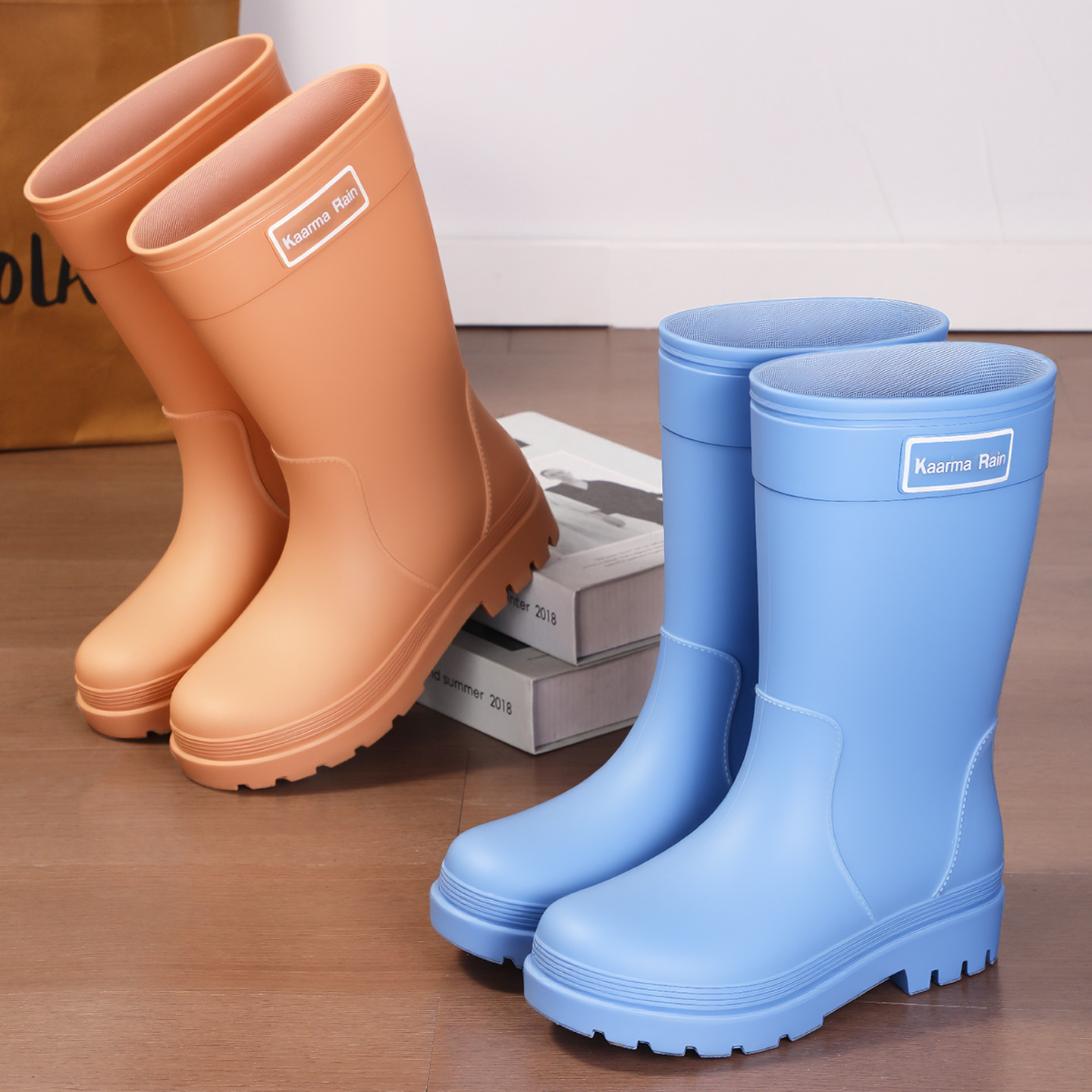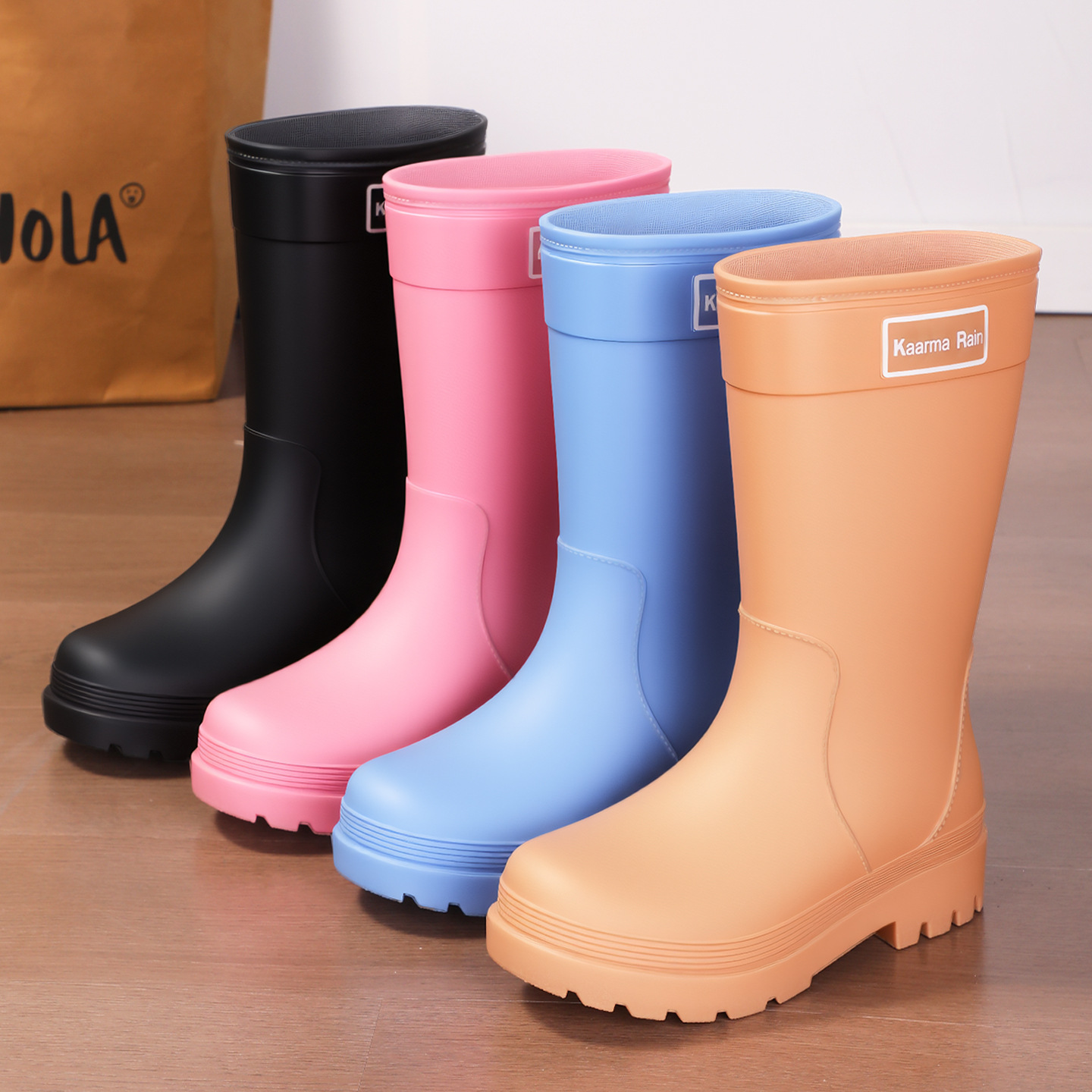 防水束口雨鞋女款轻便时尚外穿高筒加绒雨靴2025新款水靴防滑胶鞋