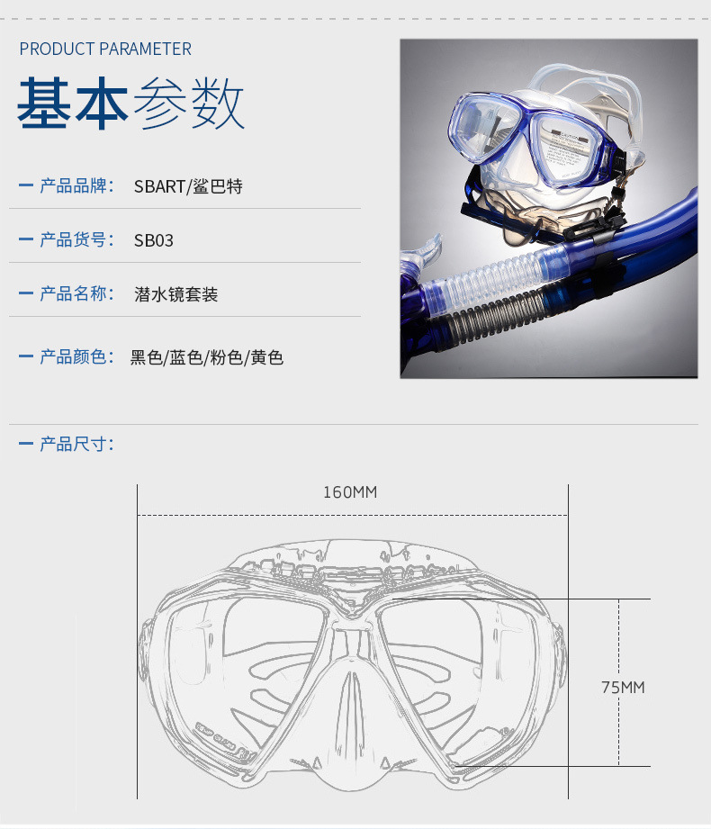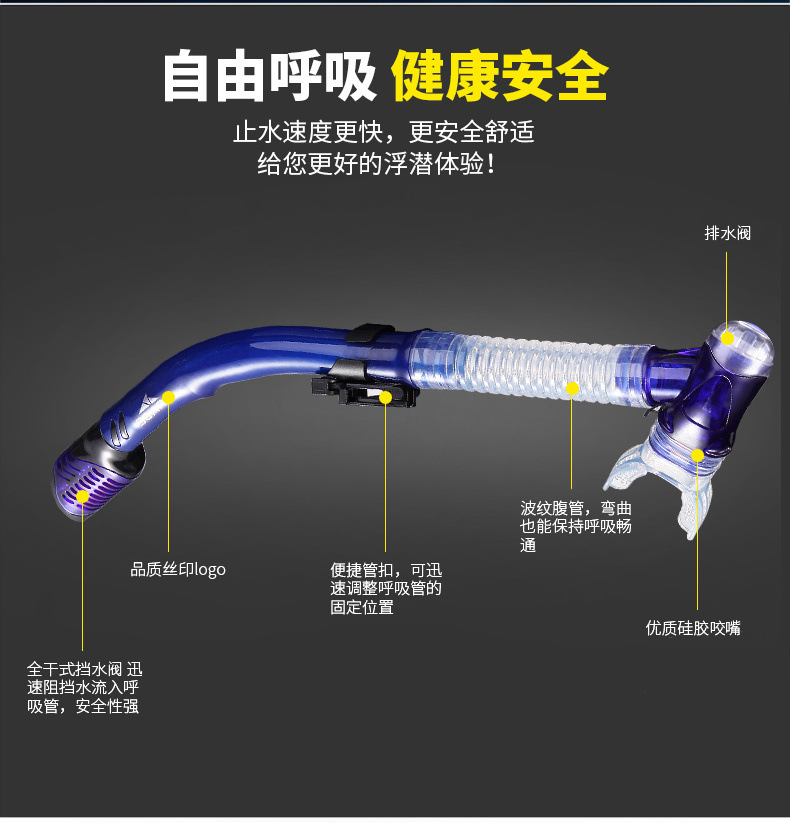 浮潜三宝套装干式呼吸管近视潜水面镜成人面罩游泳装备直发跨境