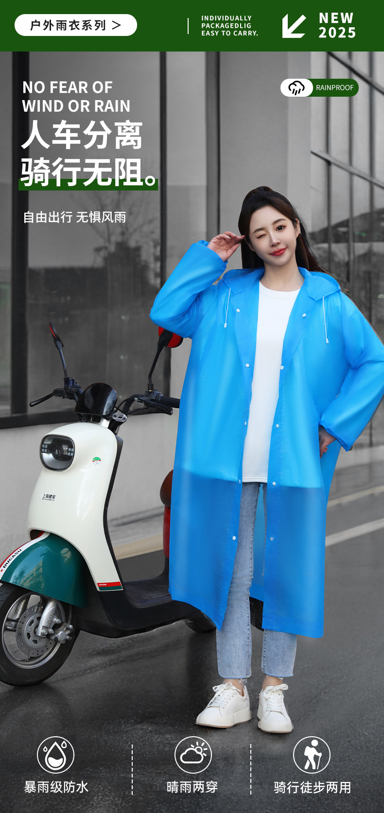 150克18丝加厚|天空蓝束口/柔感雨衣 USD $1.51 22857 piece available
