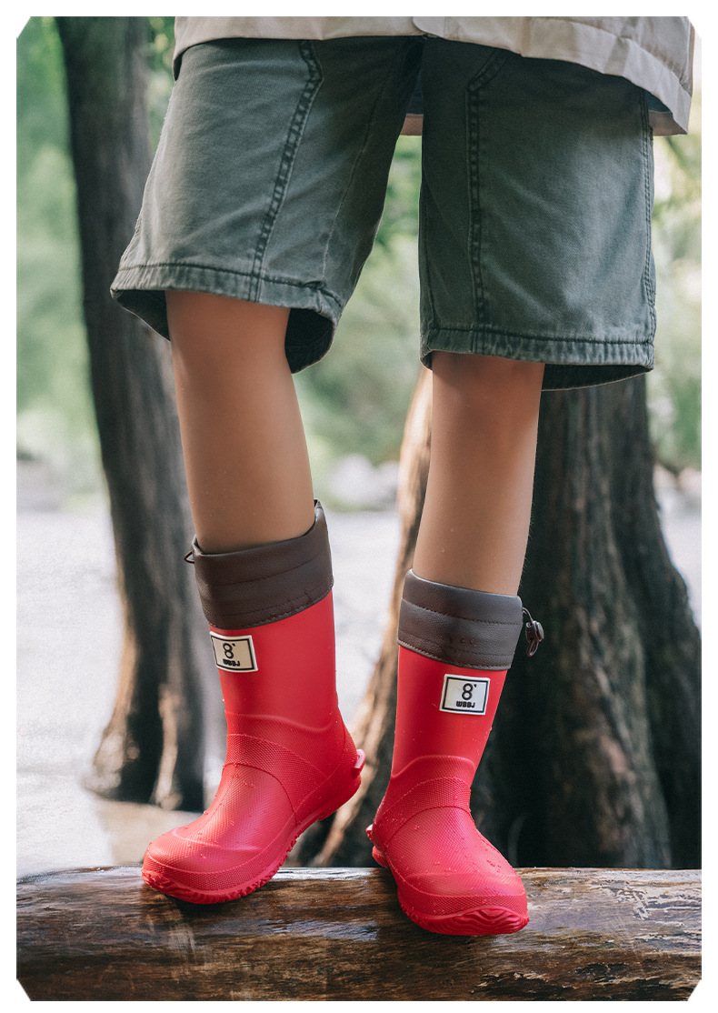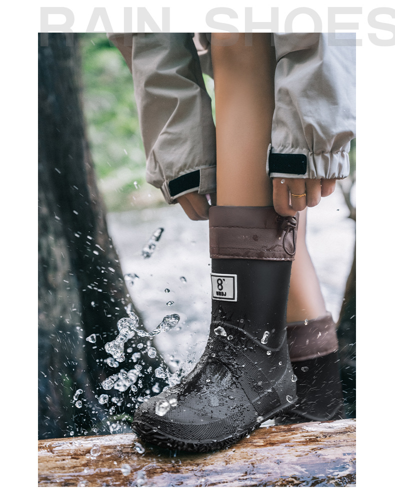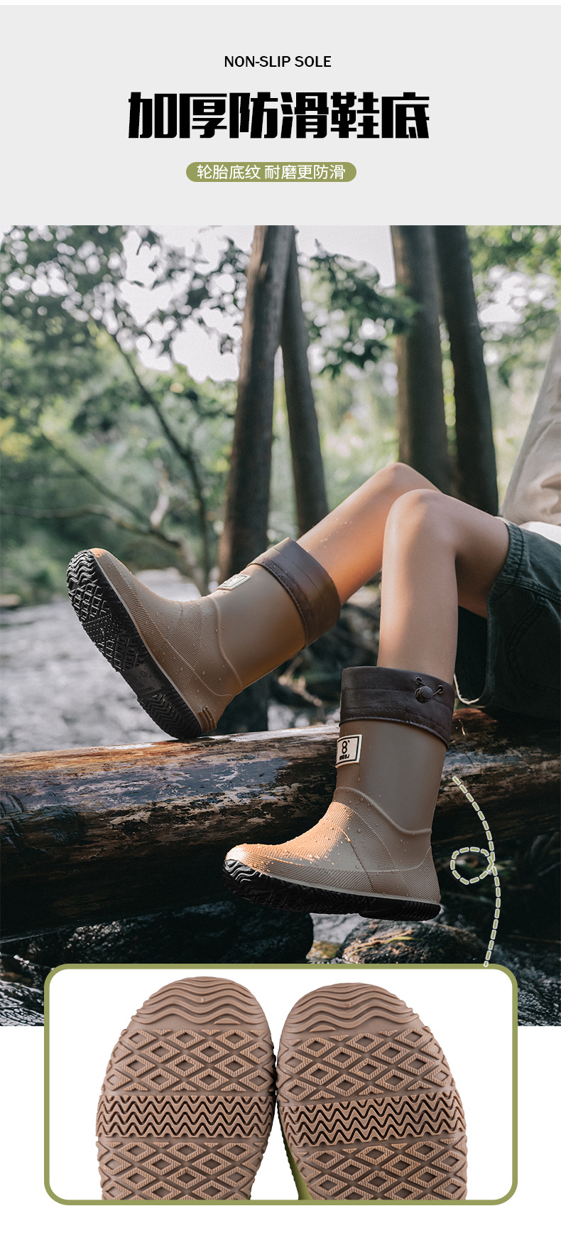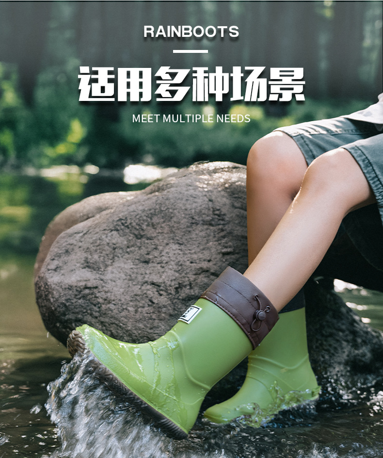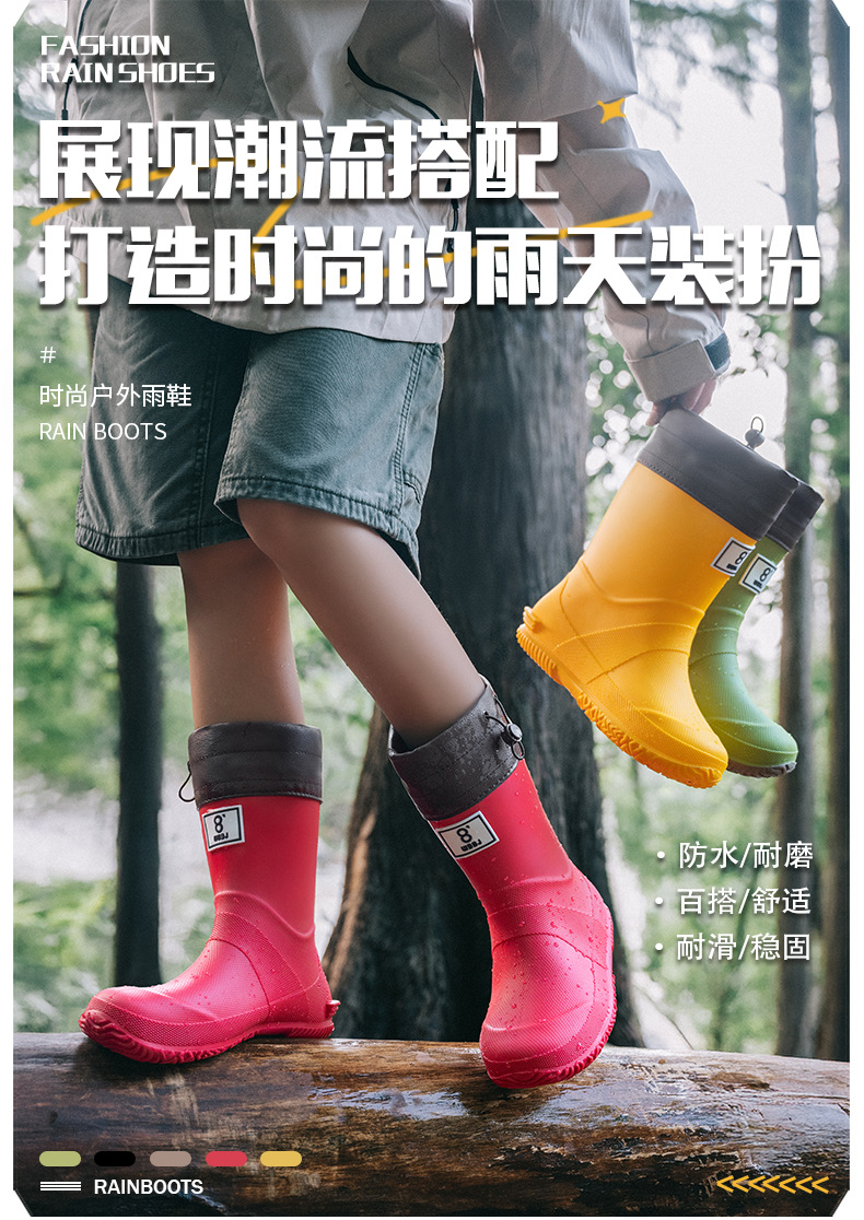 束口防水鞋女款软底雨鞋森林远足防滑可折叠雨靴女中筒红色防水靴