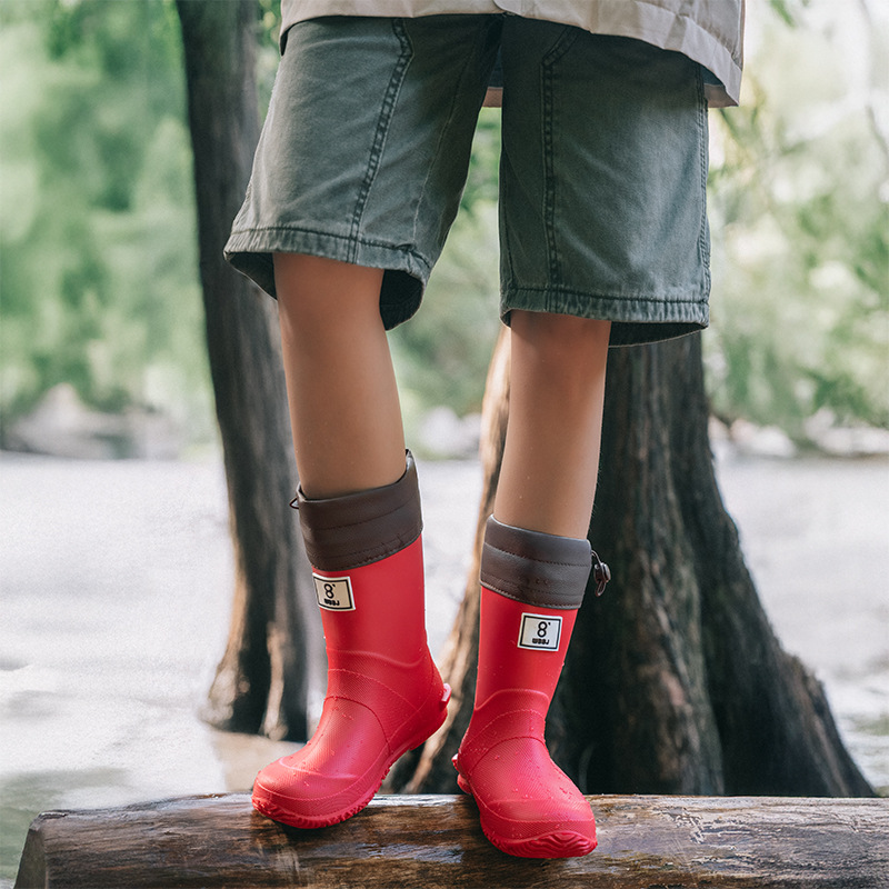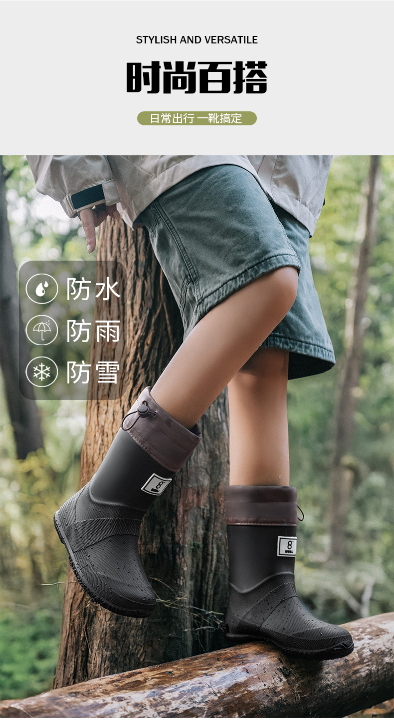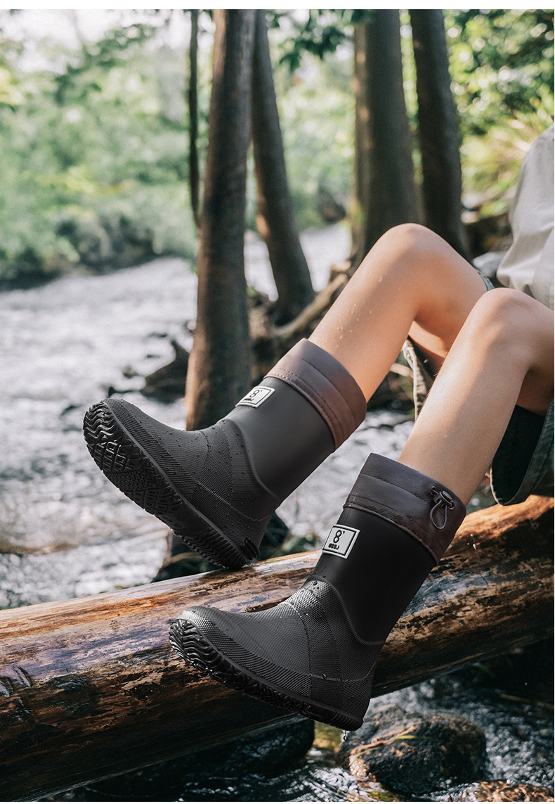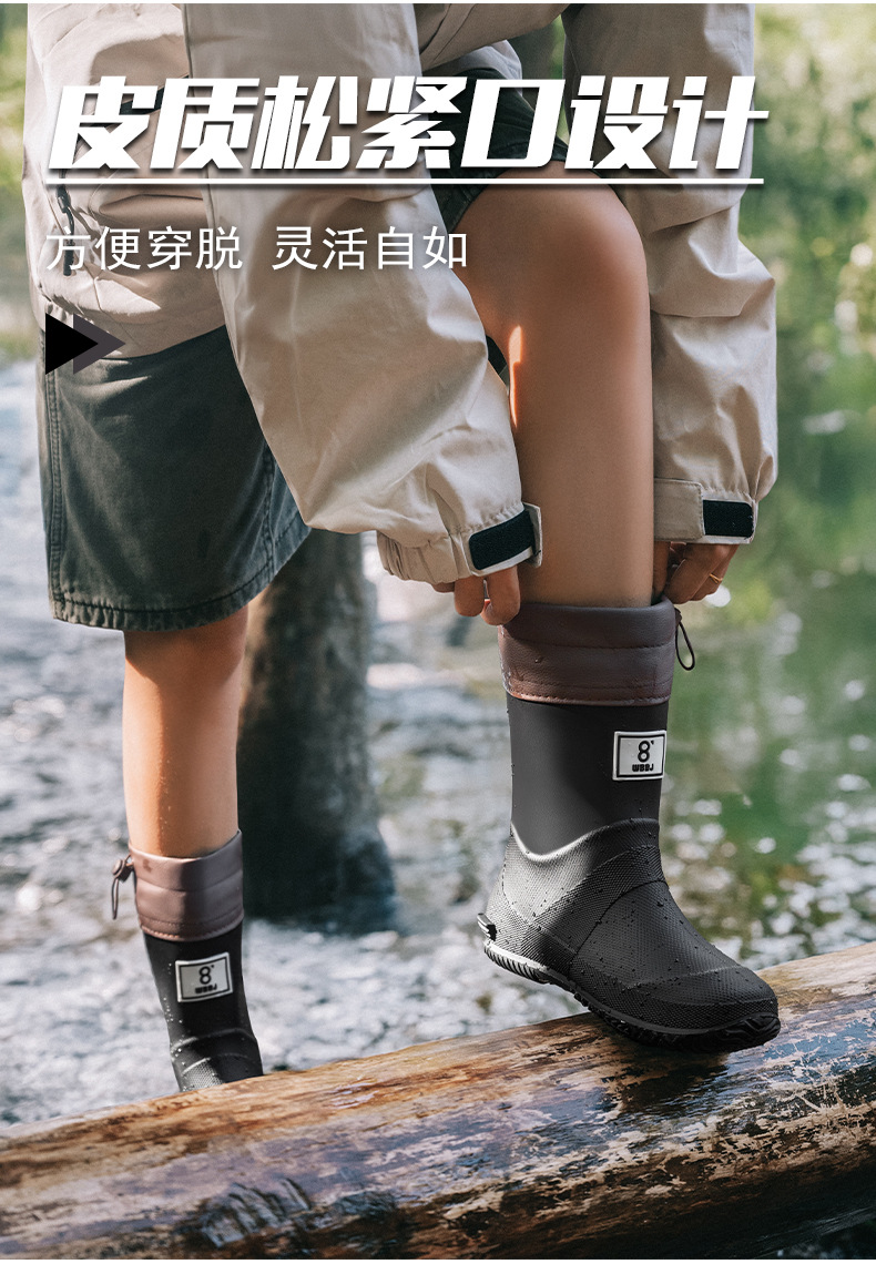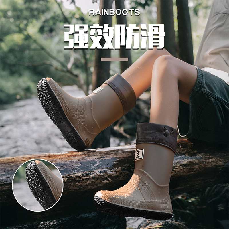 束口防水鞋女款软底雨鞋森林远足防滑可折叠雨靴女中筒红色防水靴