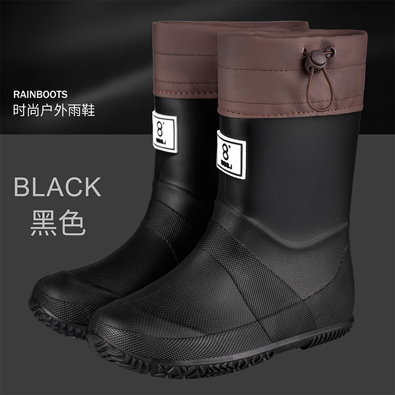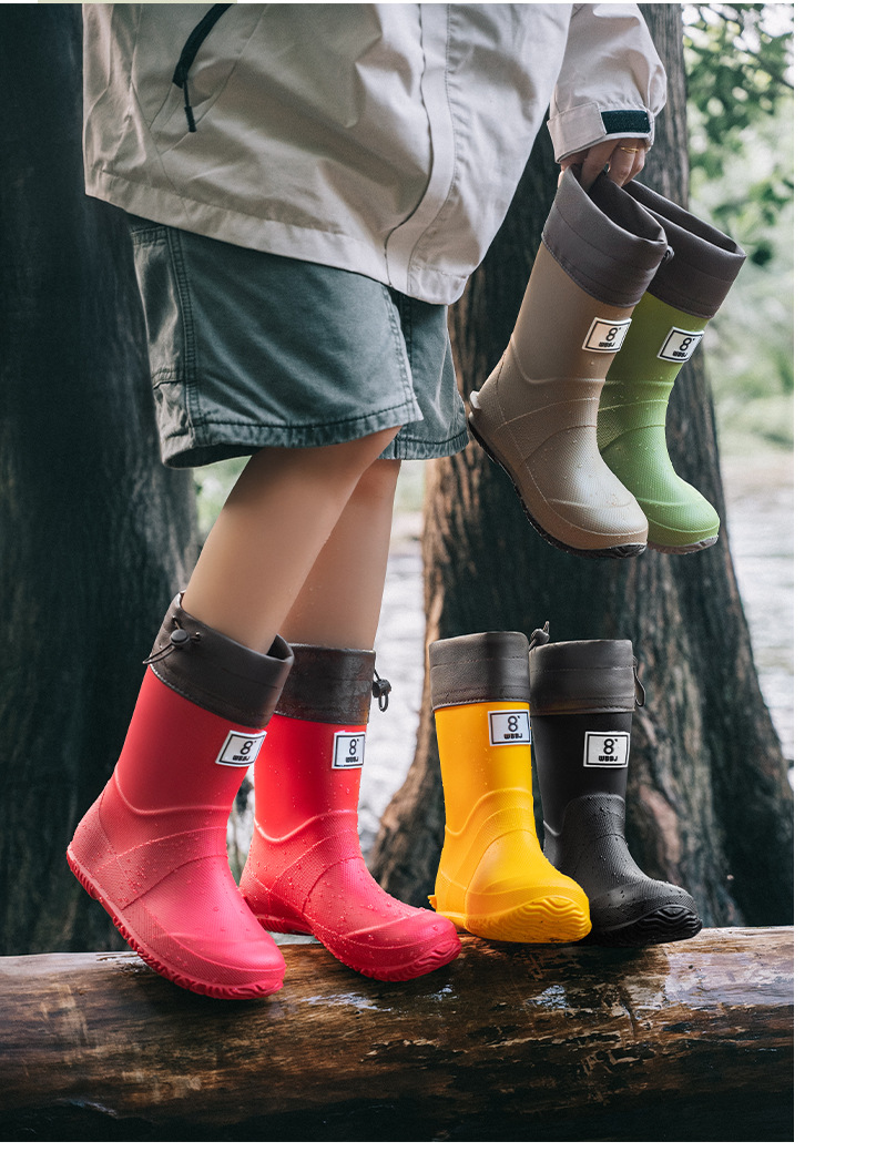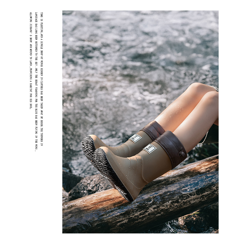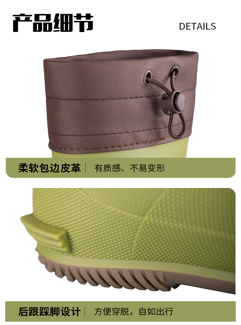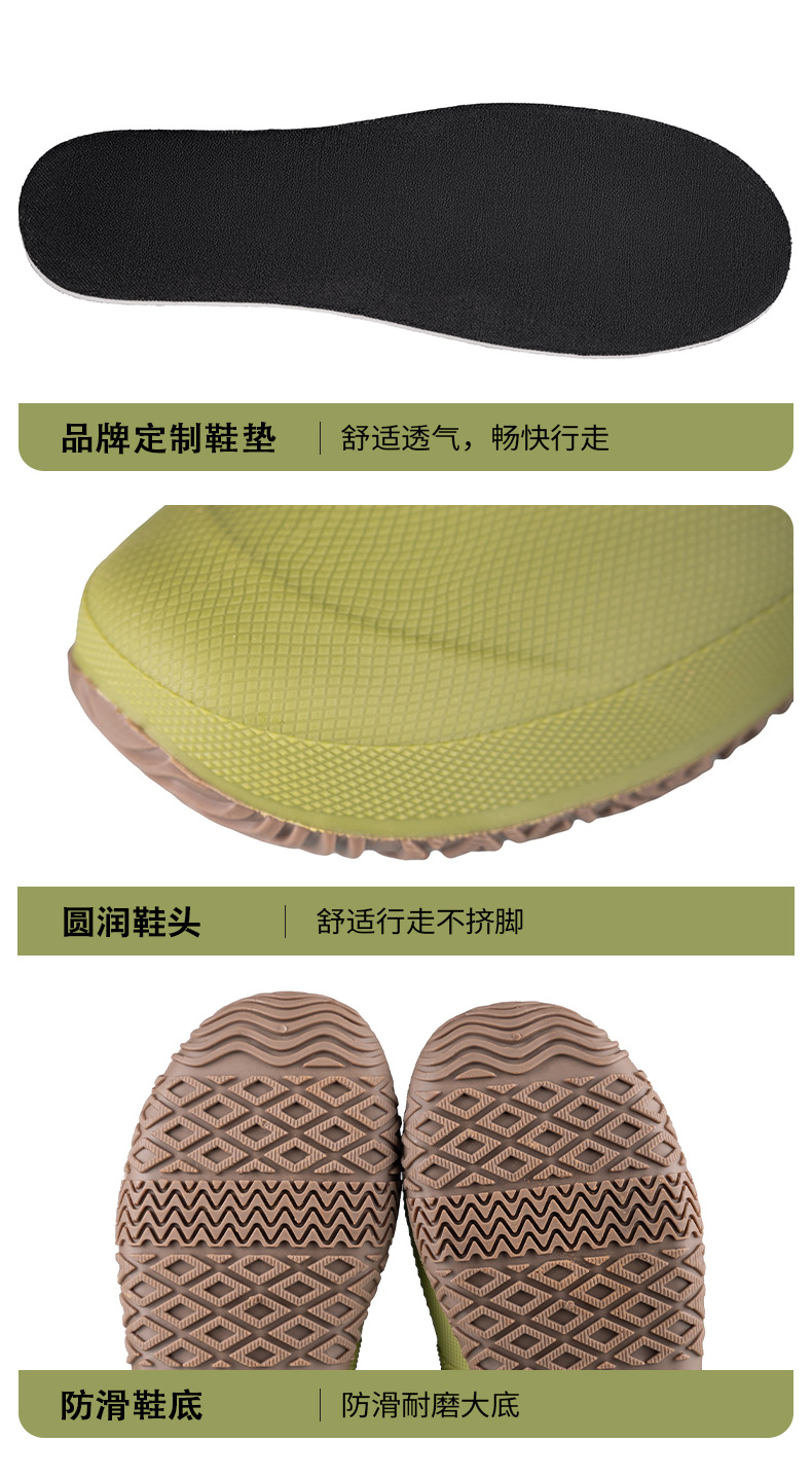 束口防水鞋女款软底雨鞋森林远足防滑可折叠雨靴女中筒红色防水靴