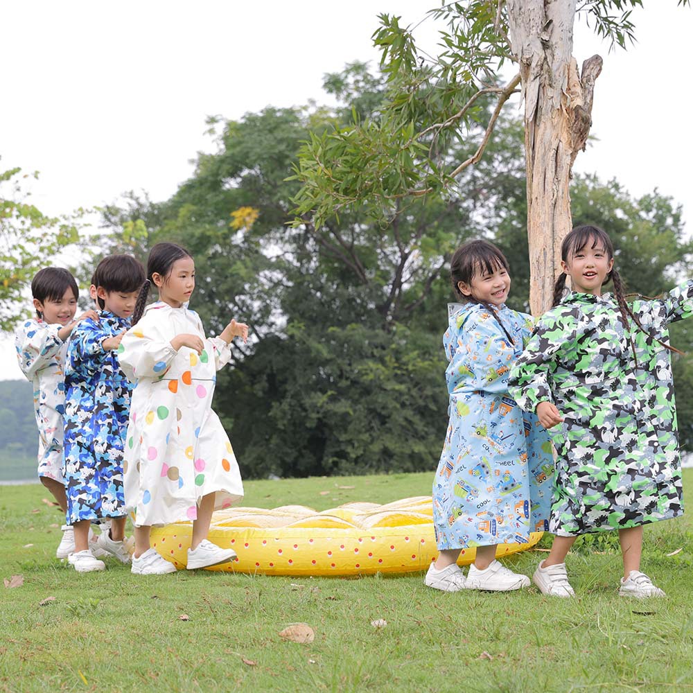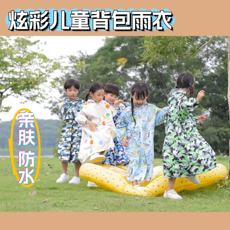 2025儿童雨衣六款彩色卡通印花户外出行上下学反光可标记姓名雨披