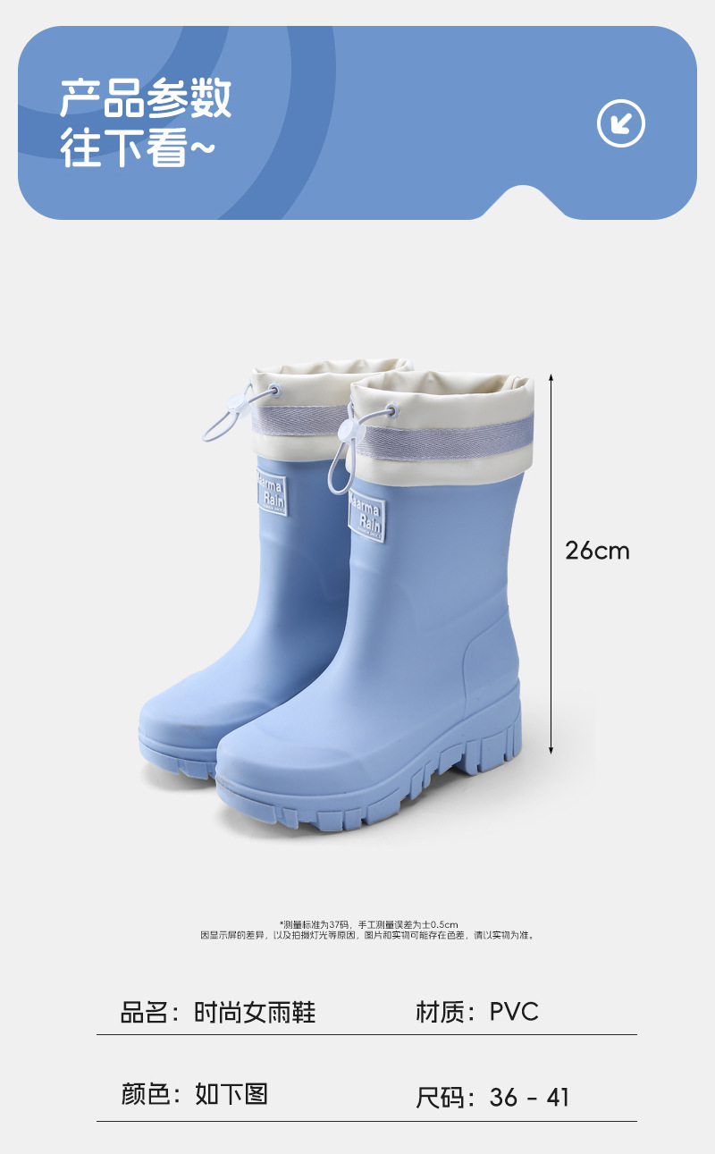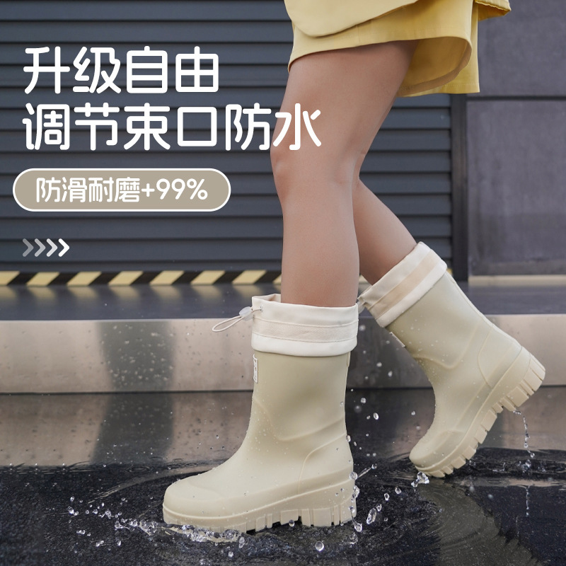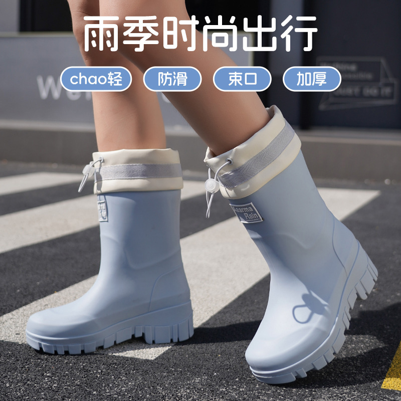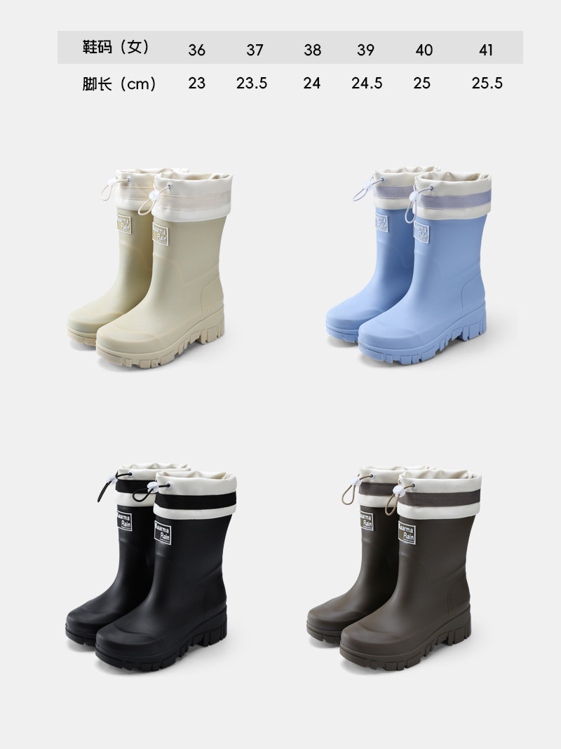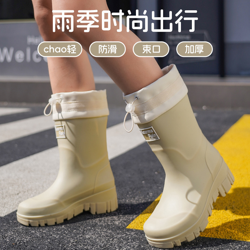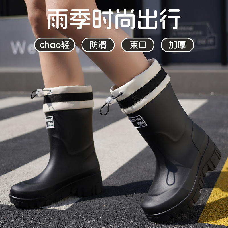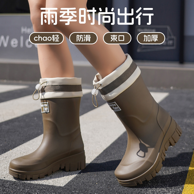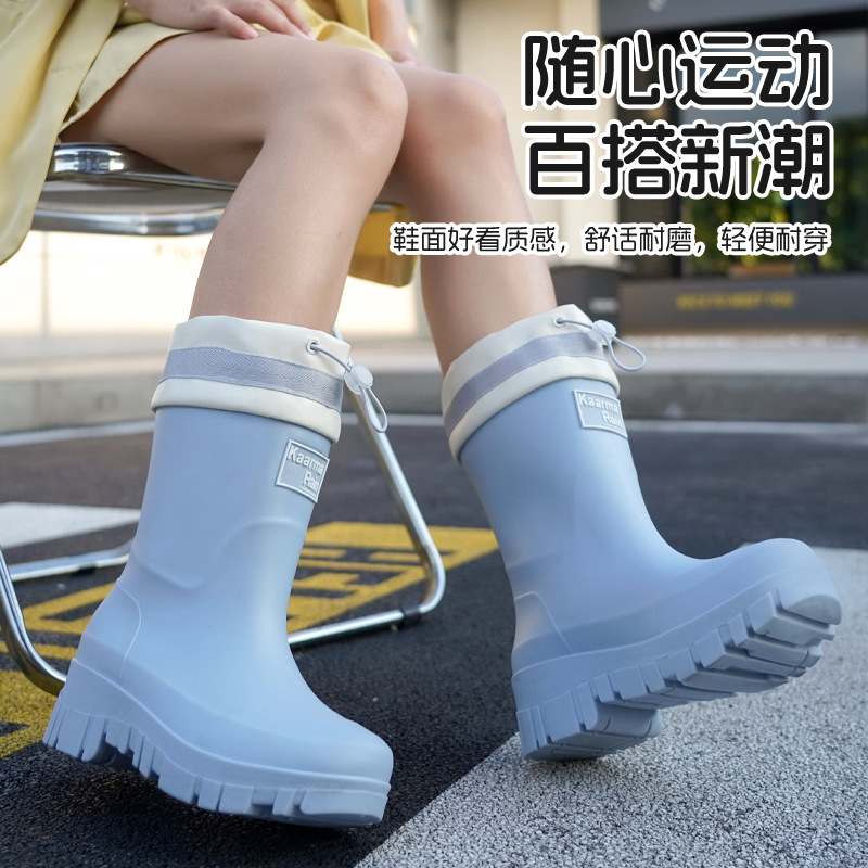 跨境时尚中筒雨靴女厚底舒适露营百搭水靴防滑厨房胶鞋防水洗车鞋