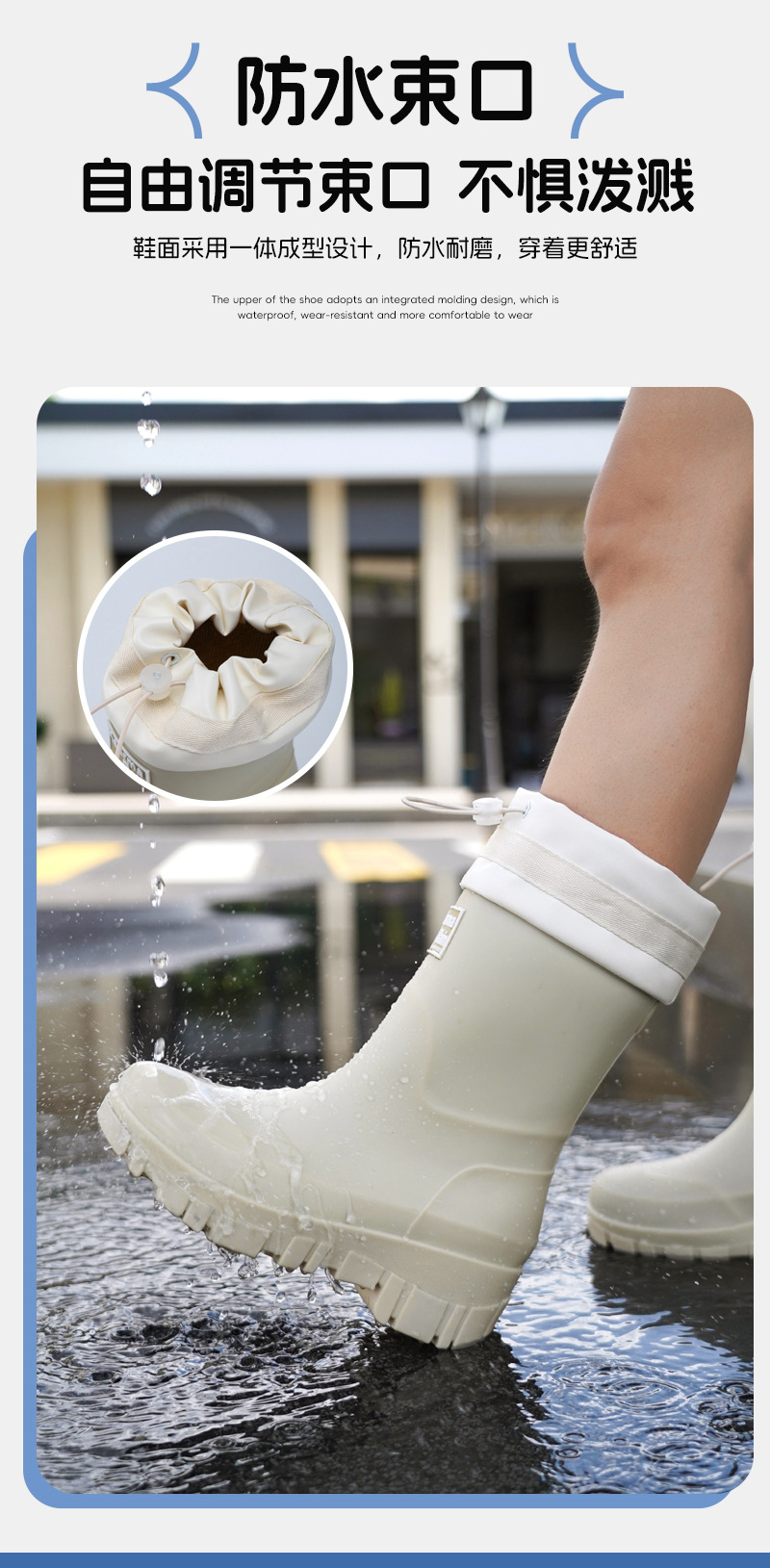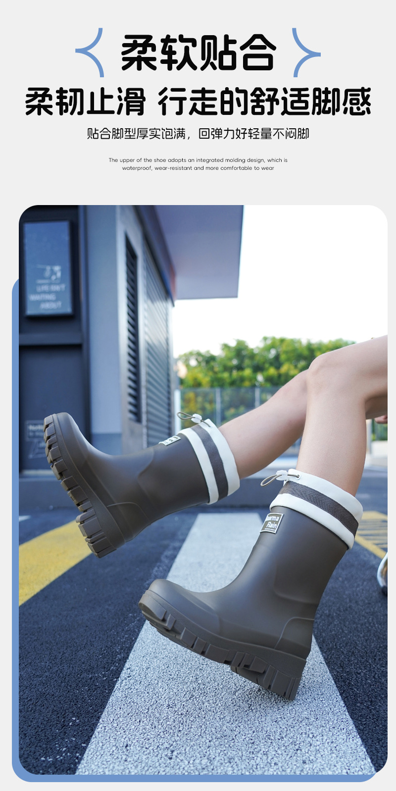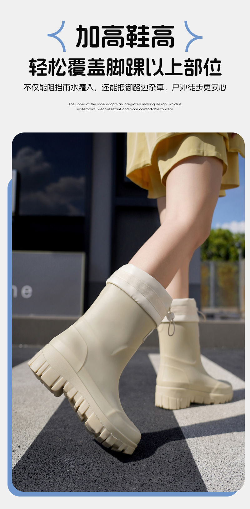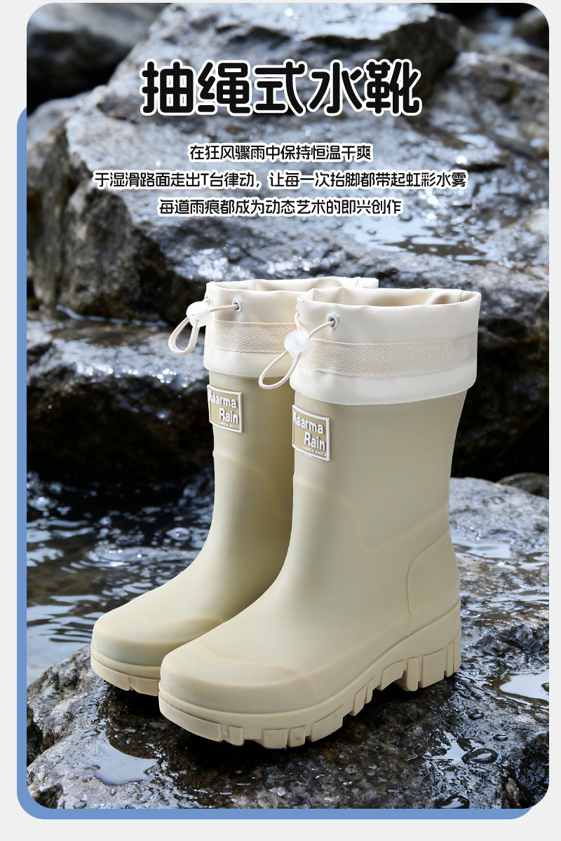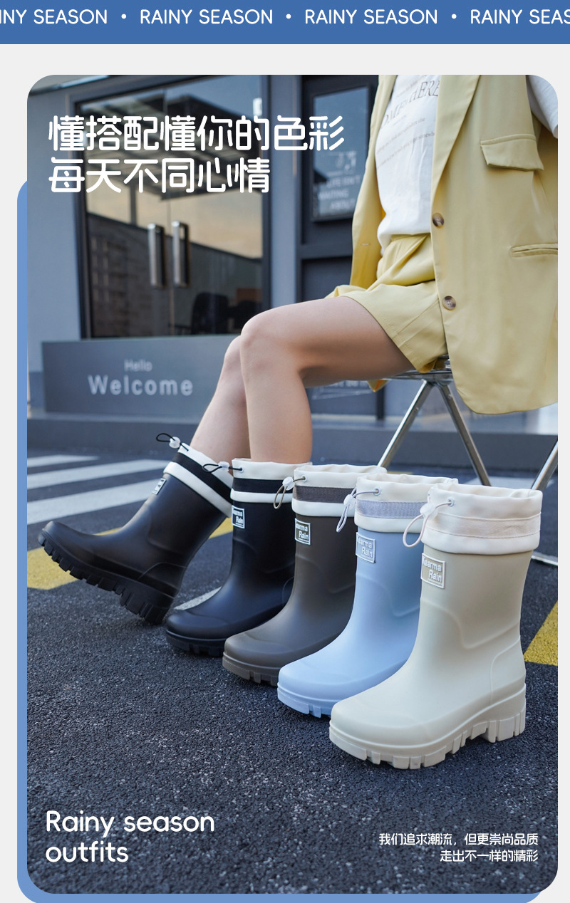 跨境时尚中筒雨靴女厚底舒适露营百搭水靴防滑厨房胶鞋防水洗车鞋