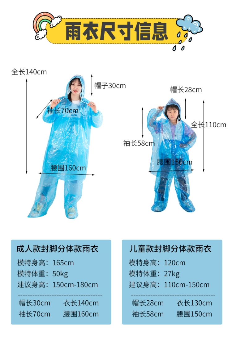 一次性雨衣分体套装漂流激流勇进长款全身一体式成人儿童雨披雨裤