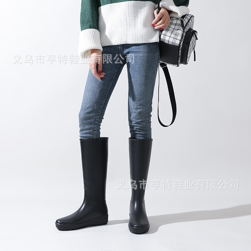 法式厚底时尚高筒女士雨鞋坡跟PVC雨靴柔软修身马靴长筒水鞋