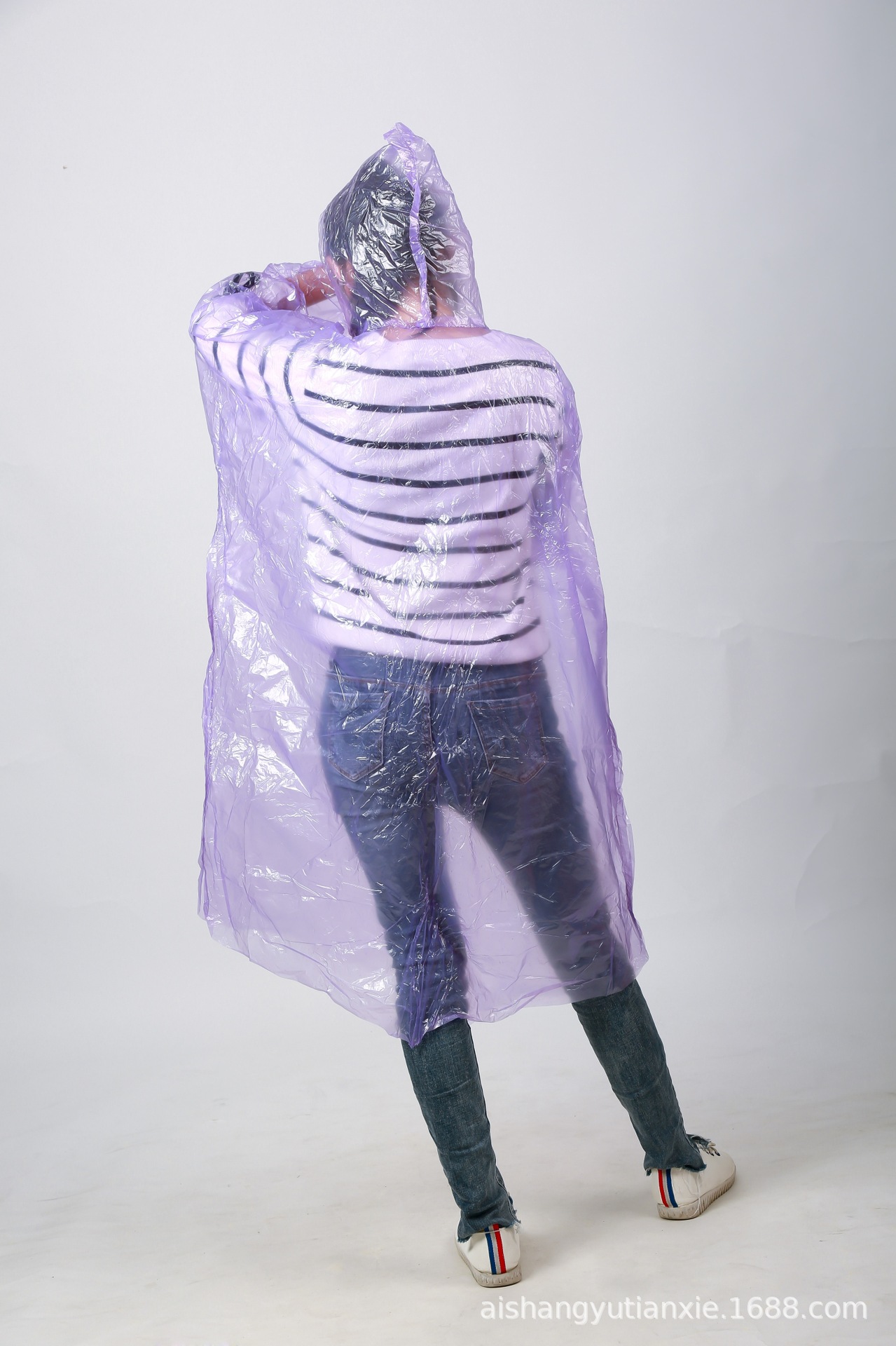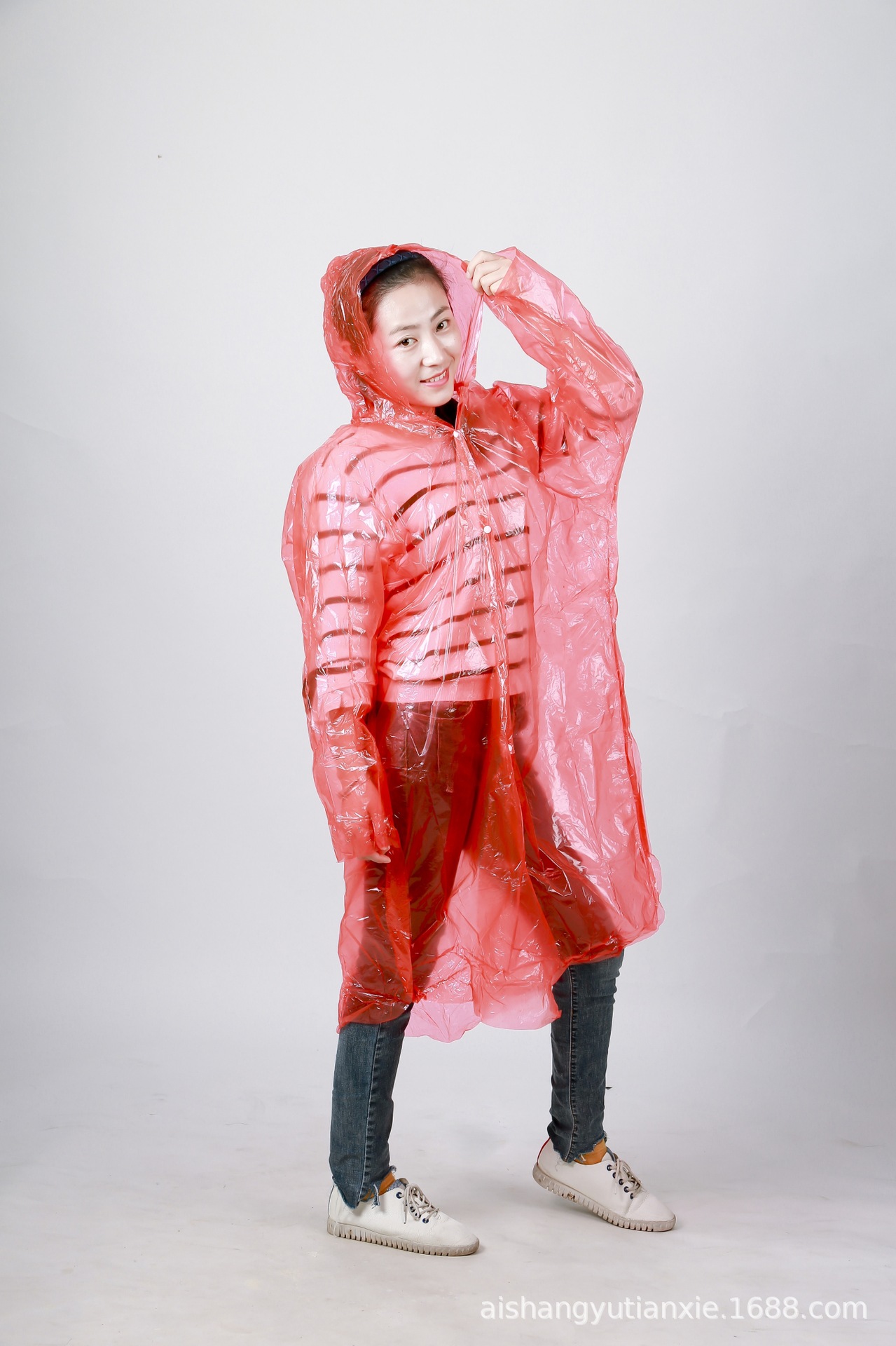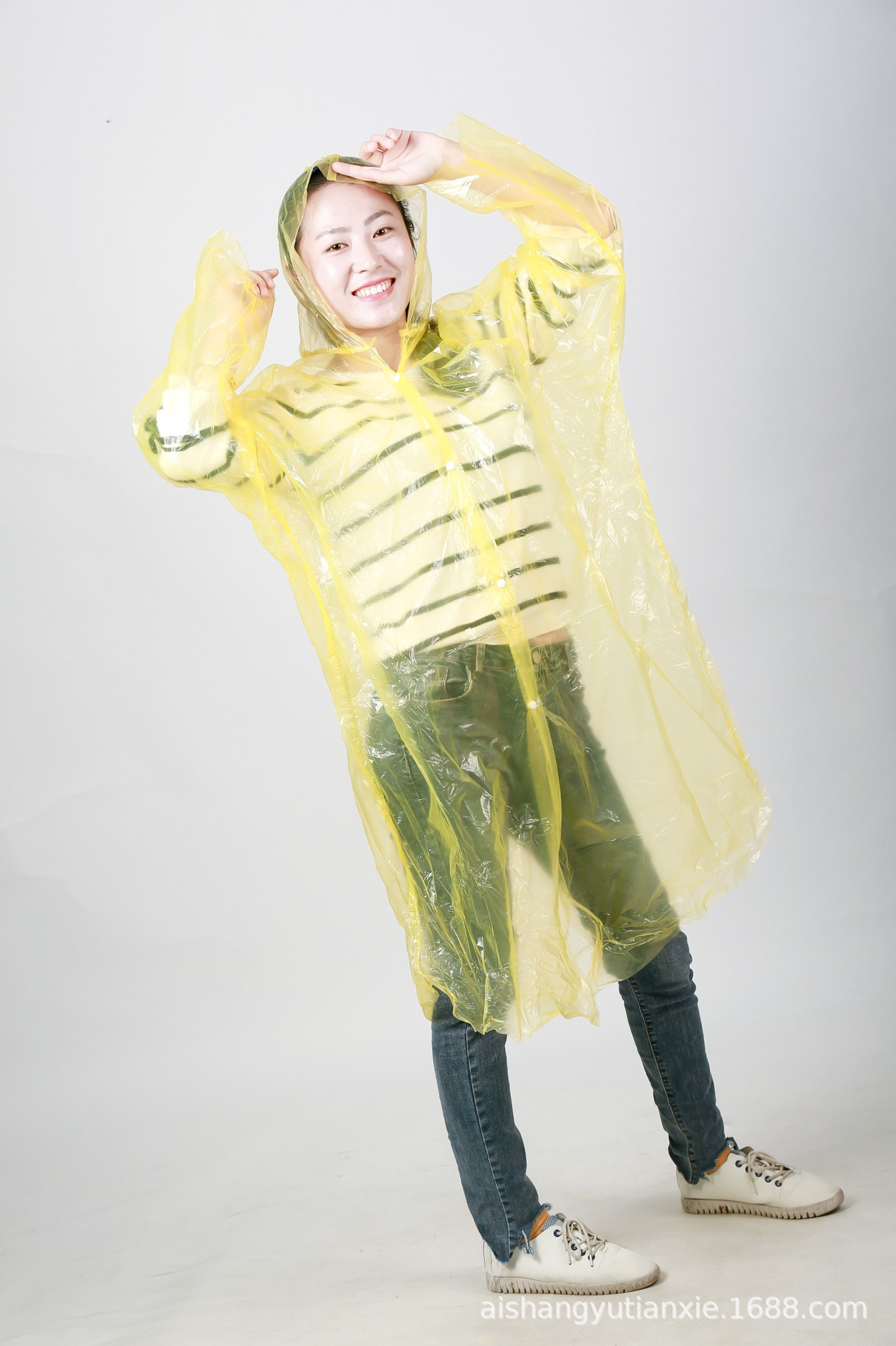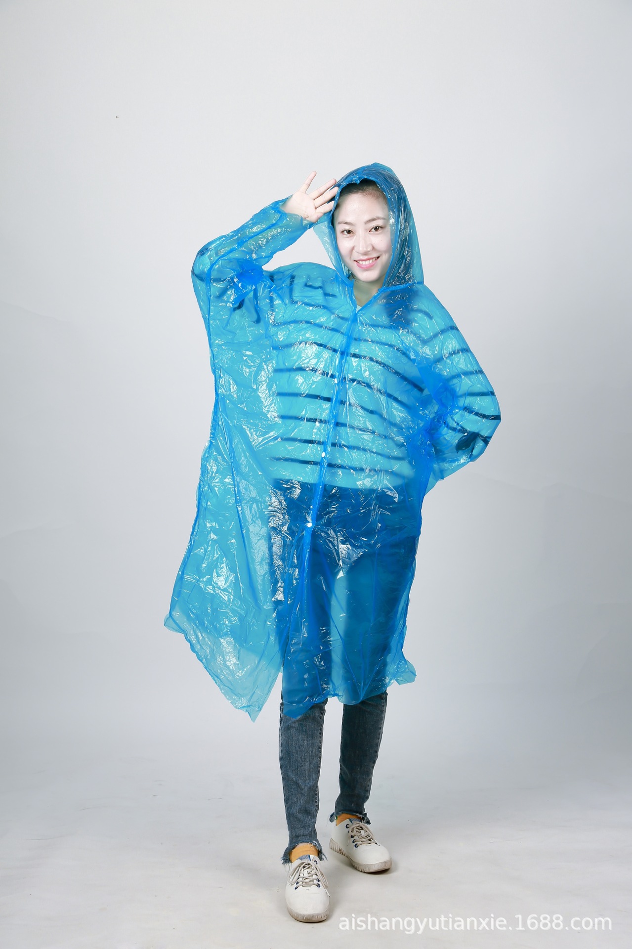 爱上雨天大包装成人加厚四合扣雨衣 男女PE连体开衫一次性雨衣