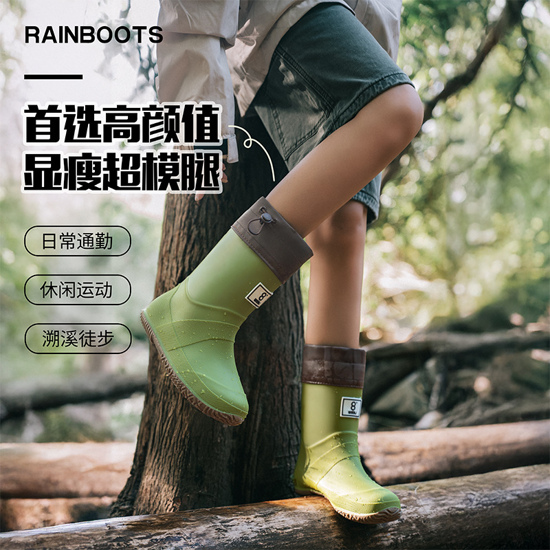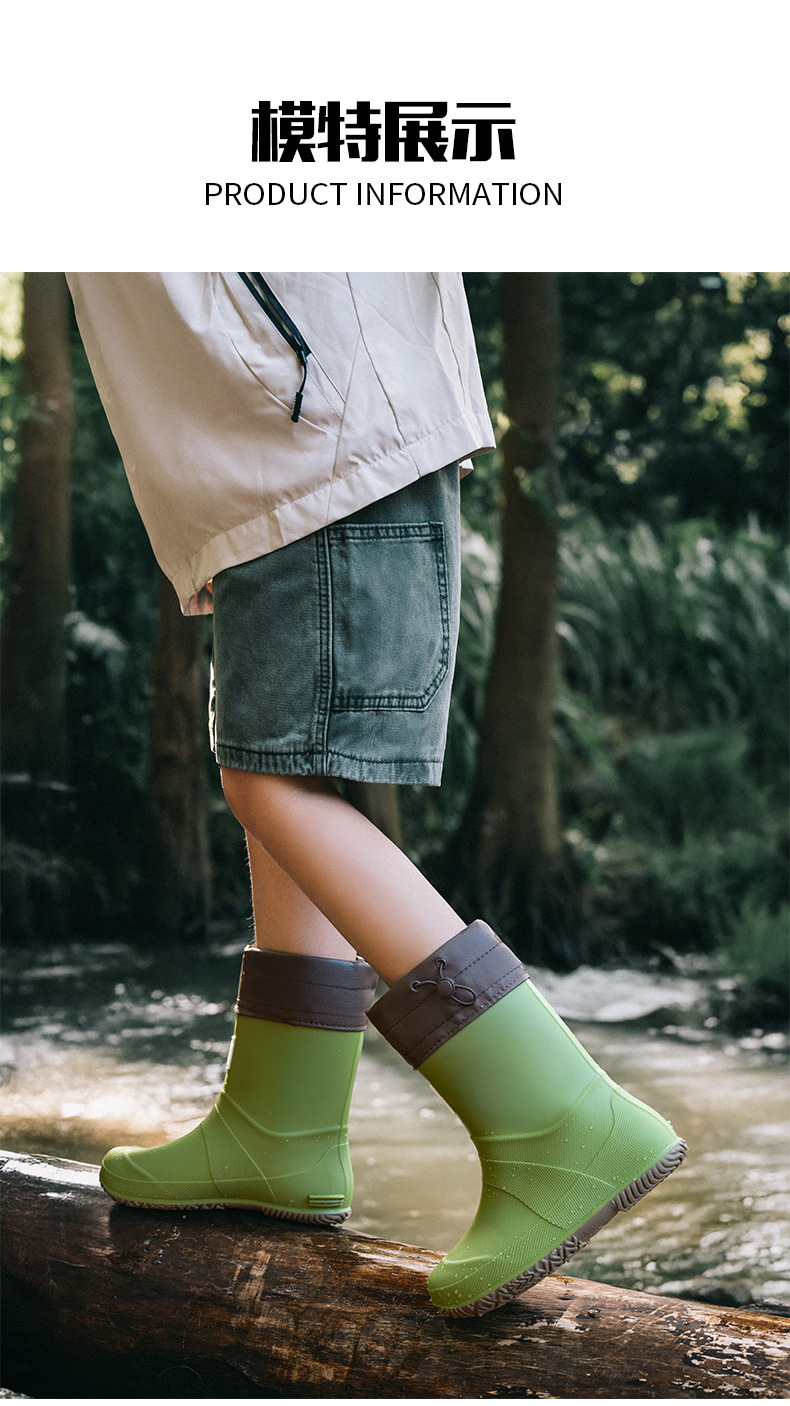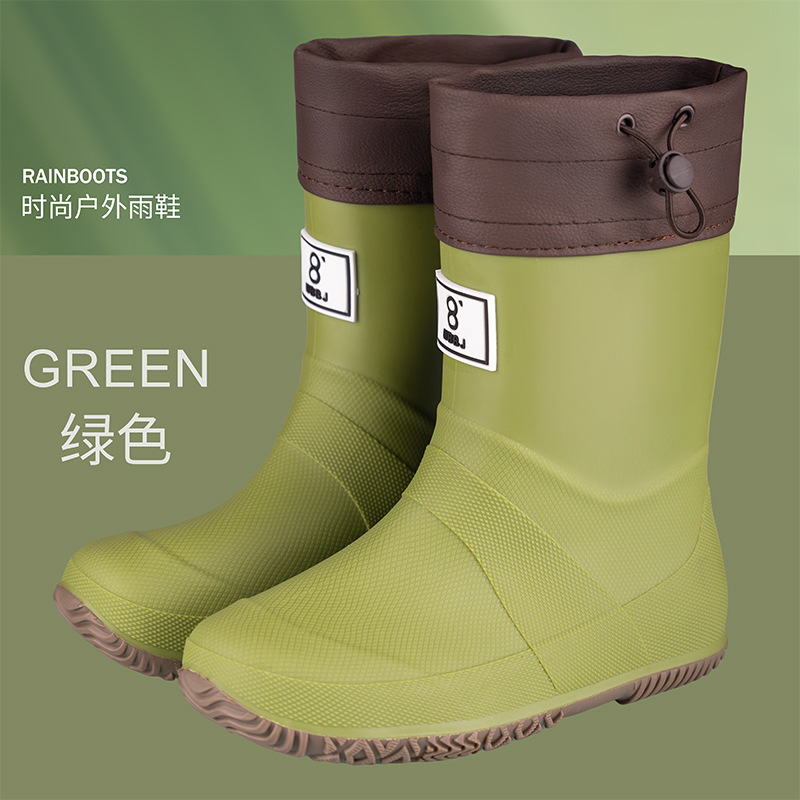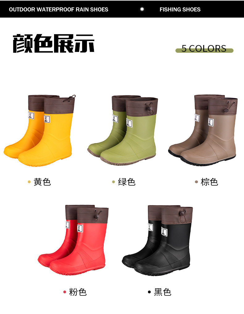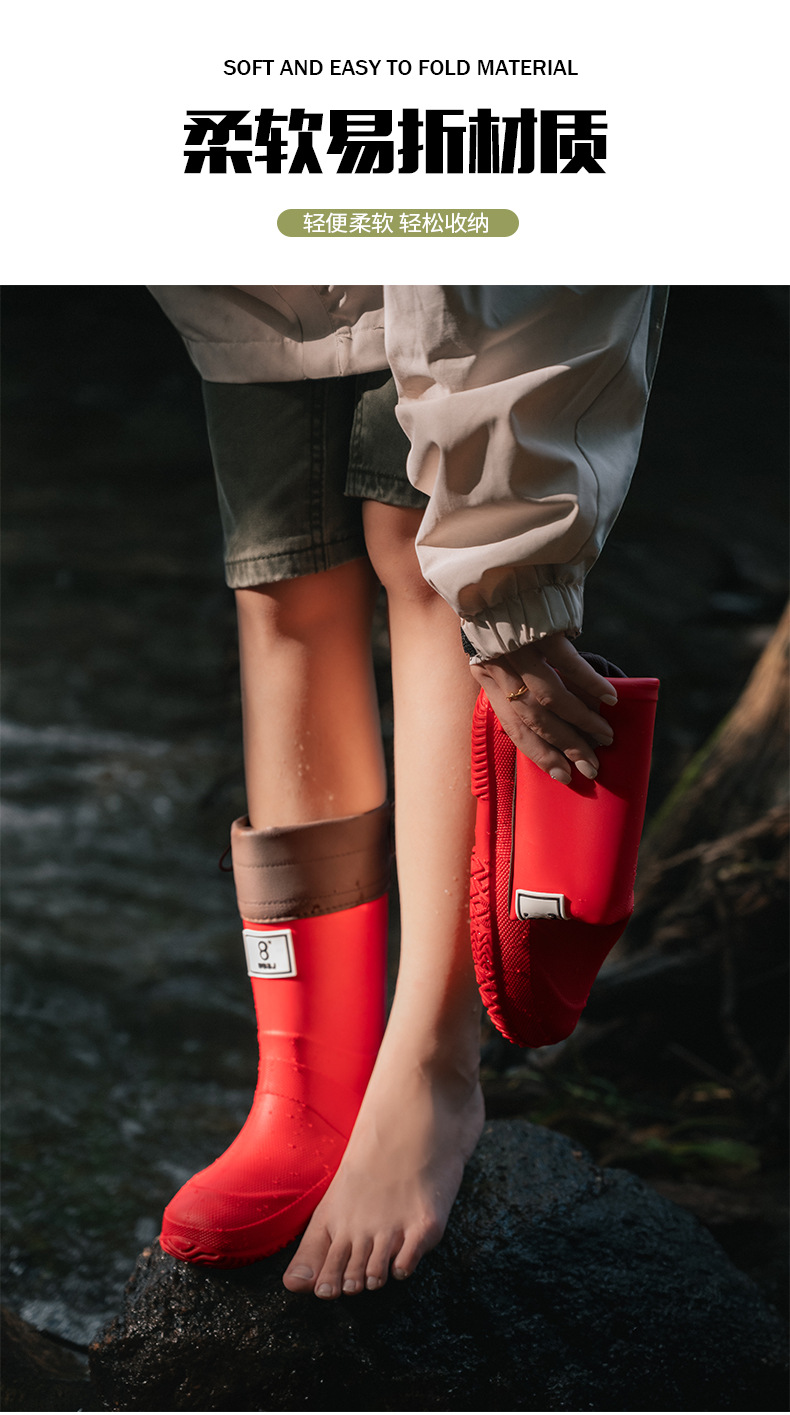跨境时尚雨鞋女可折叠户外涉水鞋软底舒适防滑胶鞋中筒防水洗车鞋