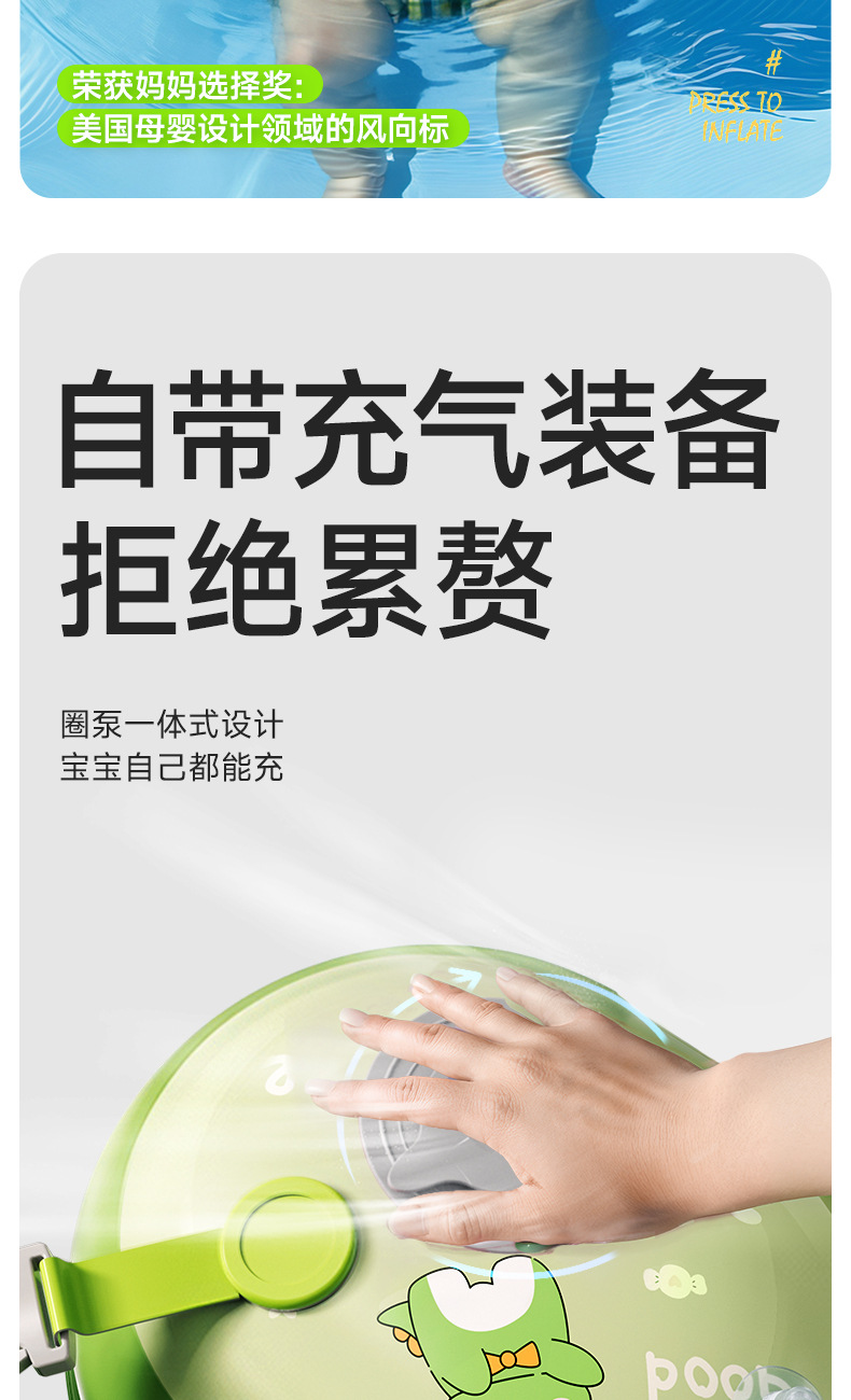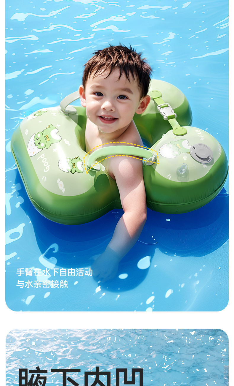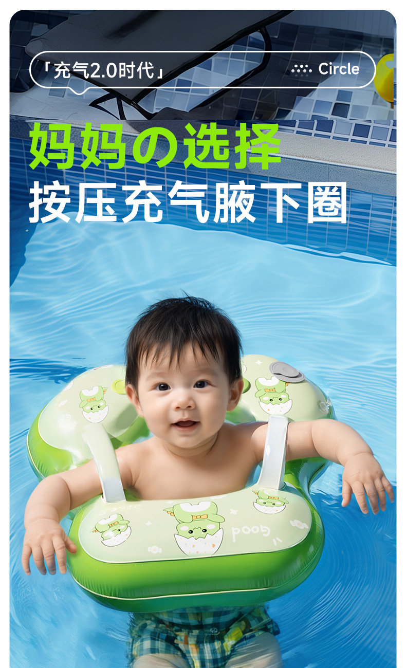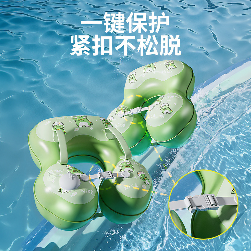 青色儿童游泳圈腋下圈卡通宝宝按压充气泳圈浮力游泳装备充气式