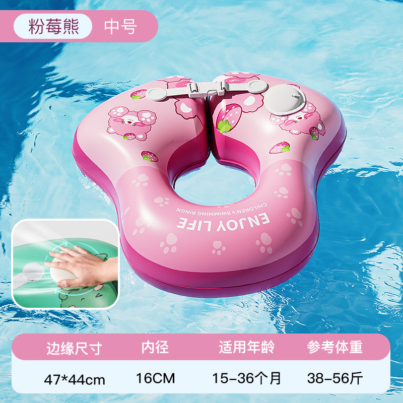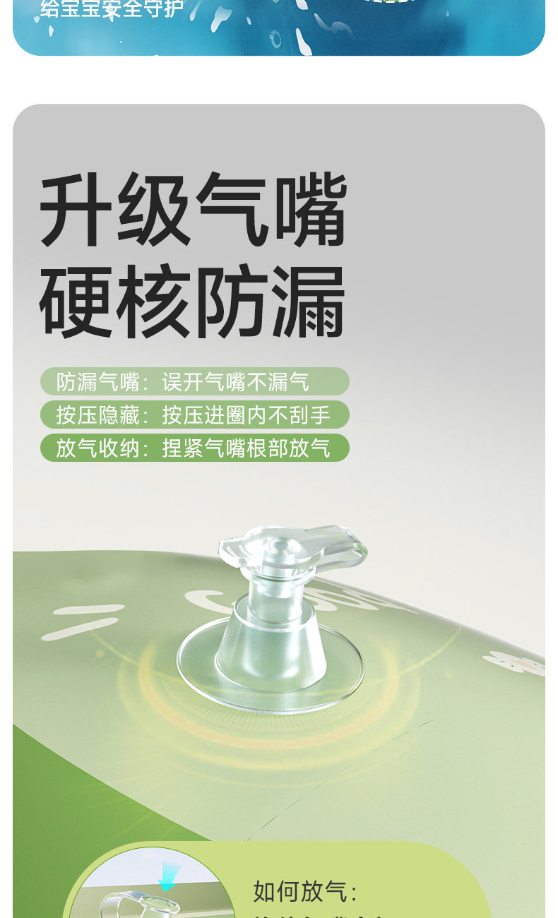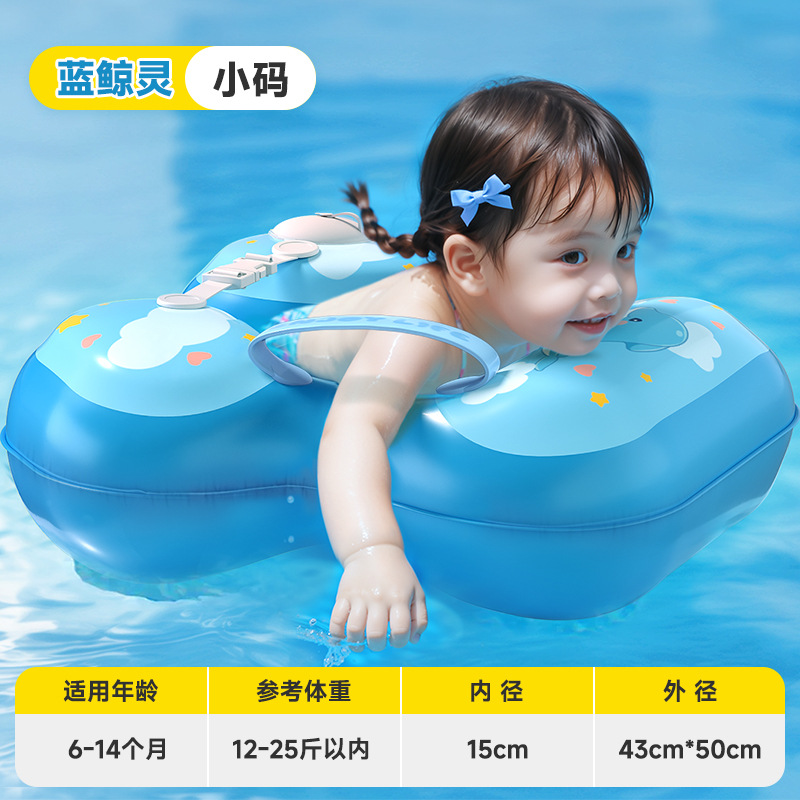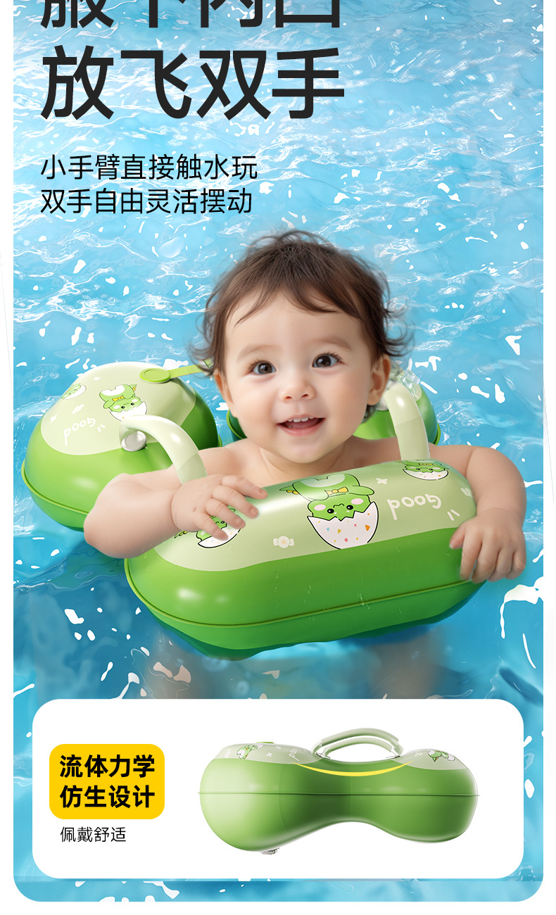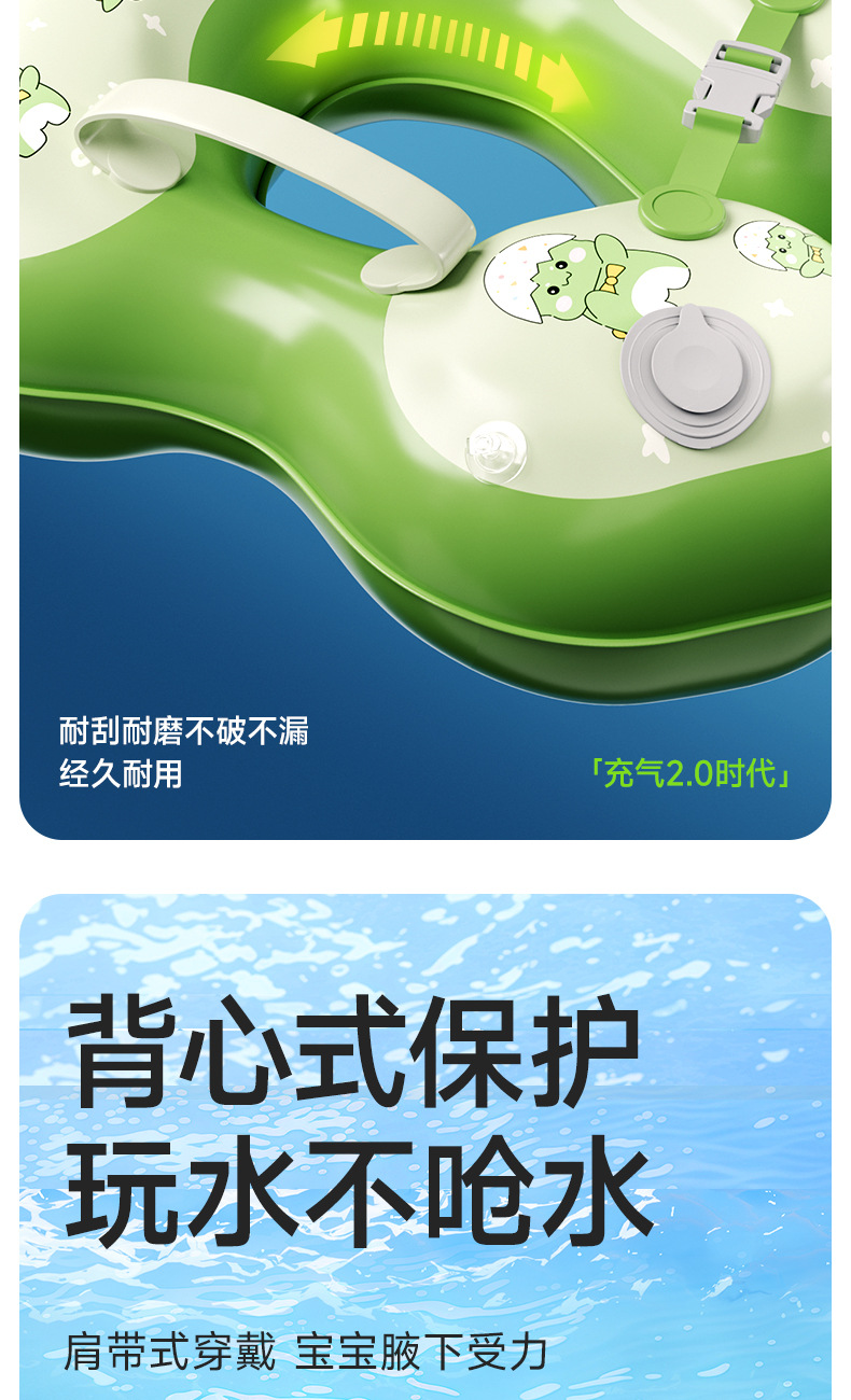 青色儿童游泳圈腋下圈卡通宝宝按压充气泳圈浮力游泳装备充气式