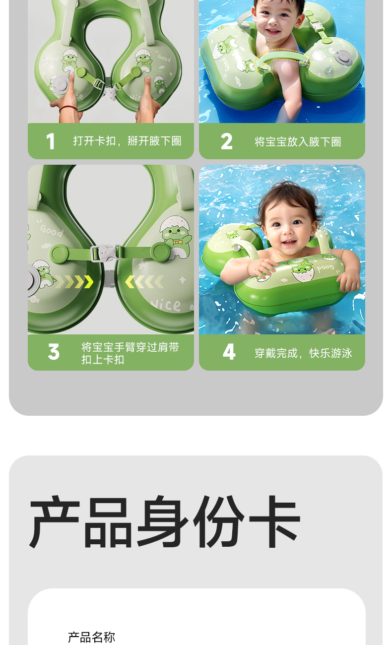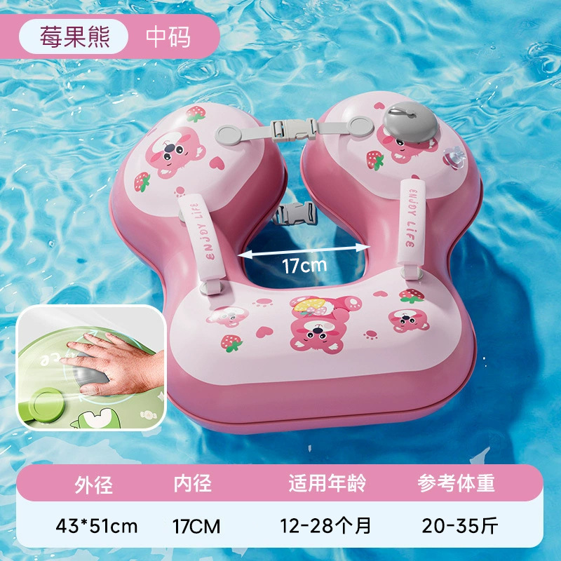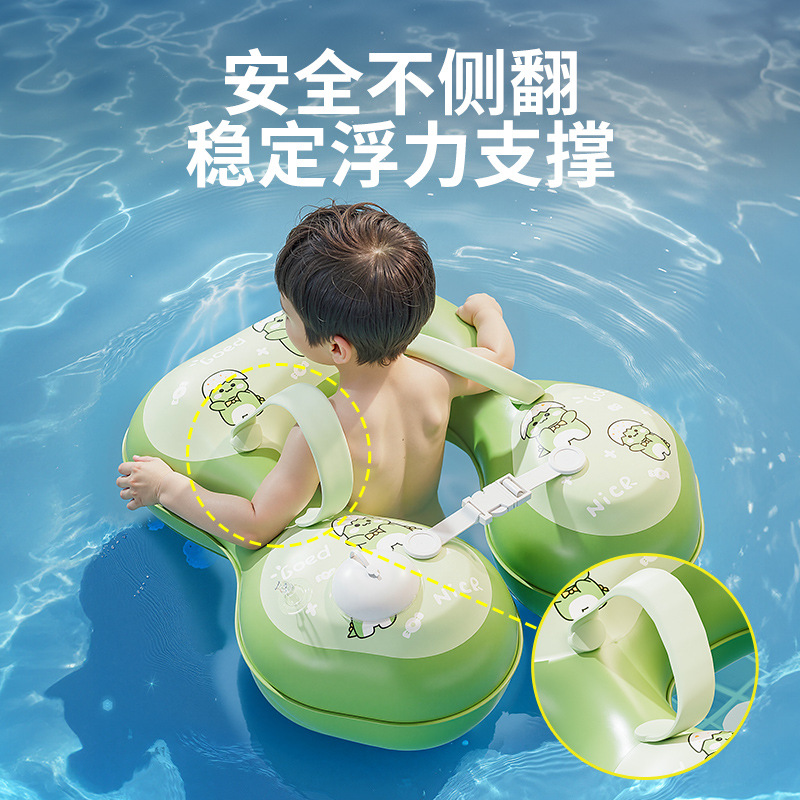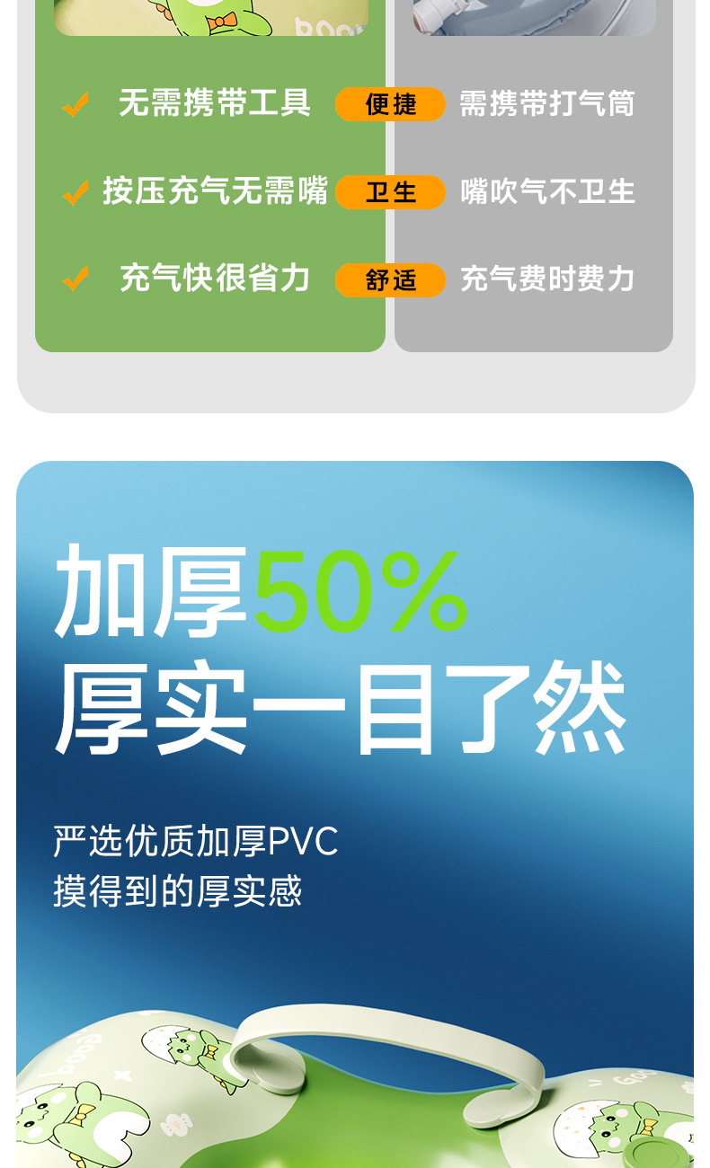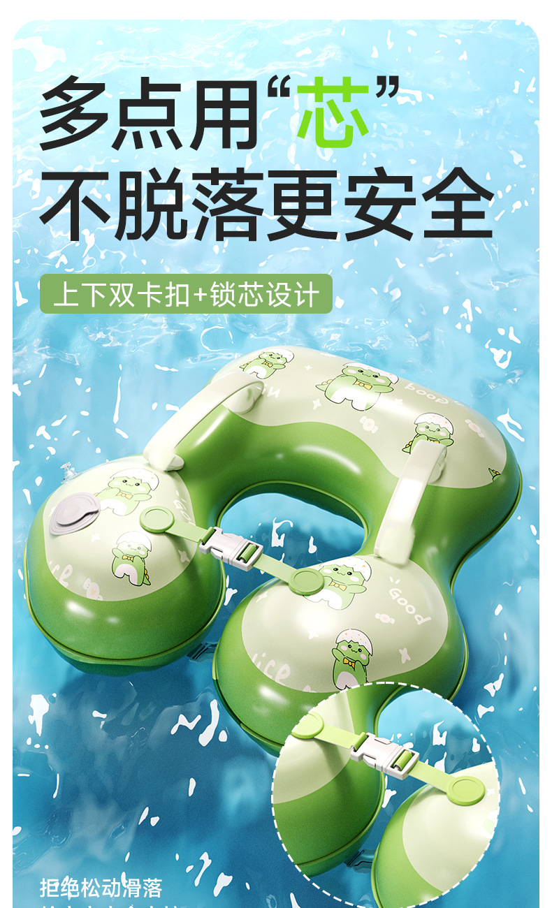 青色儿童游泳圈腋下圈卡通宝宝按压充气泳圈浮力游泳装备充气式