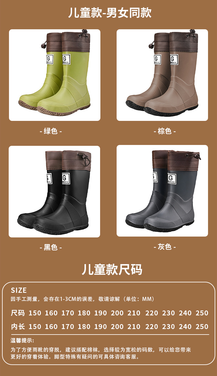 2025亲子户外雨鞋情侣登山防滑防水中高筒男女水鞋露营时尚雨靴