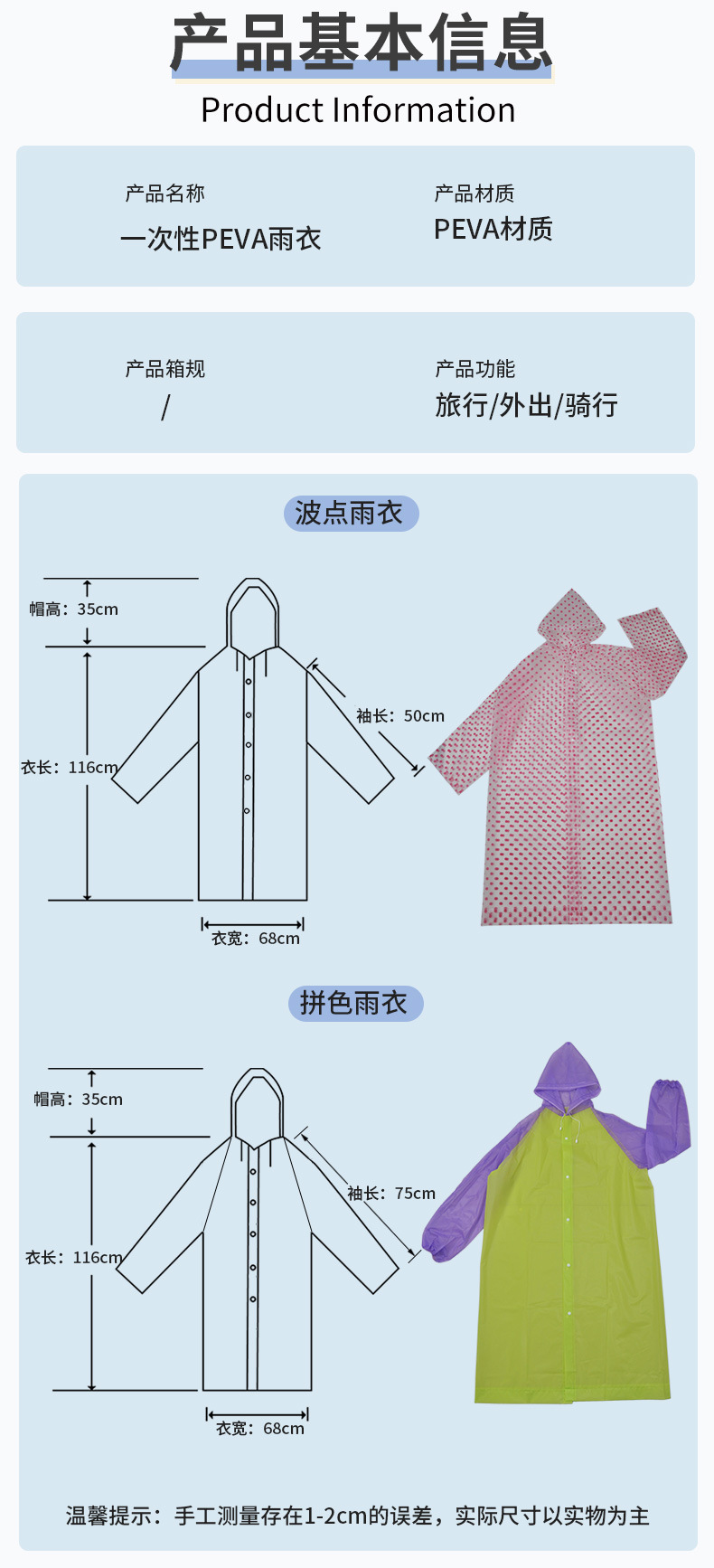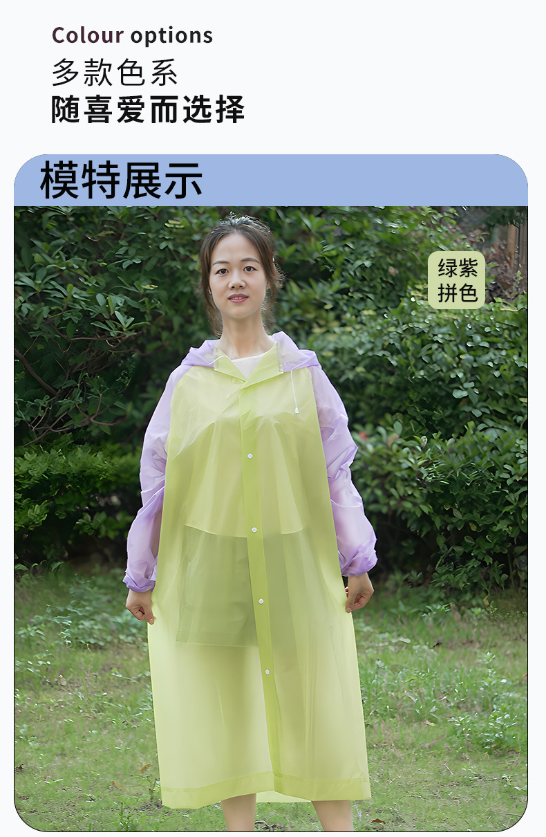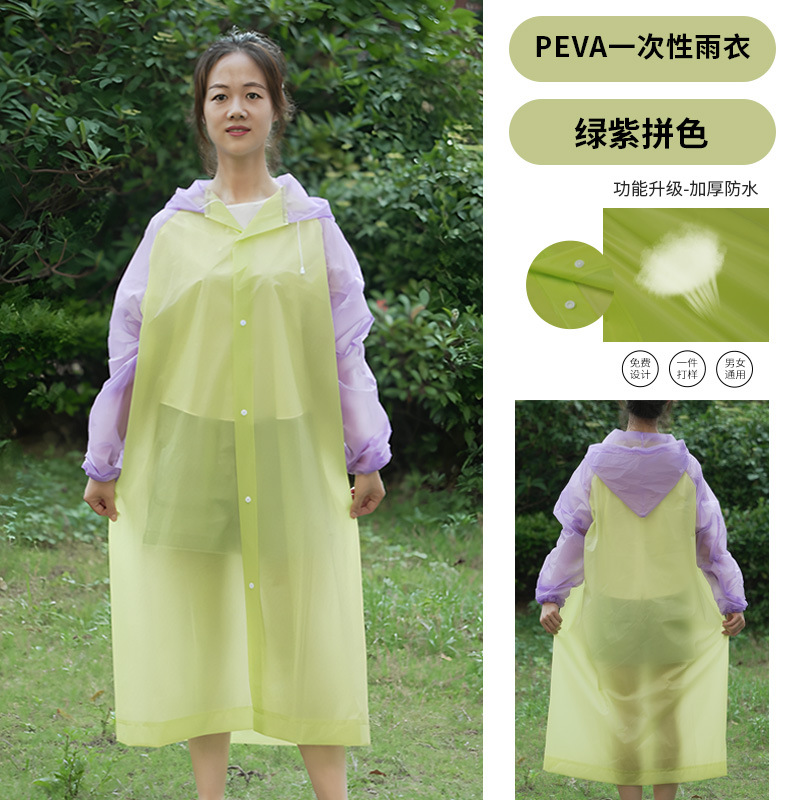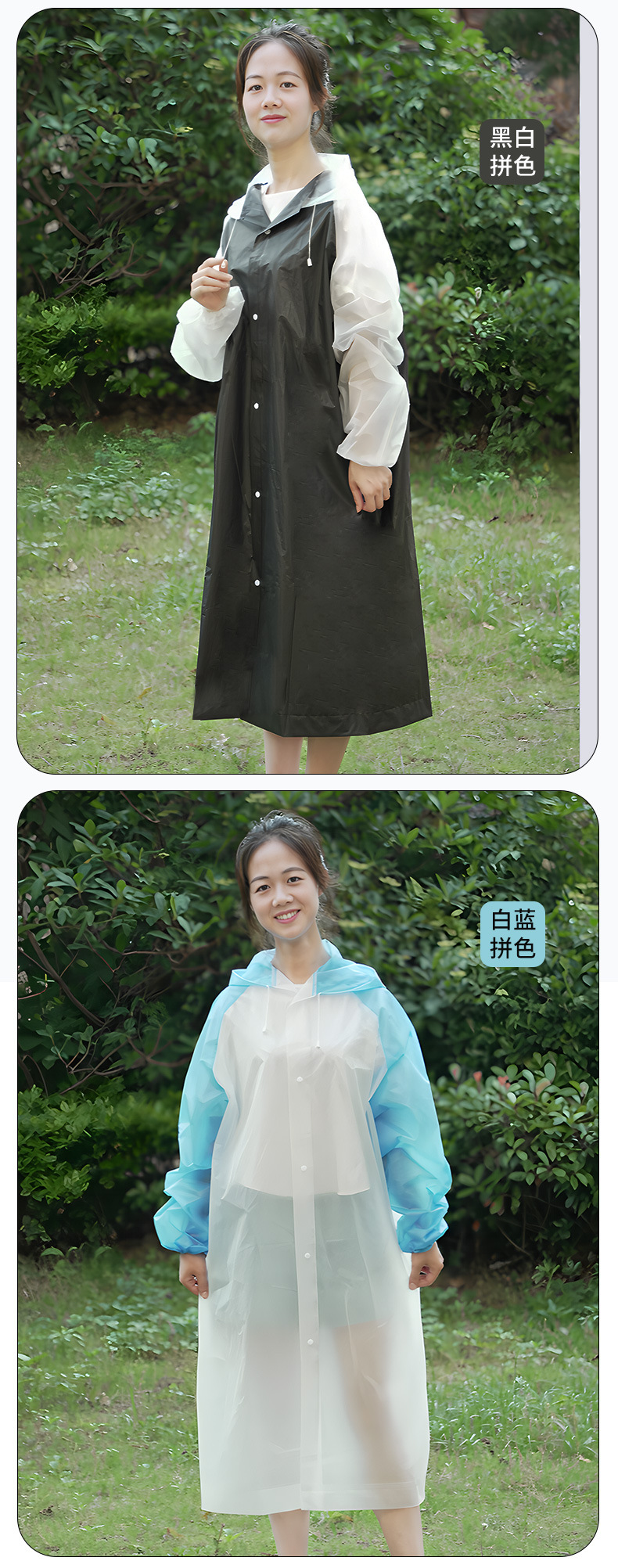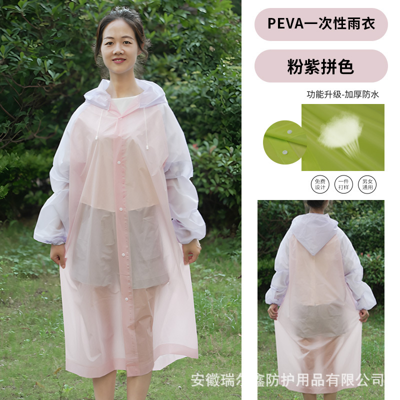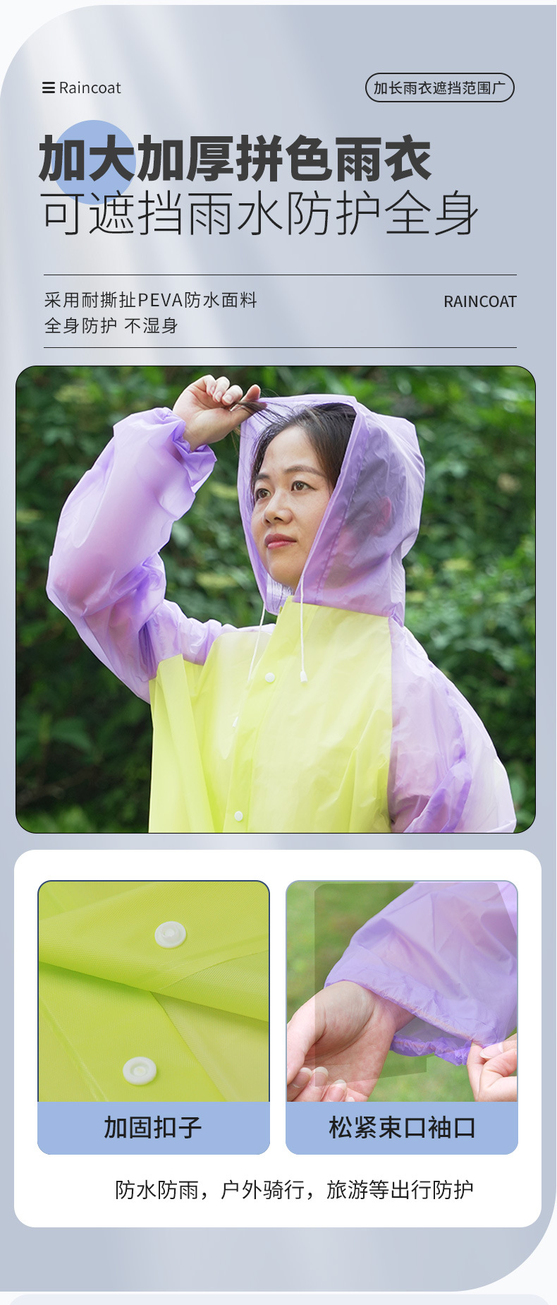 成人非一次性peva雨衣撞色拼接户外旅行防暴雨便携式加厚雨披批发