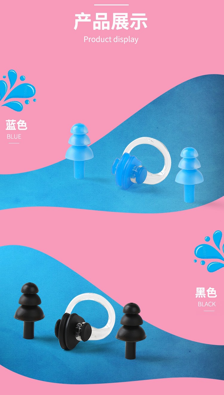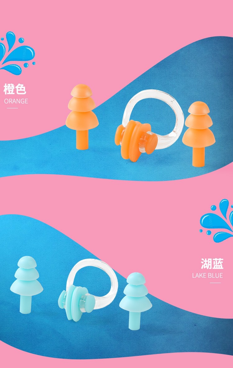厂家批发耳塞鼻夹硅胶鼻夹耳塞套装游泳装备儿童成人专业防水装备