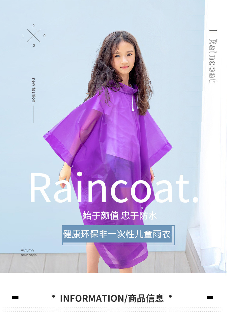 非一次性EVA雨衣儿童雨披旅游时尚雨衣骑行自行车雨披印刷LOGO