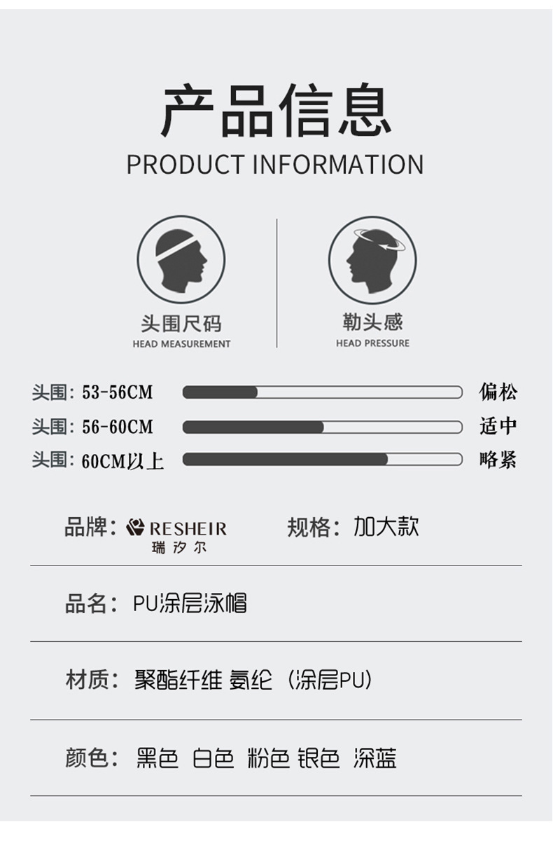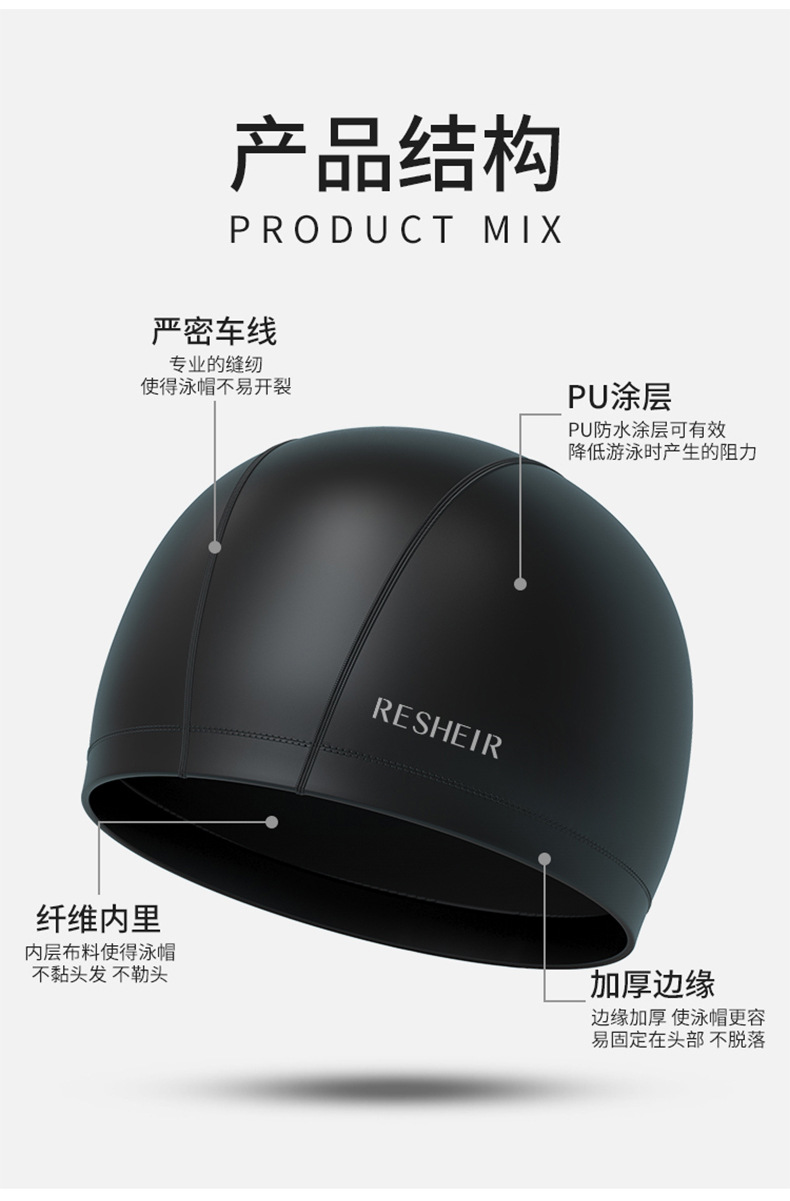 瑞汐尔泳帽男防水PU专业加大号不勒头成人女长发专用泳镜游泳装备