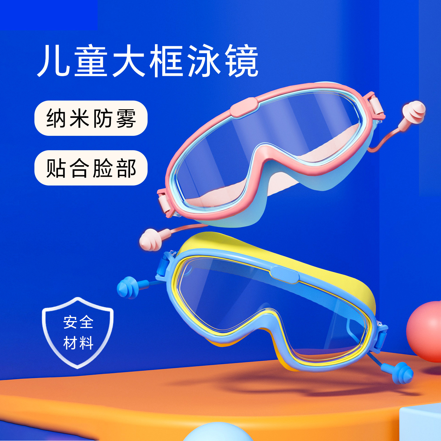 大框游泳儿童眼镜防水防雾高清护目泳镜专业潜水宝宝洗头神器