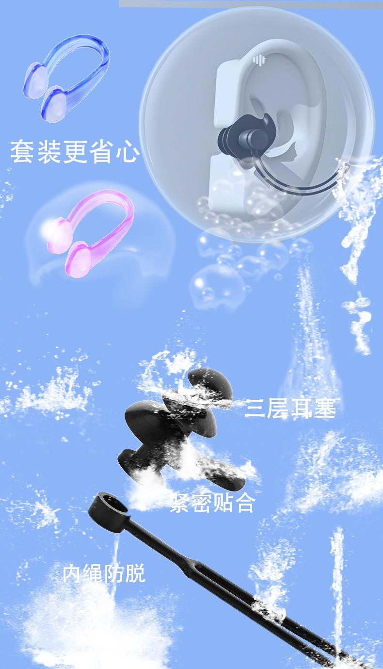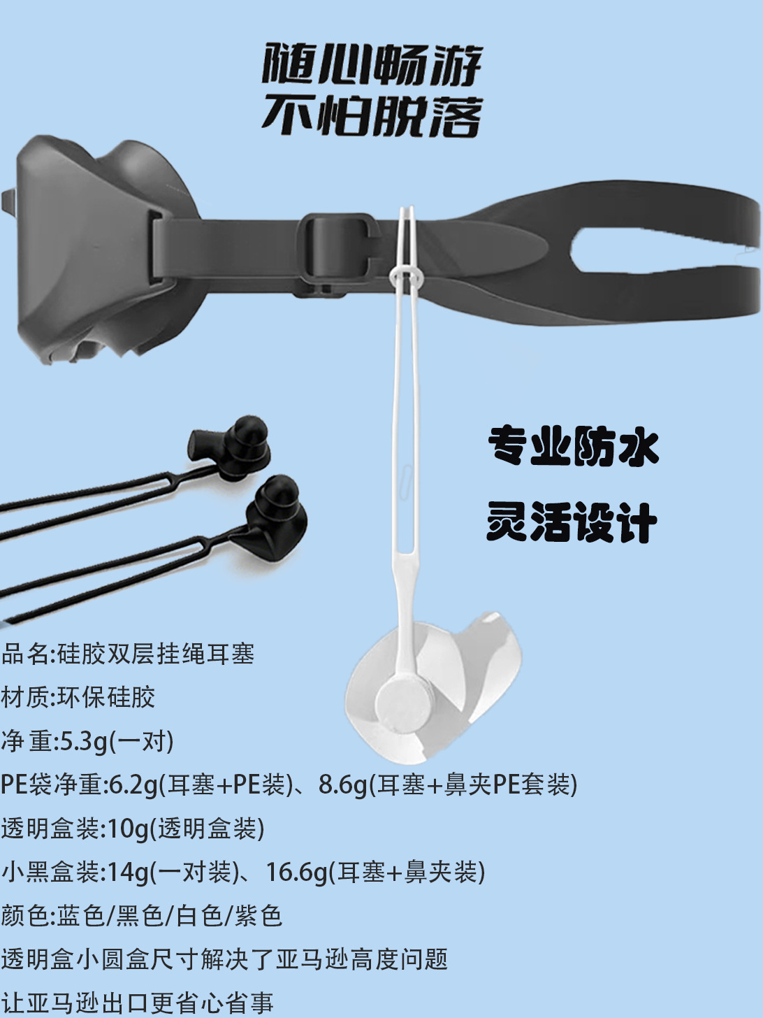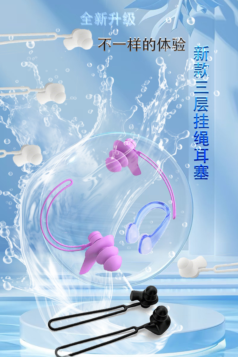 硅胶游泳挂绳耳塞专业防水鼻夹套装采耳潜水男女成人儿童通用厂家