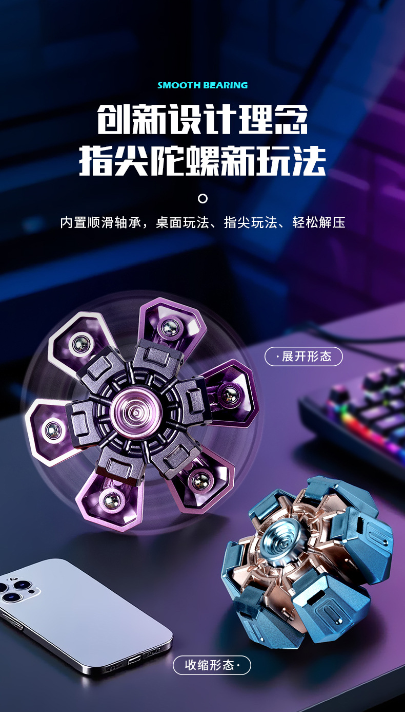 网红爆款机械爆甲指尖陀螺玩具解压变形手指陀螺儿童礼物地摊批发