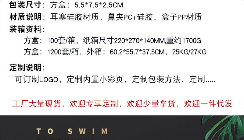 硅胶鼻夹耳塞套装游泳保护耳朵鼻子防止进水成人儿童通用LOGO印刷