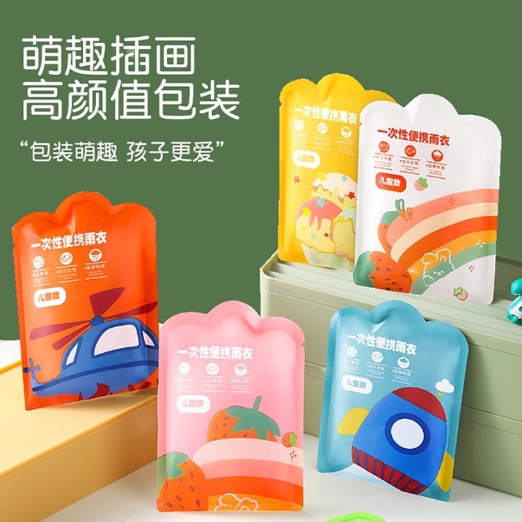disposable raincoat portable vacuum card packaging children‘s outdoor travel poncho fashion disposable children‘s raincoat