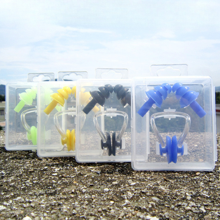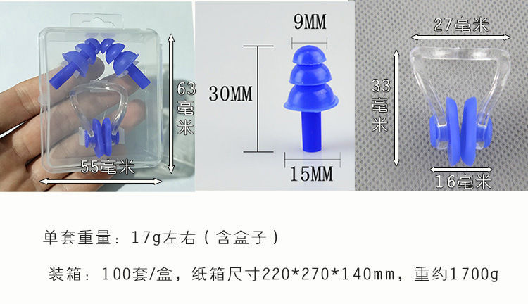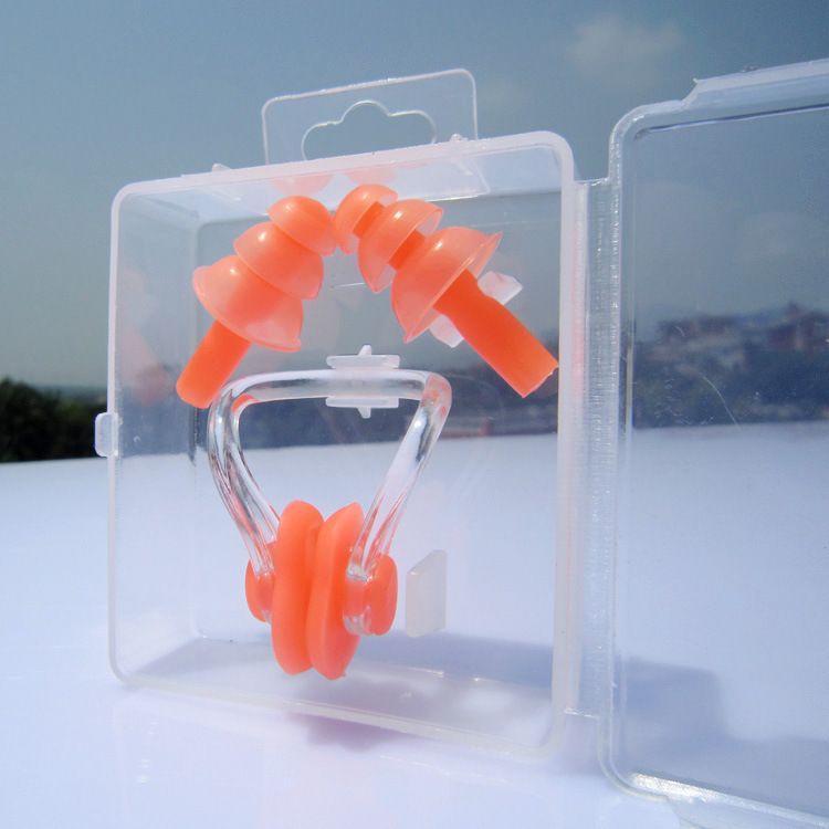 批发游泳耳塞鼻夹硅胶游泳馆专业防水防滑防呛水鼻塞成人儿童盒装