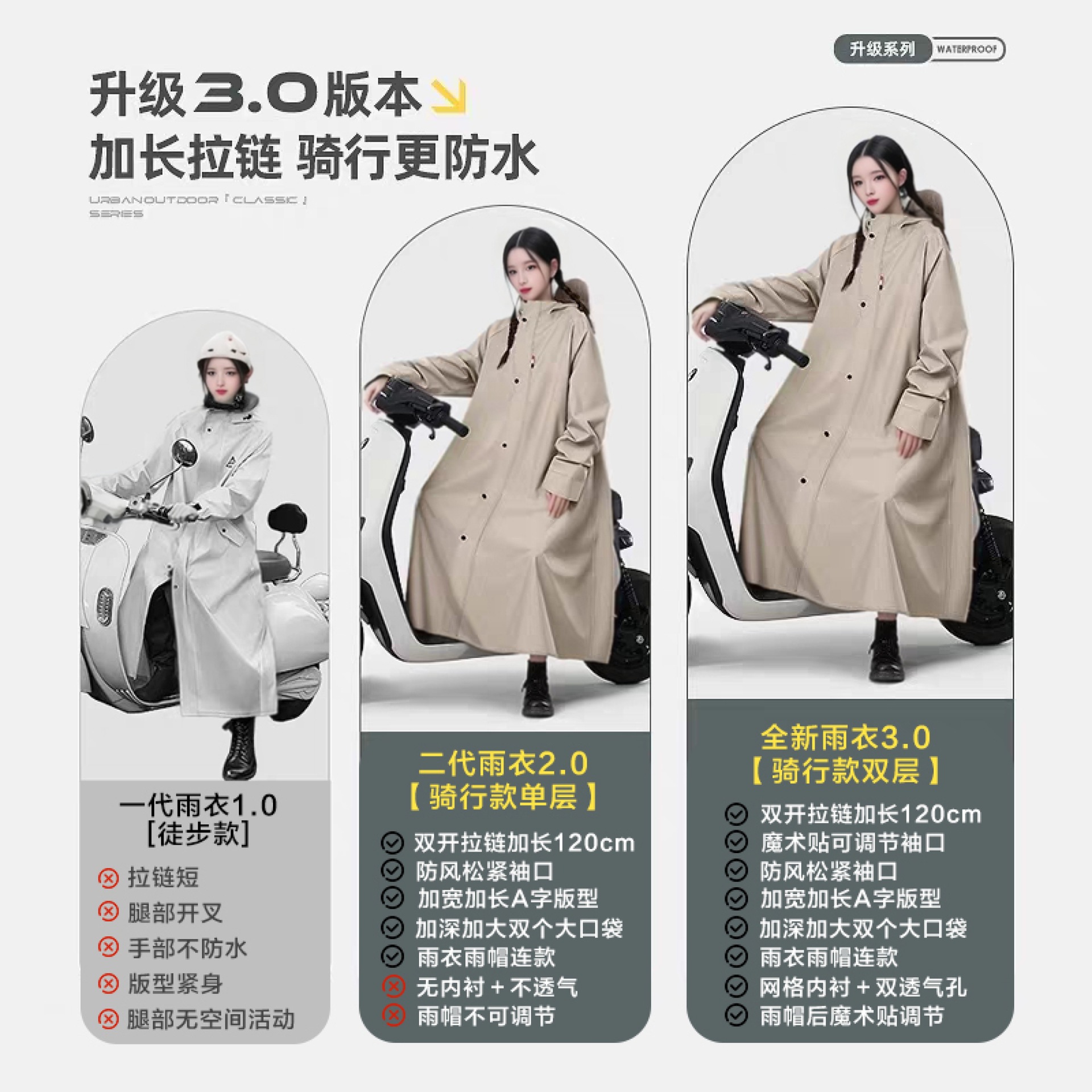 电动车长款雨衣全身防暴雨连体雨衣成人骑行风衣式反光雨衣男女款