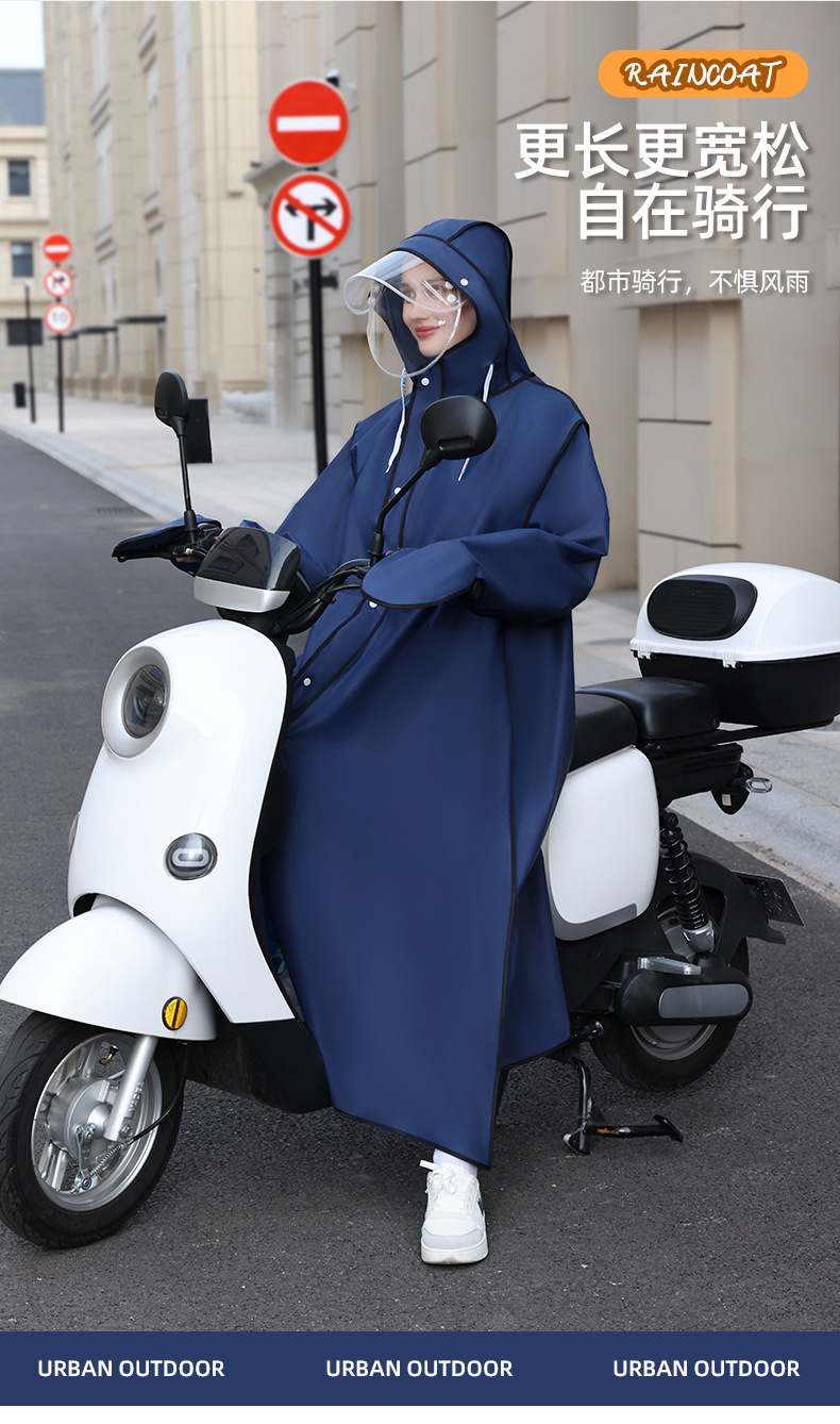 n raincoat electric car battery car long full body rainproof men‘s and women‘s double brim backpack riding bicycle poncho