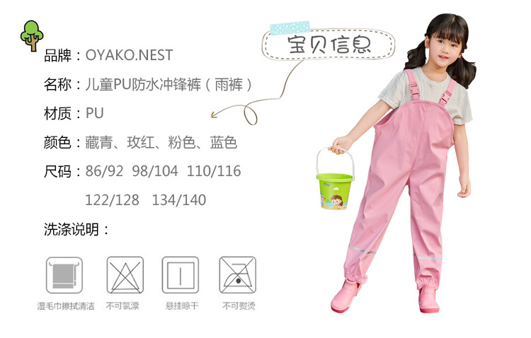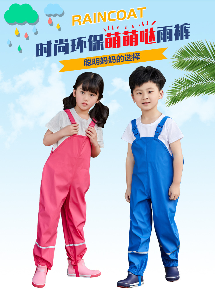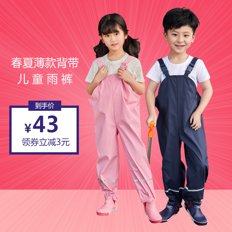儿童雨裤防水裤男童女童幼儿园宝宝小学生连体春夏全身背带雨裤
