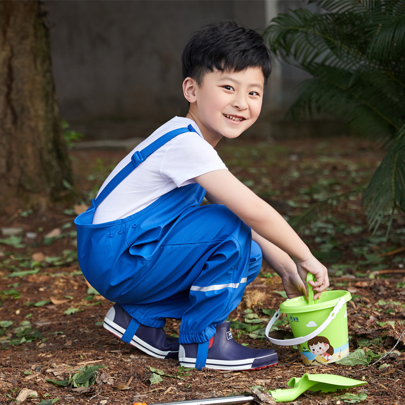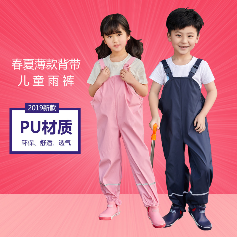 儿童PU背带雨裤春季儿童雨具幼儿园中小童连体防水透气户外冲锋裤