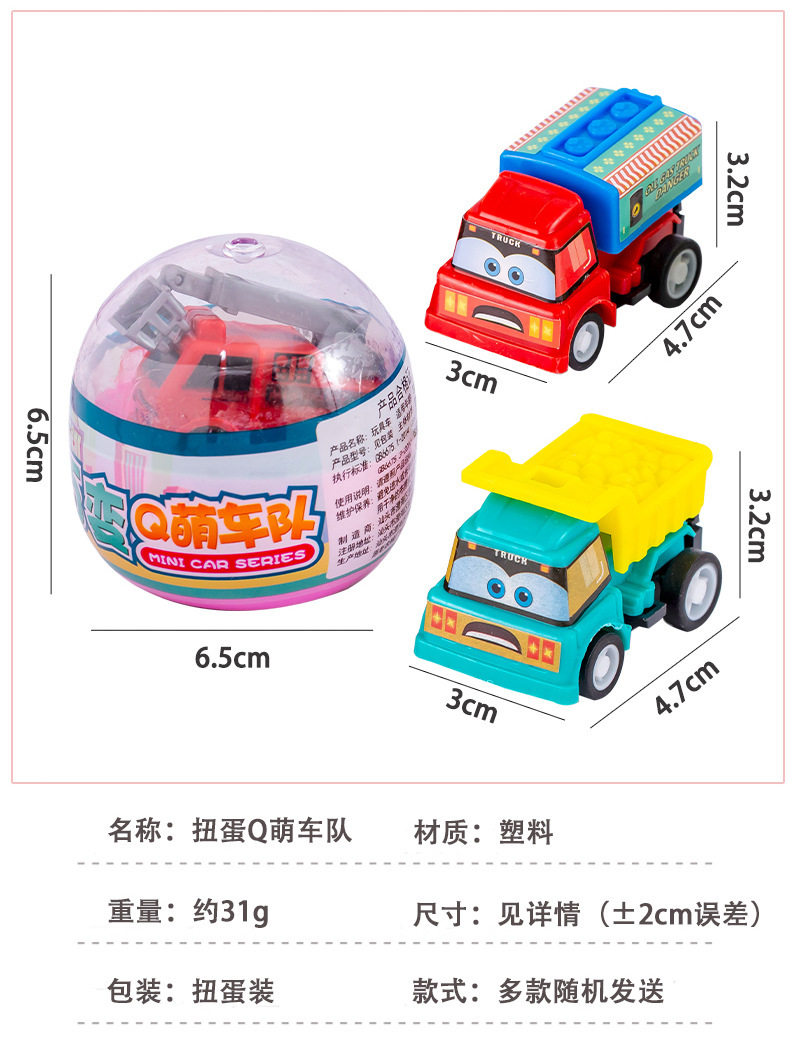 扭蛋回力车卡通回力工程车小孩幼儿园玩具扭蛋 地摊玩具批发